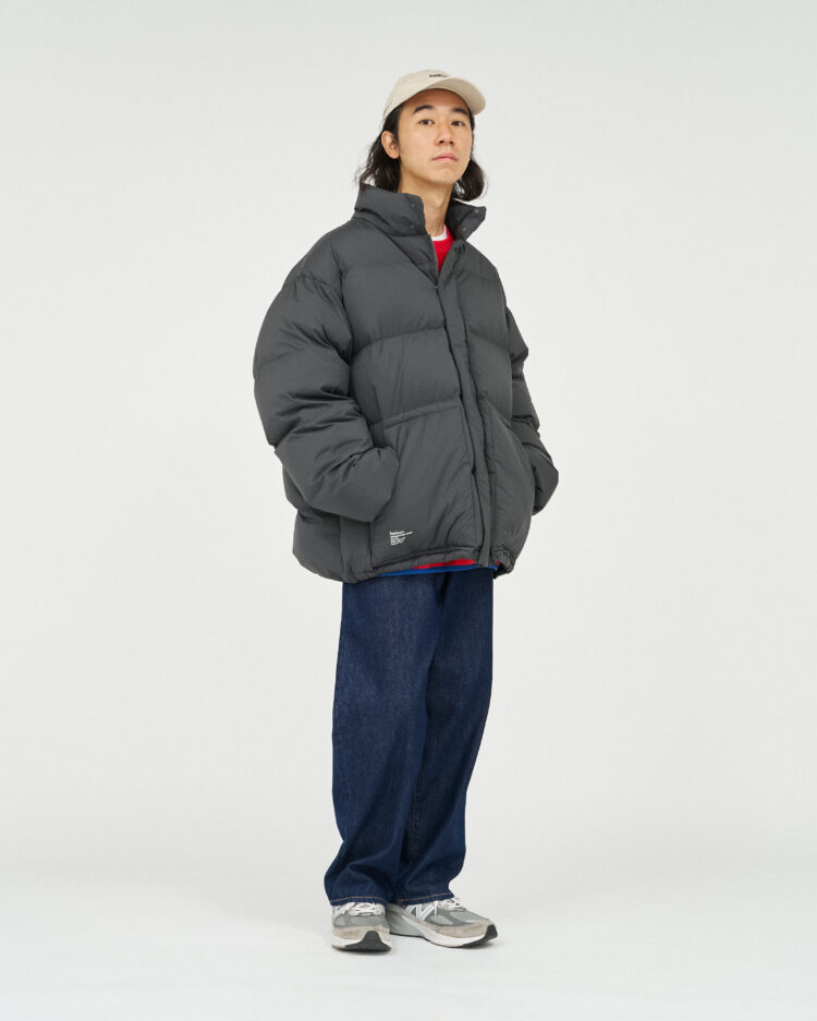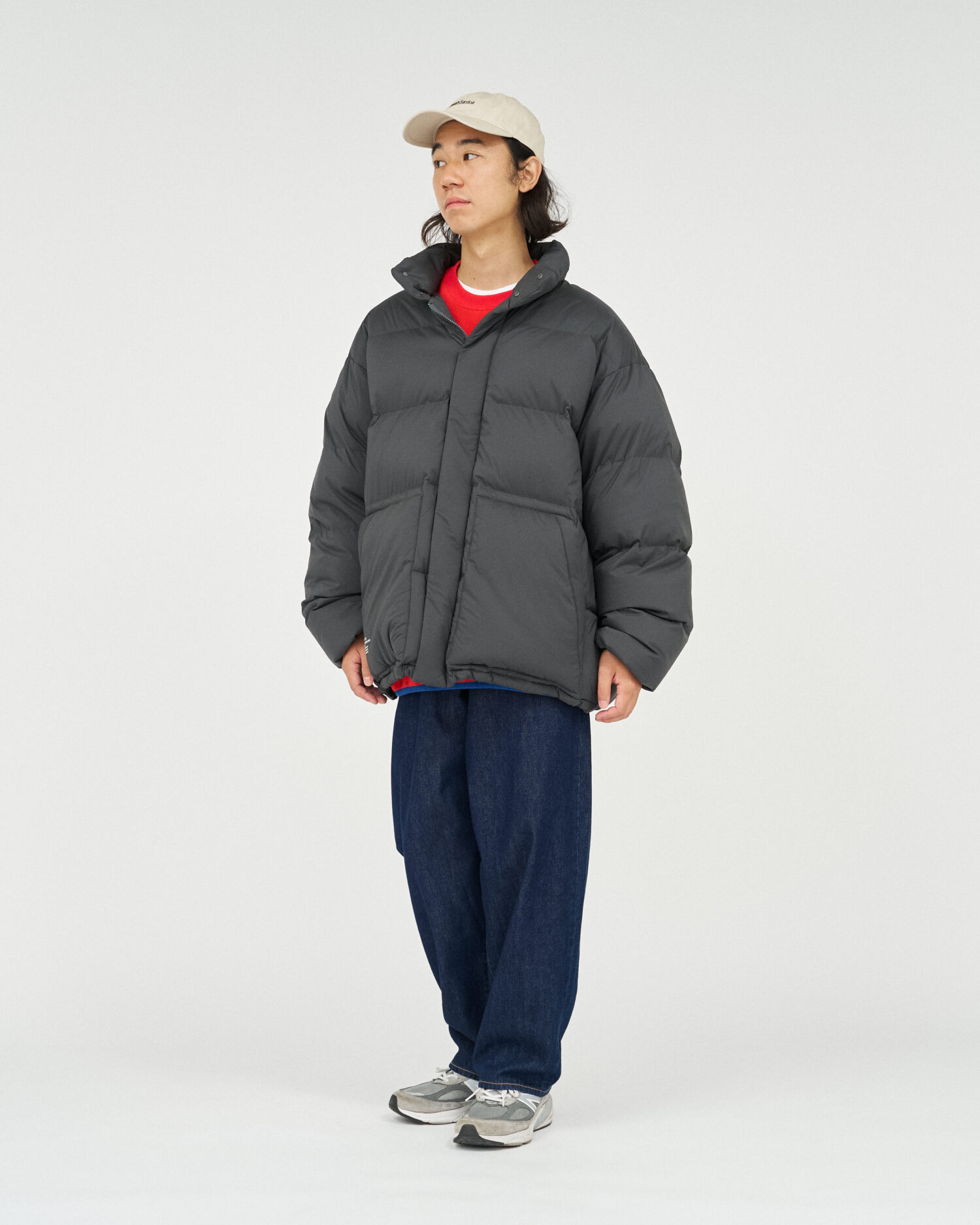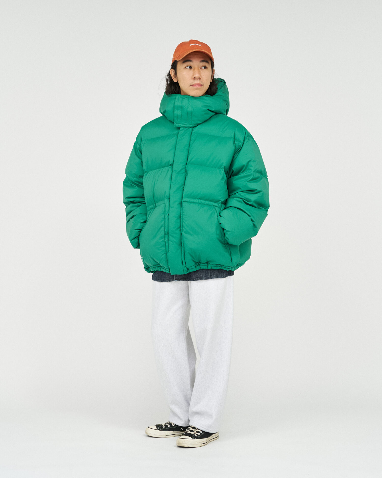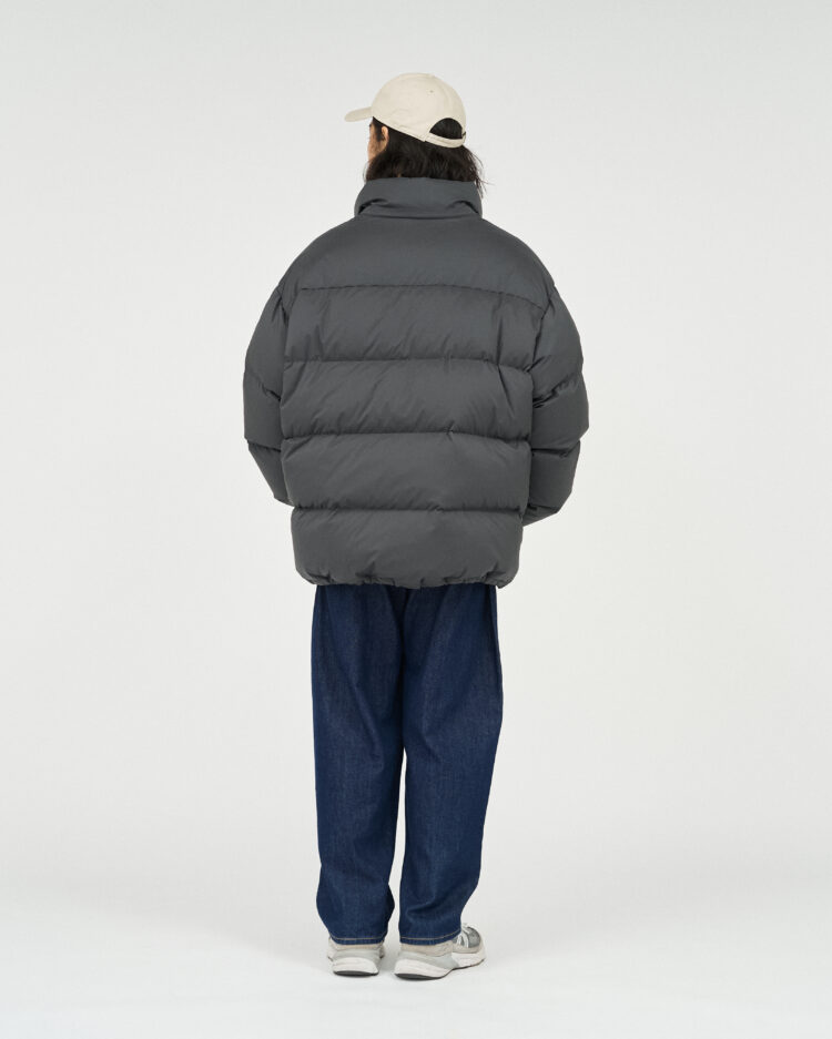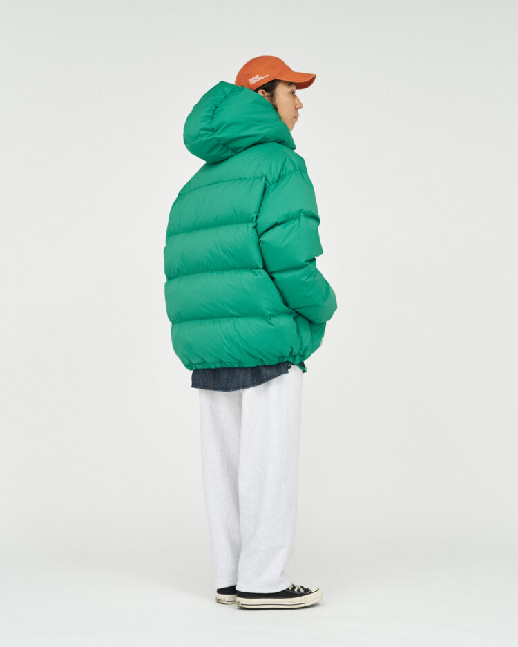 架空の配送業者のユニフォームをイメージしたコーポレートダウンジャケット。表裏に使用した耐摩耗性に優れ手触りも滑らかなナイロン66を用いたマイクロリップストップは撥水加工はもちろん、裏面には耐水性と透湿性を兼ねたコーティングを施した。都市生活からライトなアウトドアシーンまで快適に過ごすスペックを備えている。たっぷりと内包した良質なダウンによる豊かな保温性とFreshServiceらしいボリュームのあるフォルムが特徴。脱着式のフードや内ポケットも付いた機能的な1着。豊富な色展開も魅力。
