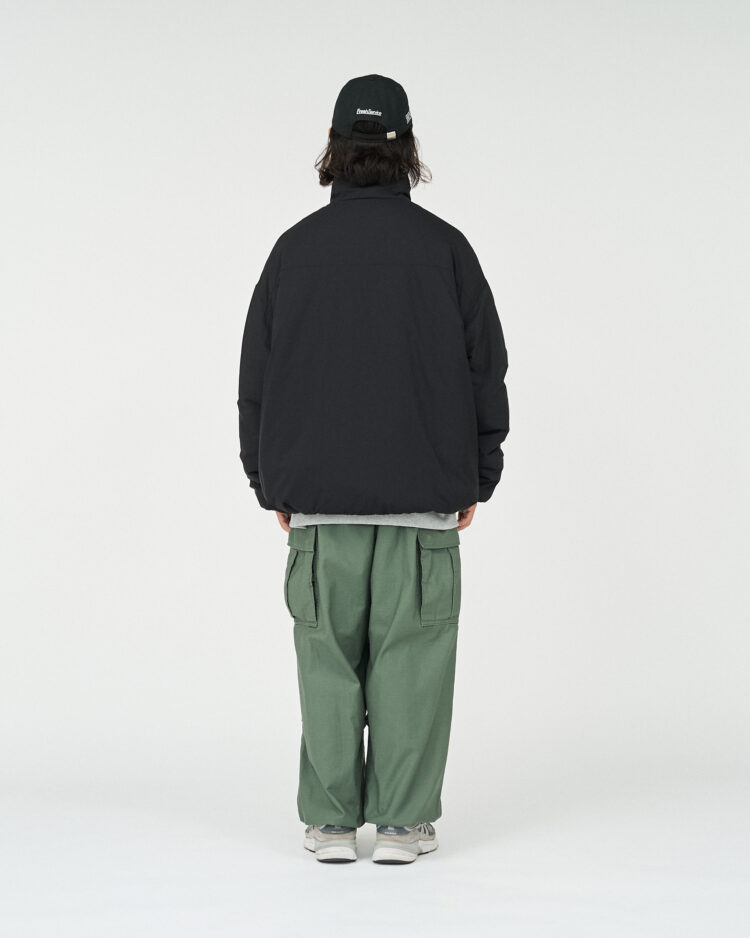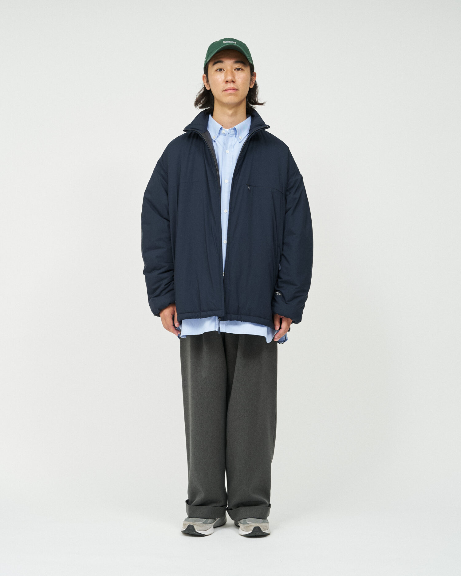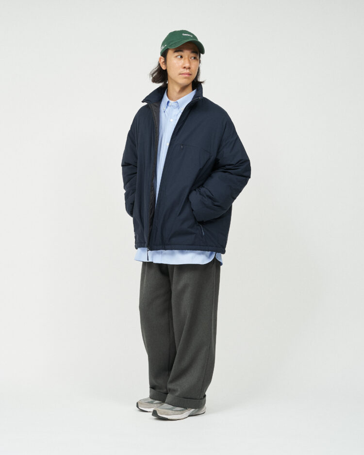 PERTEX? QUANTUMのミニリップストップ生地を使用したジップアップスタンドカラーブルゾン。防風性、通気性、軽量性を兼ね備えた機能的な一着。中綿を搭載しており、軽さを保ちながらもしっかりとした保温性を提供。ゆったりとしたリラックスフィットで、レイヤリングしやすく、アウトドアからタウンユースまで幅広く活躍。