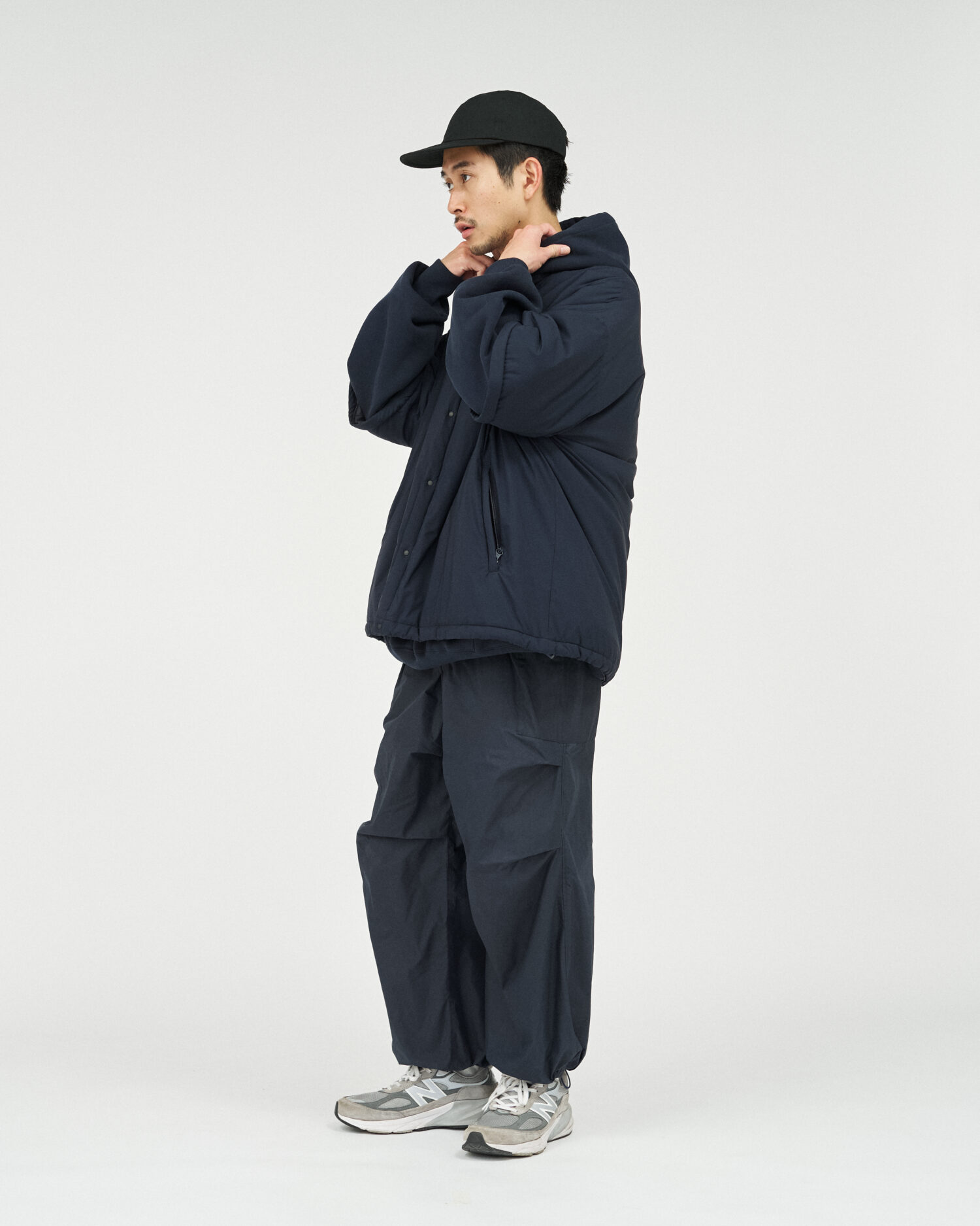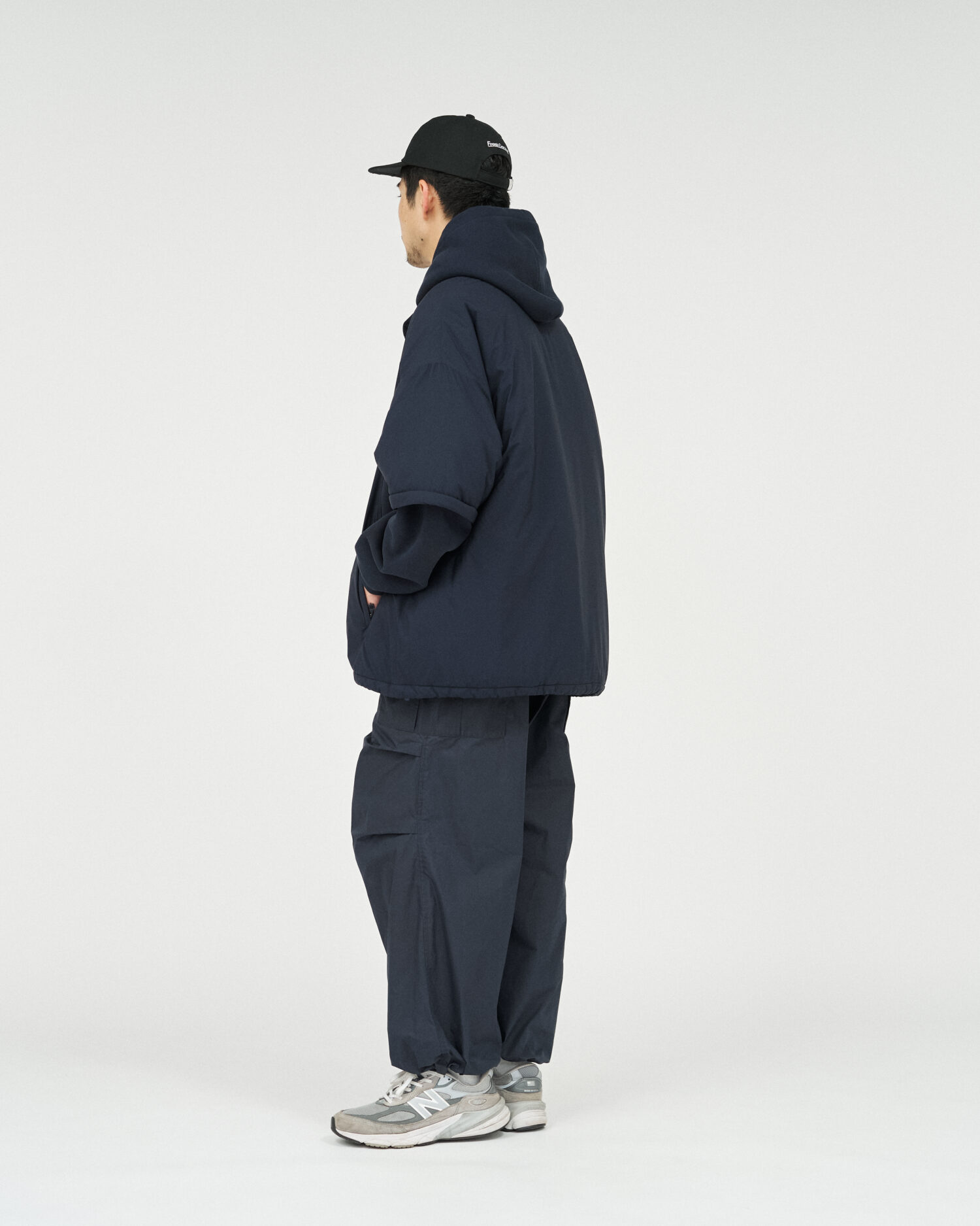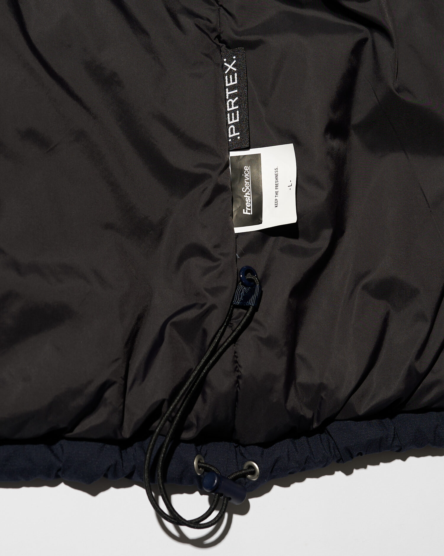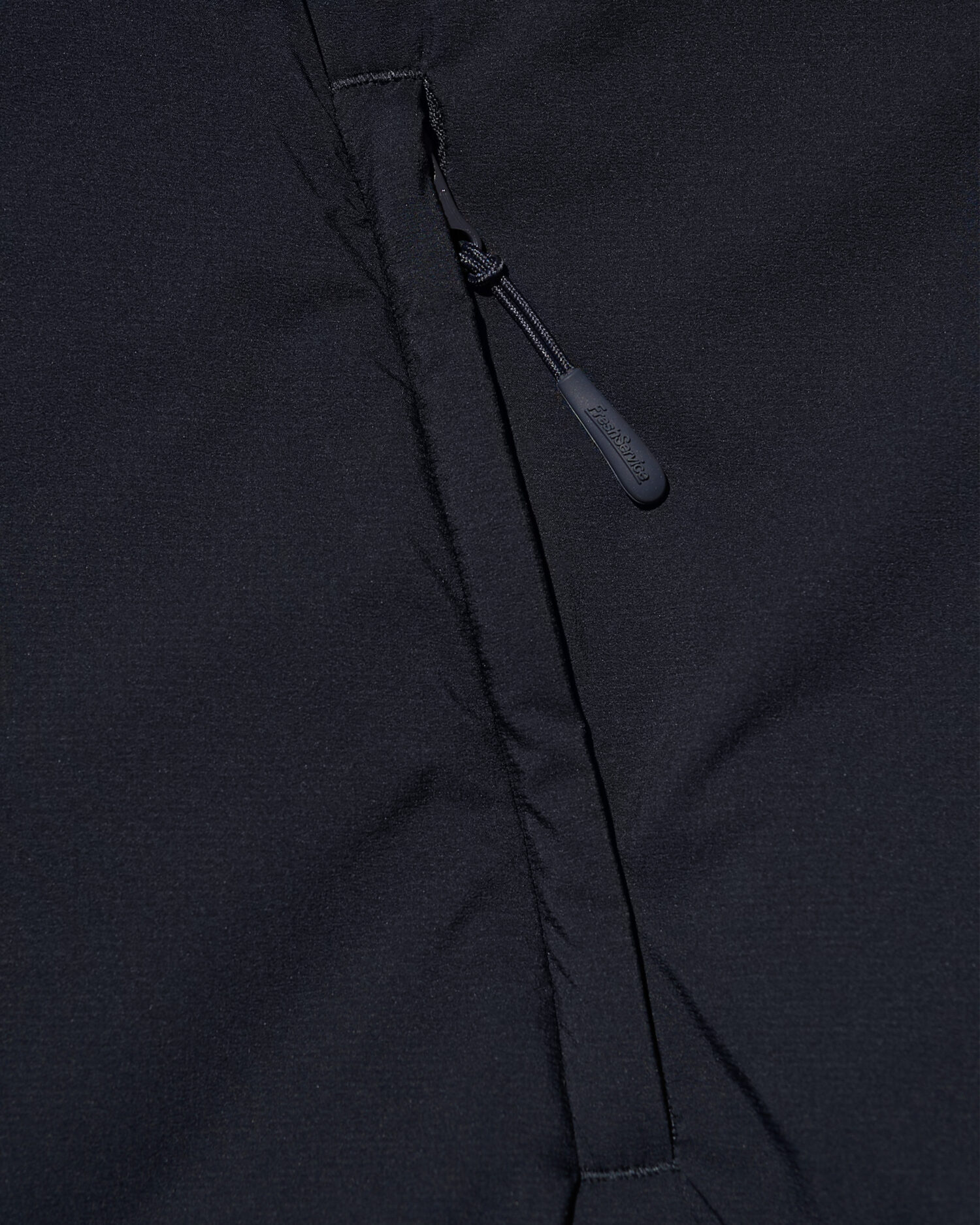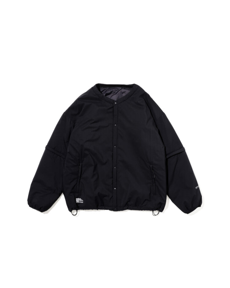 PERTEX? QUANTUMのリップストップ生地を使用したスナップボタン仕様のノーカラージャケット。中綿入りで軽量ながらもしっかりとした保温性。袖の取り外しが可能でレイヤリングアイテムとしても活躍。防風性と通気性を兼ね備えた生地で、様々なスタイルや気候に対応する汎用性の高い一着。