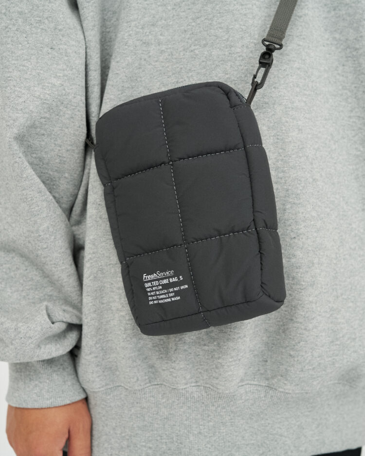 耐摩耗性に優れ手触りも滑らかなナイロン66を用いたマイクロリップストップを使用したキューブ型のキルトバッグ。ダウンジャケットのようにふっくらとしたキルトの膨らみが特徴。ショルダーベルトを取り外してポーチとしても活躍する。スモールサイズ。 (W125 x H190 x D50)