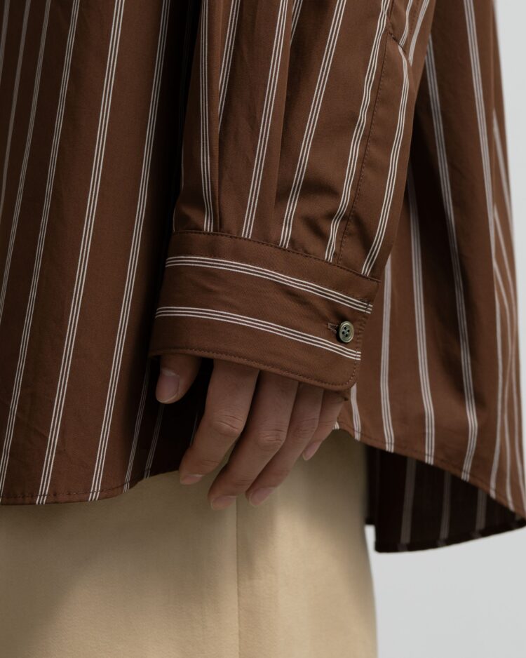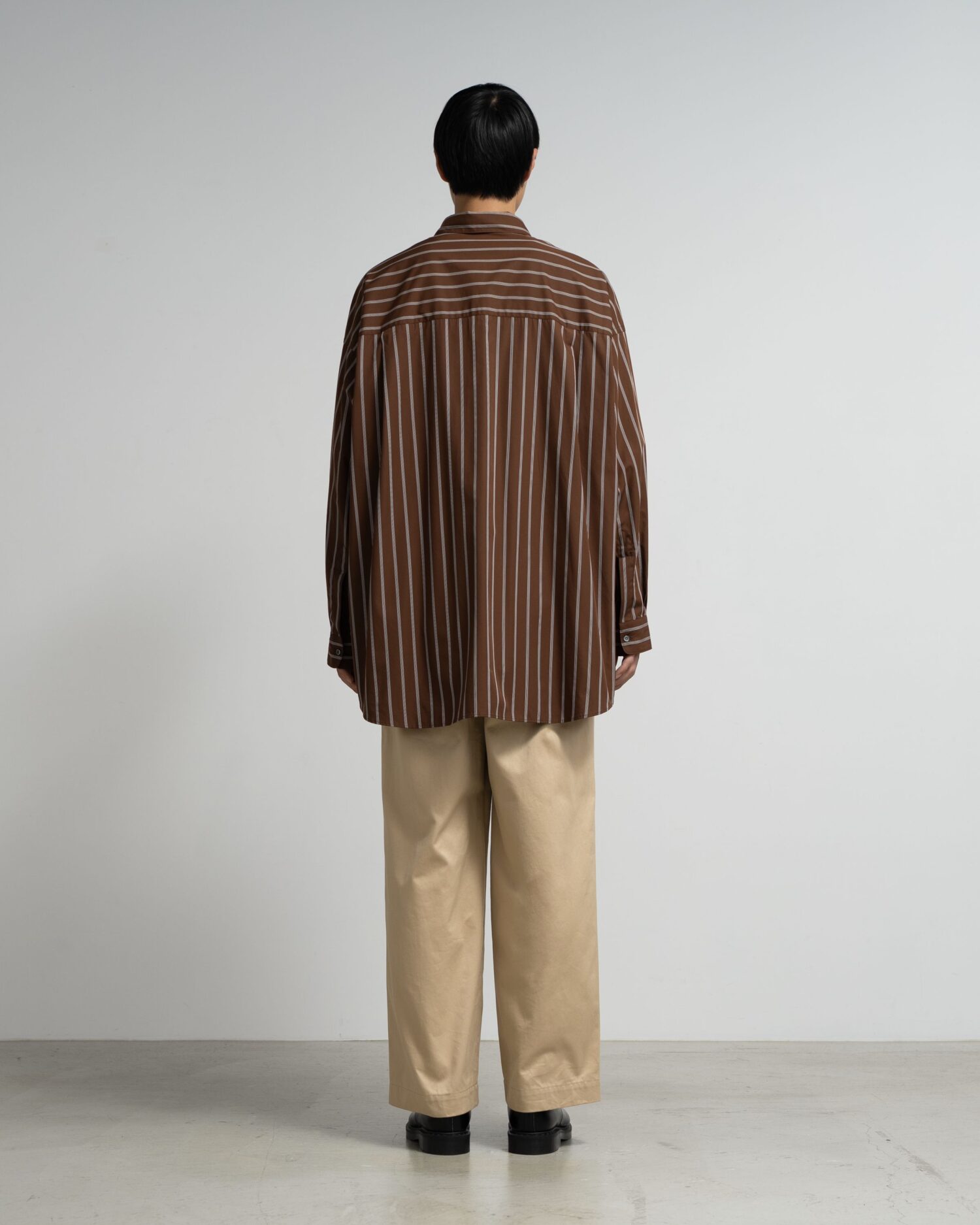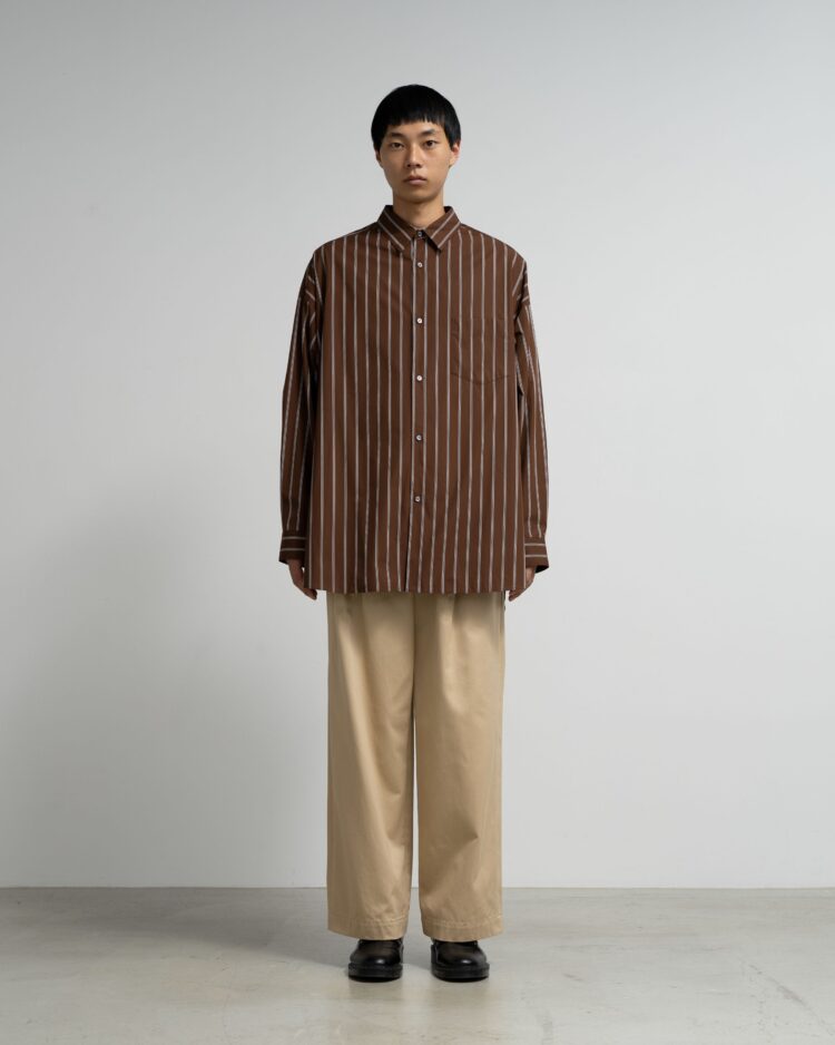 スペイン・バルセロナに拠点を持つSIDOGRAS(シドグラス)社の上質で繊細なコットンを使用したブロード生地のオーバーサイズシャツ。鮮やかな染色と素材そのものの艶感と適度なハリコシ、柔らかい肌触りも魅力。ドロップショルダーでボリュームのあるボックスシルエットでオーセンティックなレギュラーカラー。肩の傾斜や低く下げられたヨークの位置、アームホールの広さなど、細かなディテールを特異なバランスで仕上げたビックシルエット。