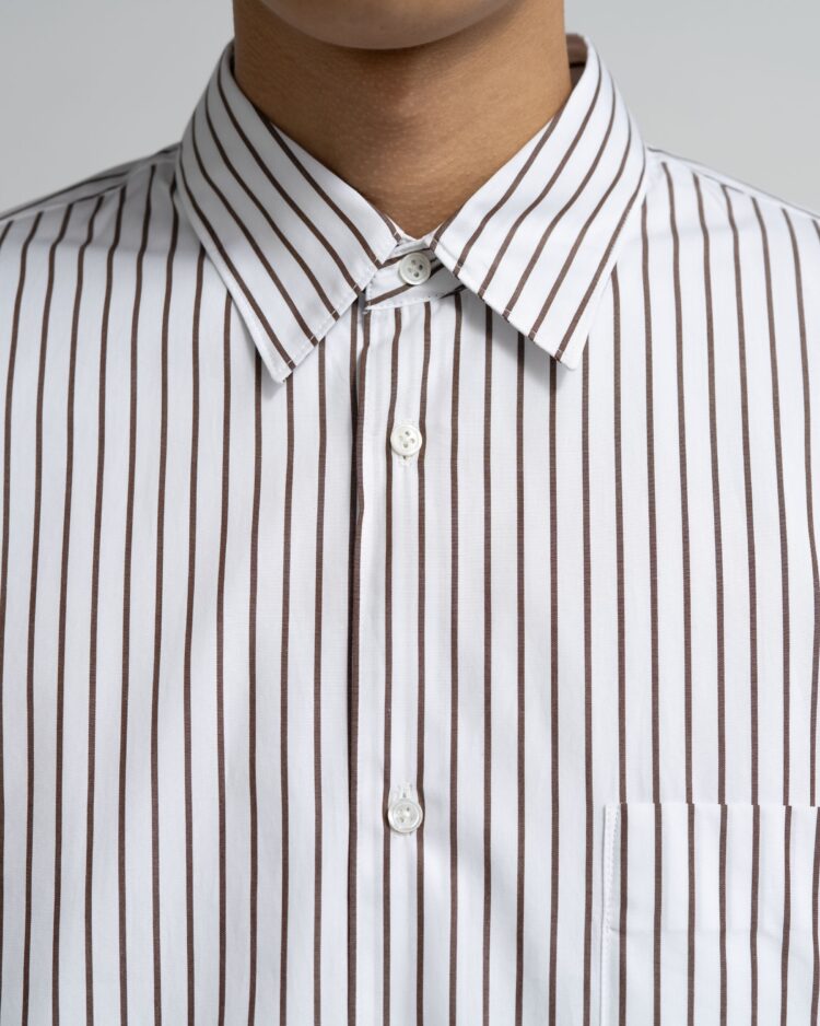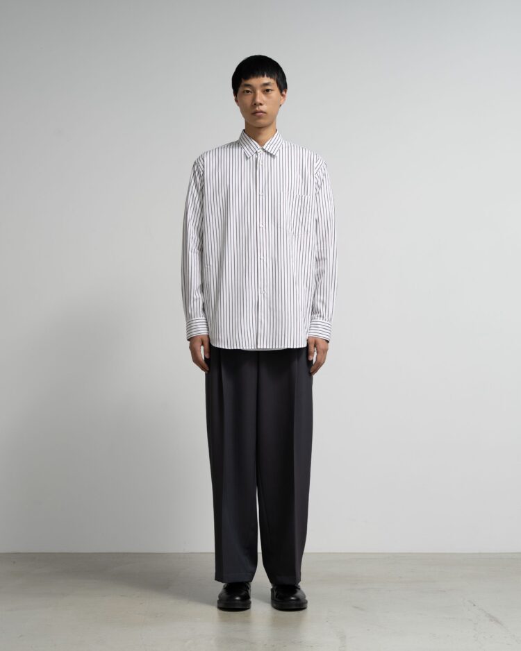 スペイン・バルセロナに拠点を持つSIDOGRAS(シドグラス)社の上質で繊細なコットンを使用したブロード生地のレギュラーカラーシャツ。鮮やかな染色と素材そのものの艶感と適度なハリコシ、柔らかい肌触りも魅力。ラインはボックスシルエットで体系に合わせて&好みのサイズで着こなせる3サイズ展開。