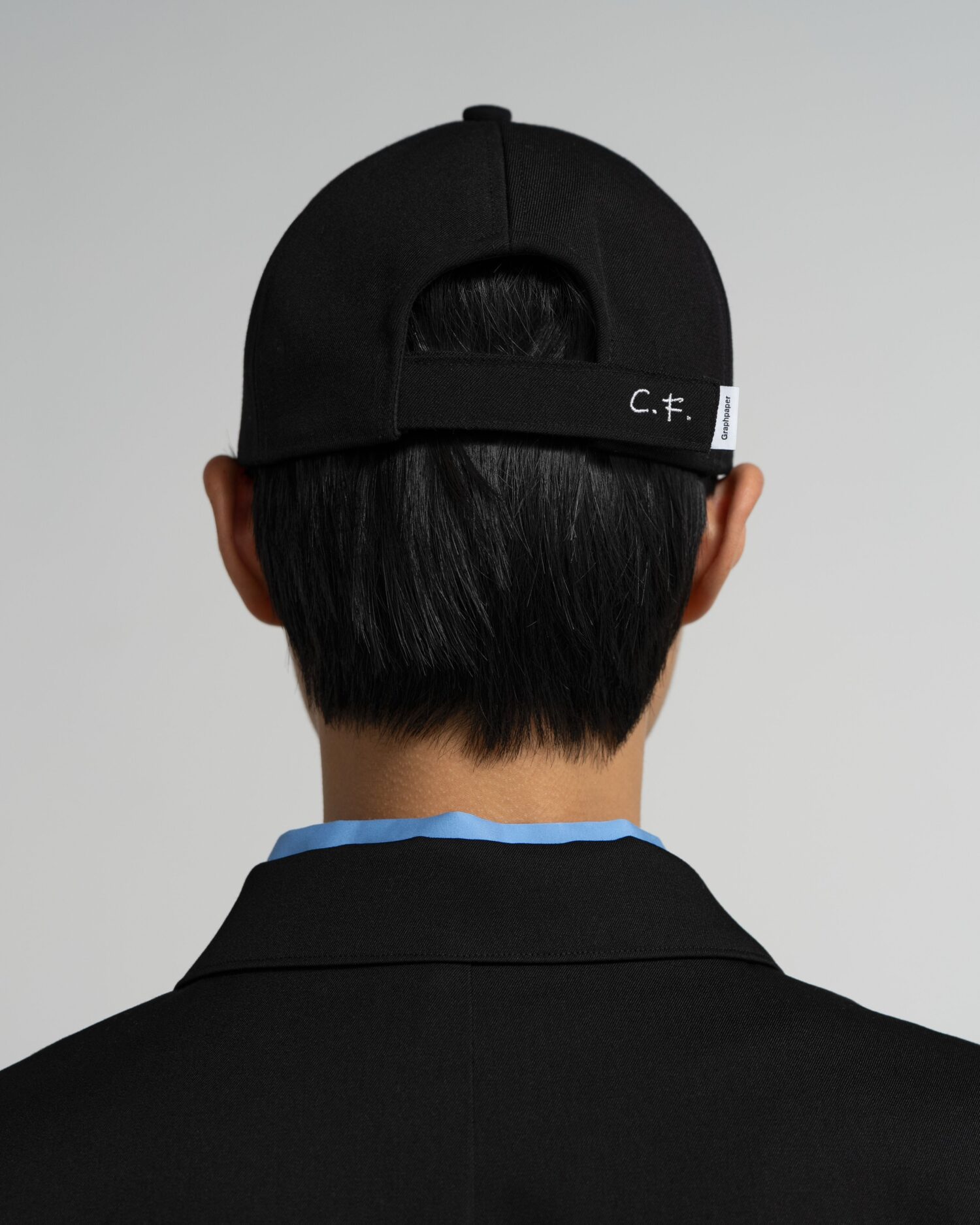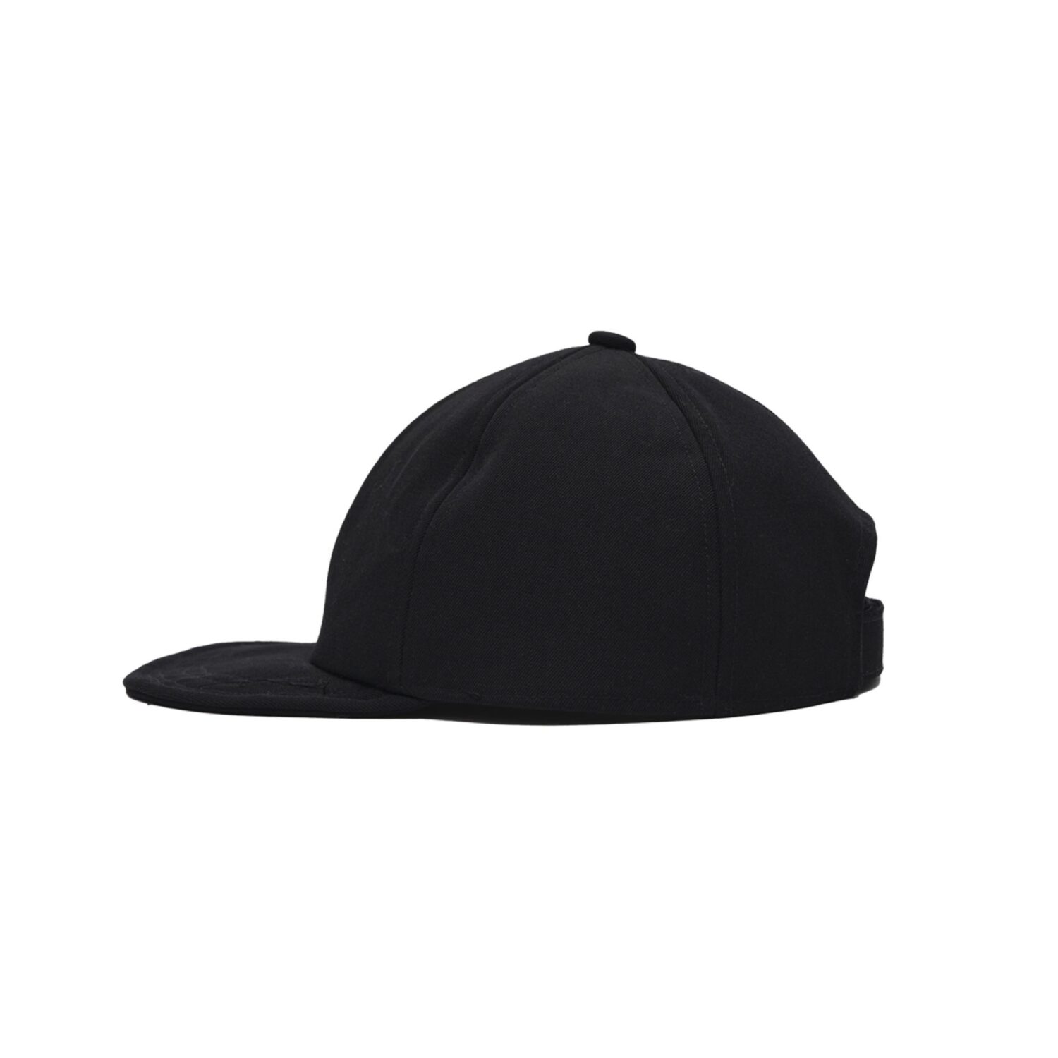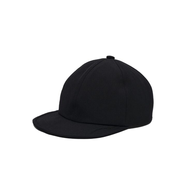 6パネルキャップをベースに、丸みや高さなどのフォルムを再構築。つばは、不均一なステッチや糸残りを施したセミストラクチャー仕様。表地にはサテン裏の二重織りウールギャバジンを使用し、内側には無染色のコットンヘリンボーンツイルを貼り合わせることで適度なハリを表現しました。