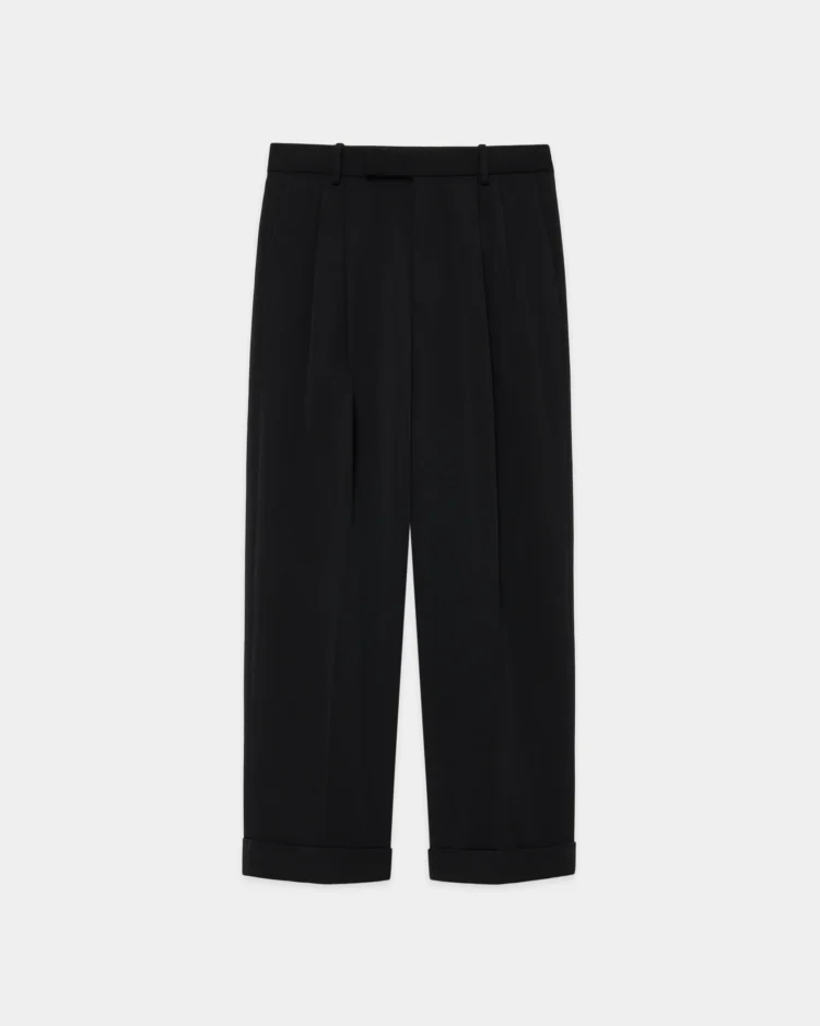 ワイドかつ立体的なシルエットが特徴の「Double Pleated Wide Trousers」。