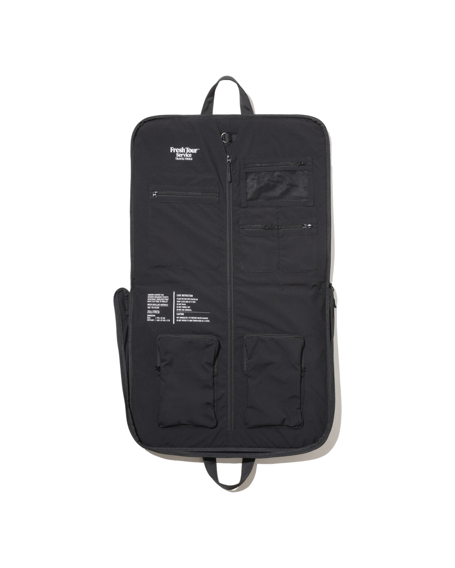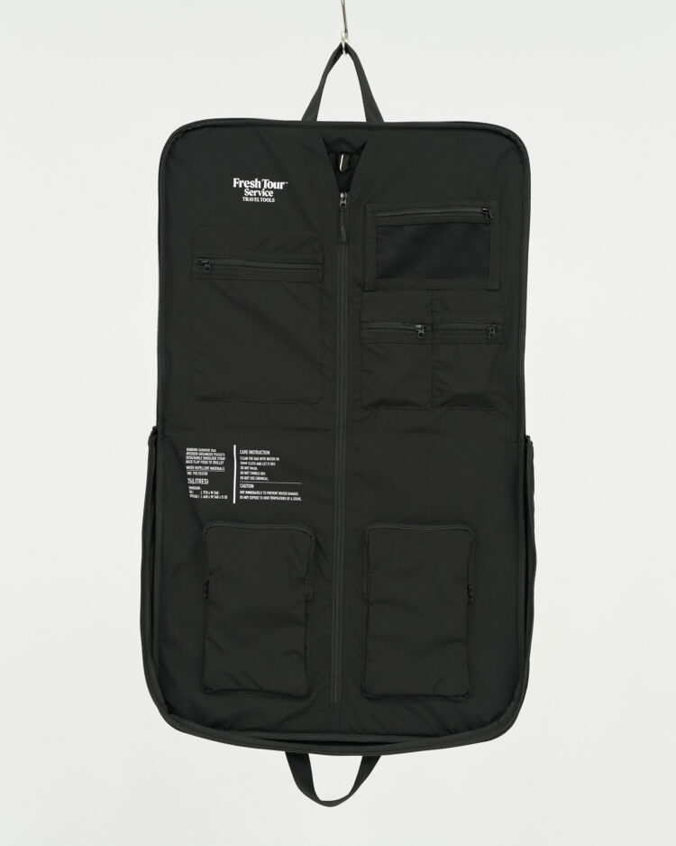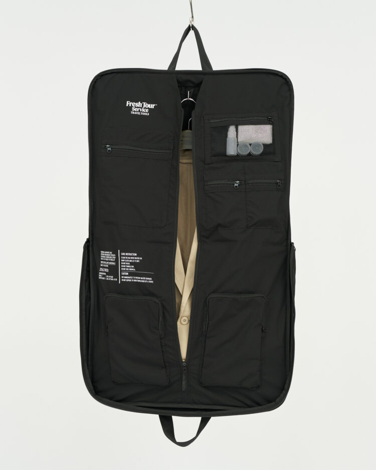 旅を“非日常”ではなく、日常の延長として捉える。都市から自然へ、そしてまた日常へと行き来する。そんな現代のライフスタイルを前提に、旅の快適さを追求したシリーズ『Fresh Tour Service』。出張や冠婚葬祭、旅行などの際に活躍するガーメントバッグ。ジャケットにシワを付けずに持ち運べるだけでなく、シャツからネクタイ、小物まで細々したアイテムの収納に役立つ多様なファスナー付きポケットを搭載。手提げと肩掛けの2Way仕様でスーツケースのキャリーハンドルにも固定出来る嬉しい仕様です。