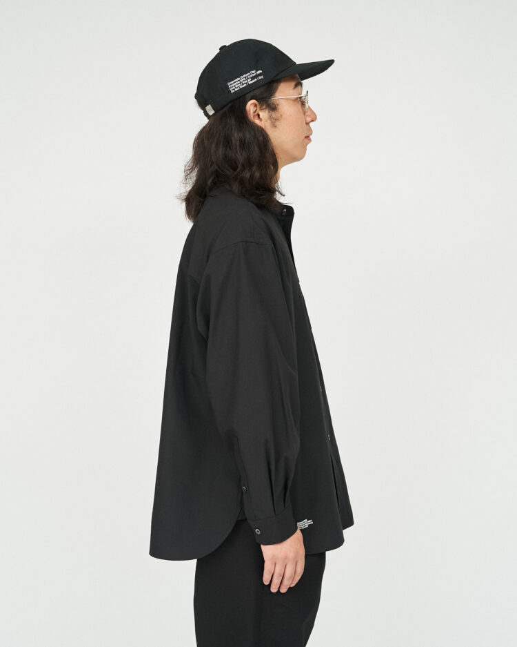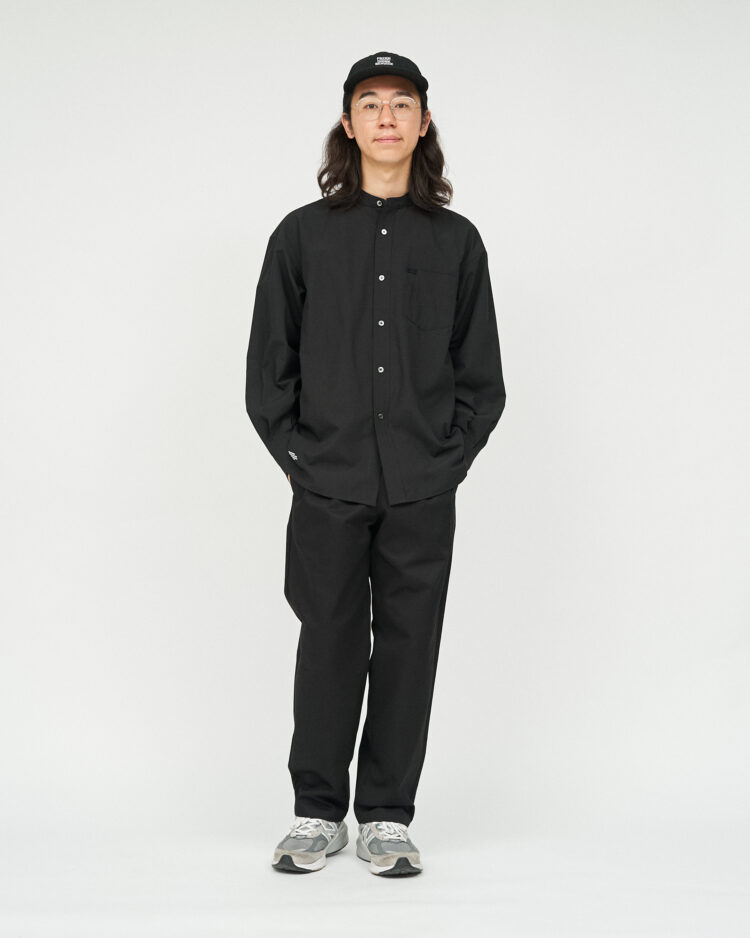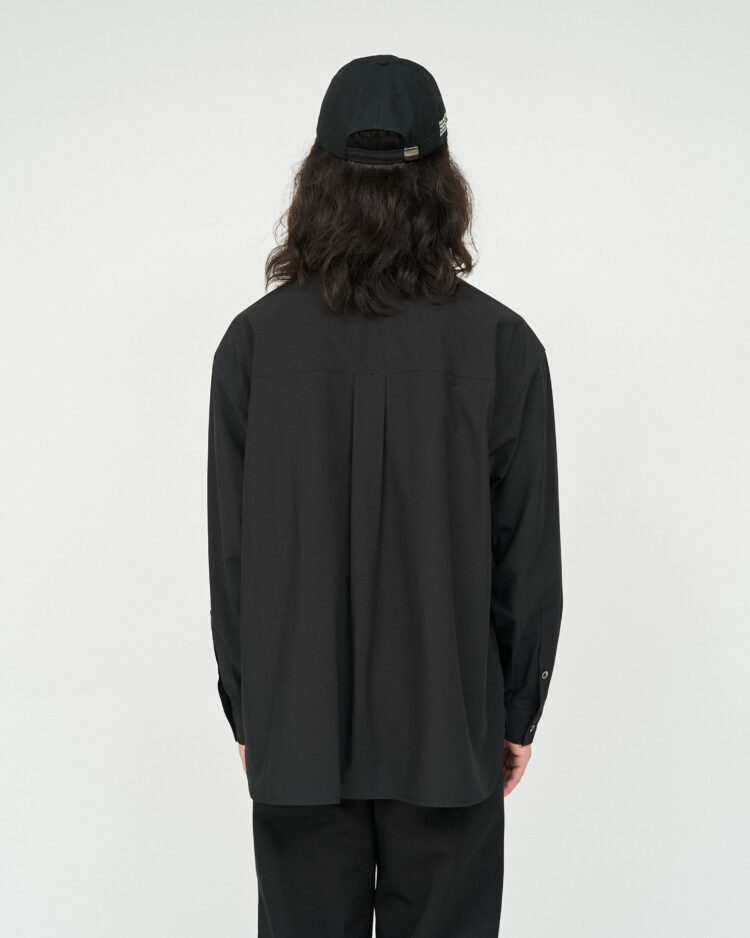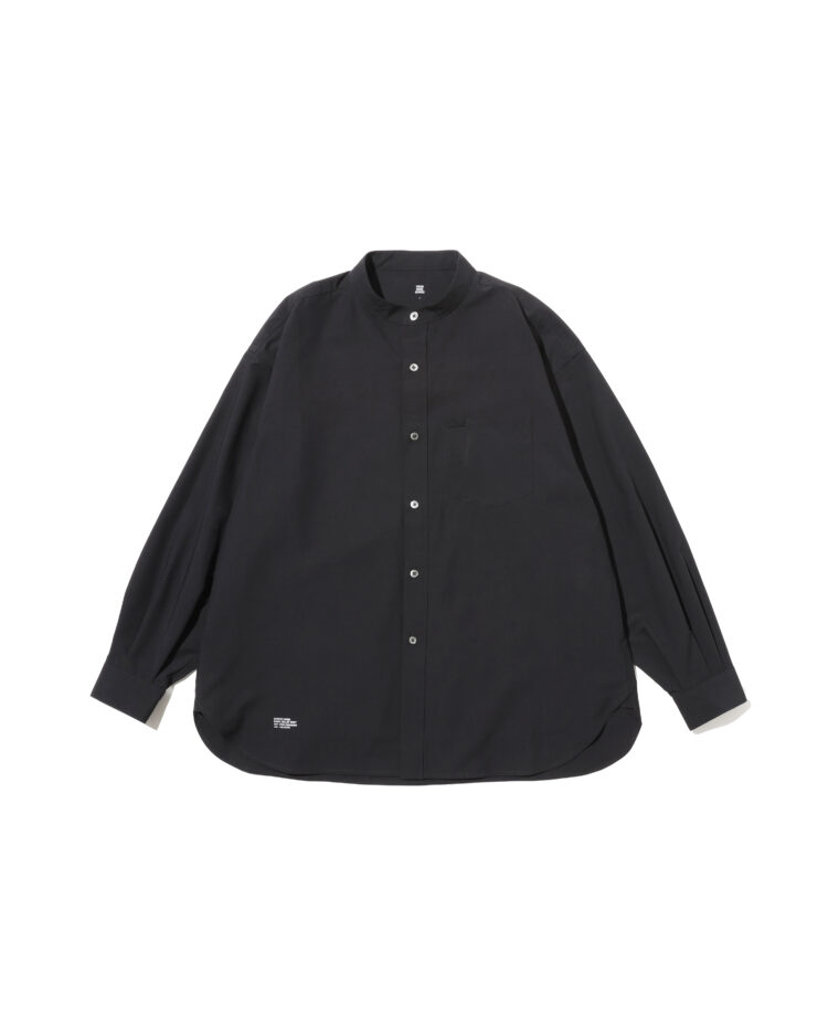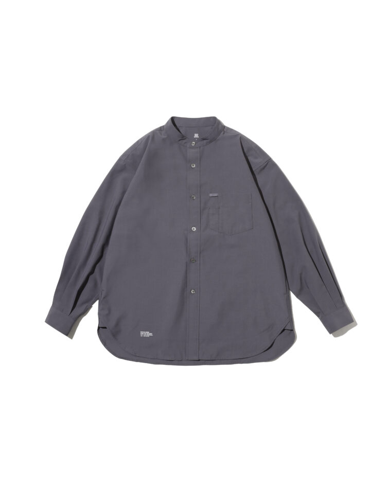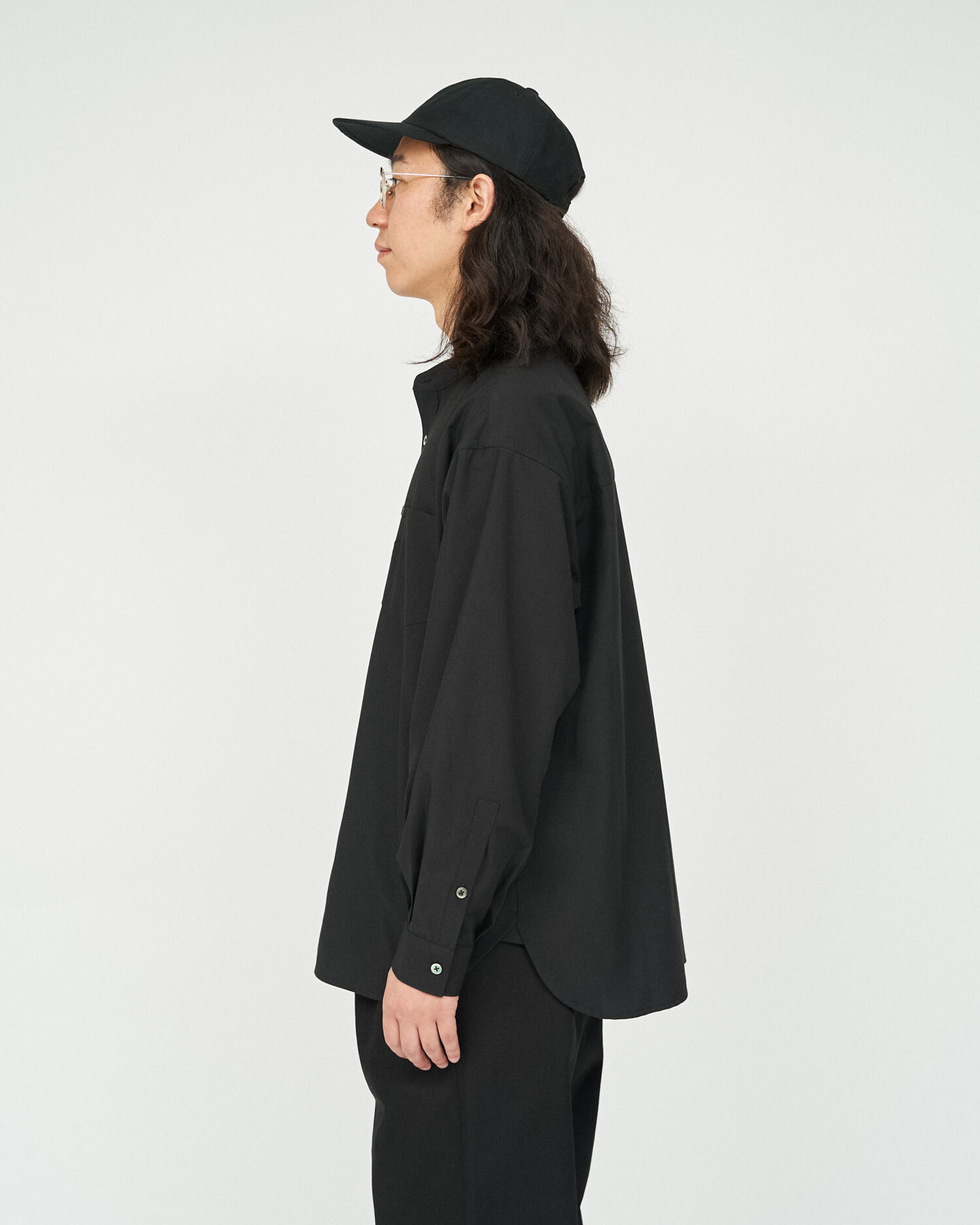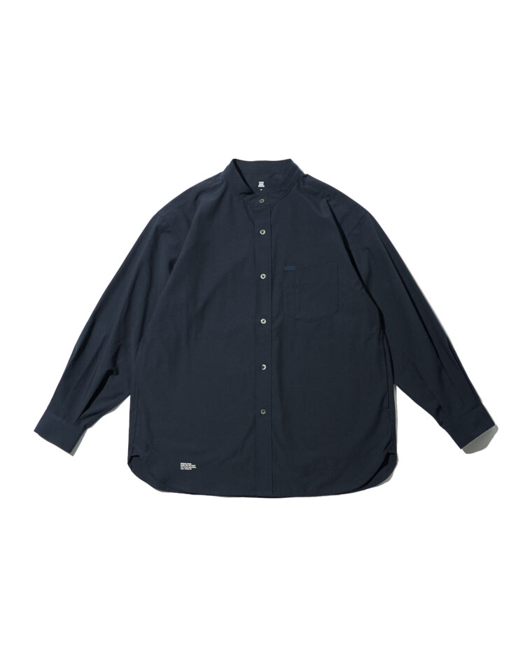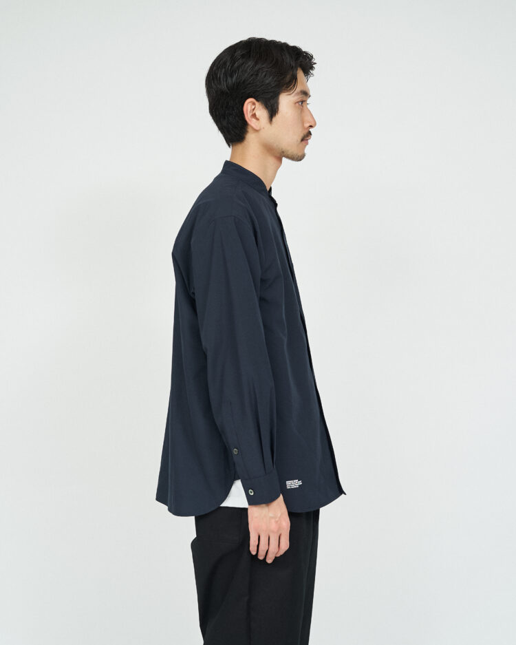 FRESH DRINK SERVICEの厨房でもホールでも映える、飲食店、サービス業に向けたバンドカラーユニフォームシャツ。フロントにはペン刺しが一体となった胸ポケットを配備。軽量なポリエステルの平織り素材で、コットンのようなブラッシュ仕上げとマットな仕上がりが特徴。撥水性があり、汚れがつきにくく落としやすい。