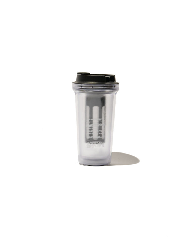 FRESH DRINK SERVICEからリリースされるRIVERSとのコラボレーション。セットするだけで水出しコーヒーやお茶を淹れられる、専用ストレーナー付きのタンブラー。氷入りの冷たいドリンクも視覚的に涼しく楽しめるガラスのような風合いが特長。 また、ホットドリンクを入れても本体が二重構造になっているため、熱くて直接持てないということがなく、また結露しにくいのもうれしいポイント。