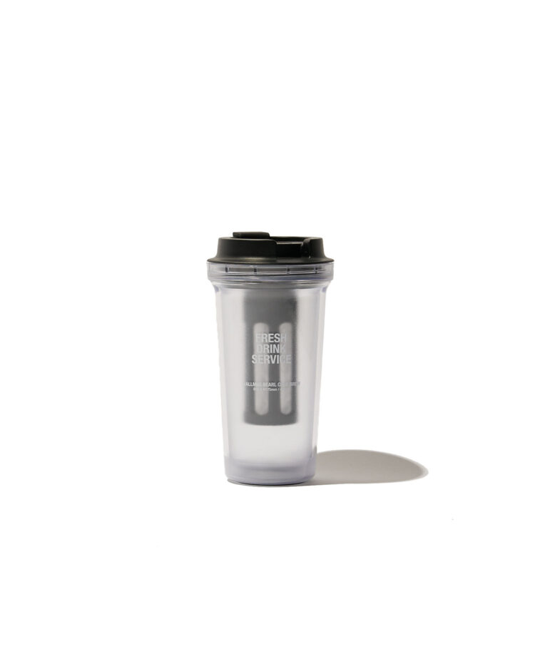 FRESH DRINK SERVICEからリリースされるRIVERSとのコラボレーション。セットするだけで水出しコーヒーやお茶を淹れられる、専用ストレーナー付きのタンブラー。氷入りの冷たいドリンクも視覚的に涼しく楽しめるガラスのような風合いが特長。 また、ホットドリンクを入れても本体が二重構造になっているため、熱くて直接持てないということがなく、また結露しにくいのもうれしいポイント。