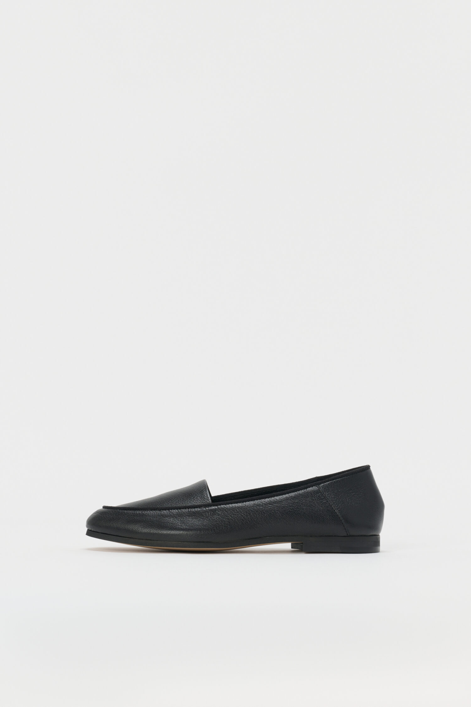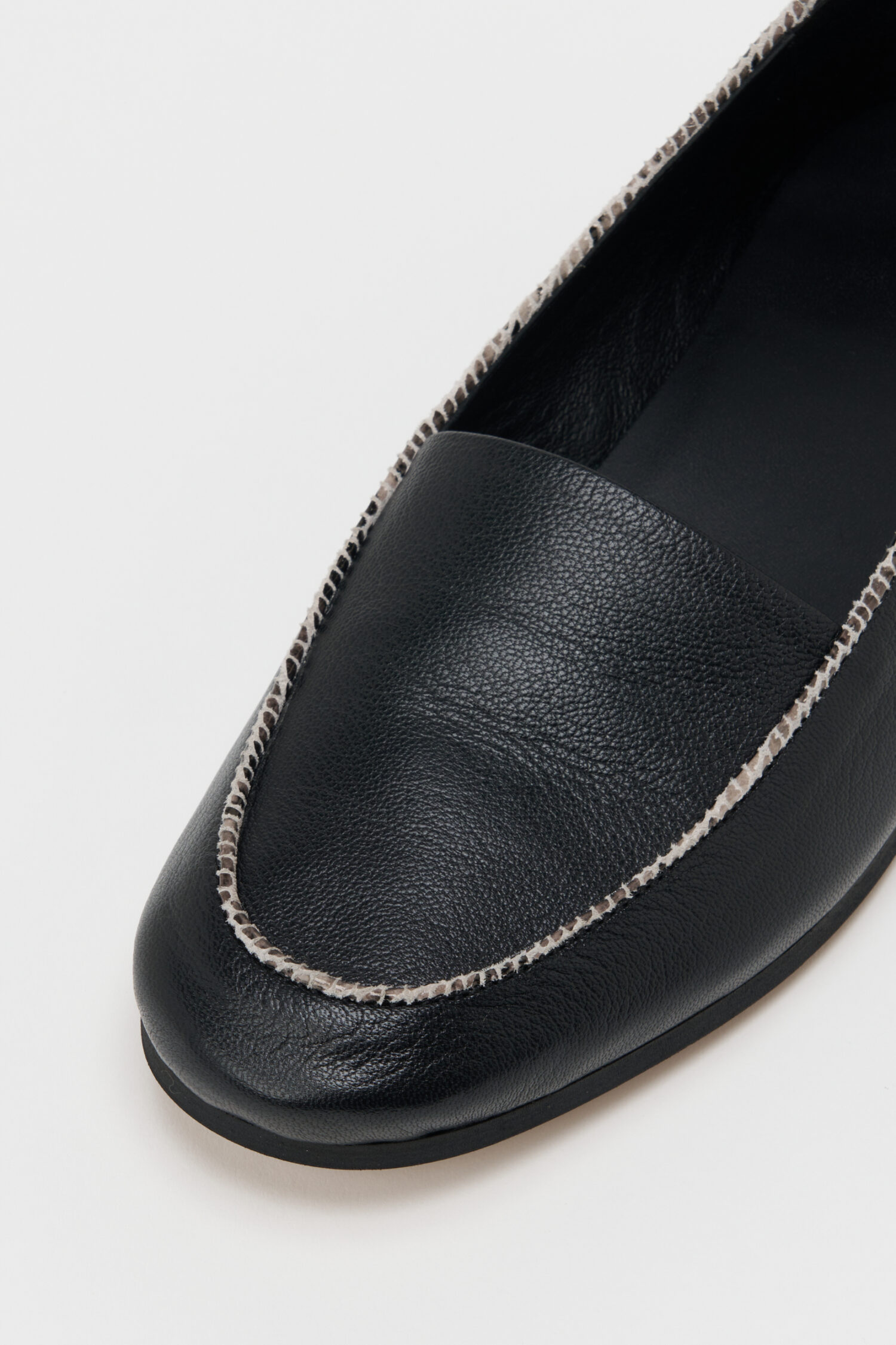 モカラインとトップラインを揃えたパターンの造形美を強調しながらもミニマルなアッパー。素材構成はカラーによって異なり、「black / python」のみゴートレザーとピッグレザーを使用。