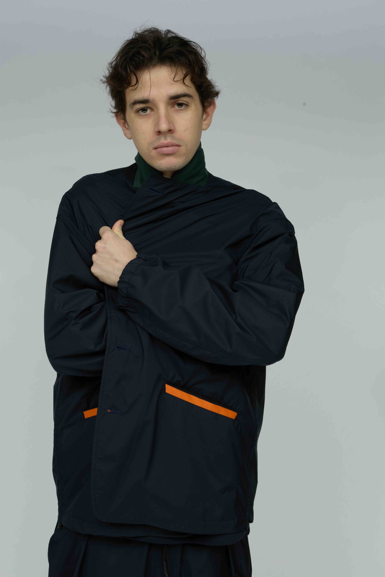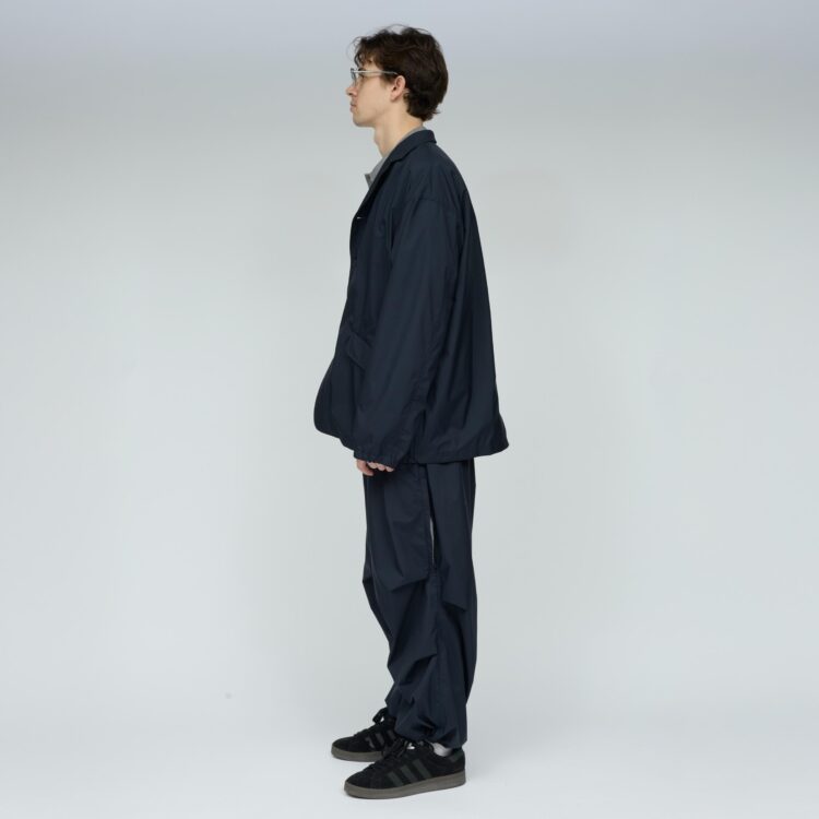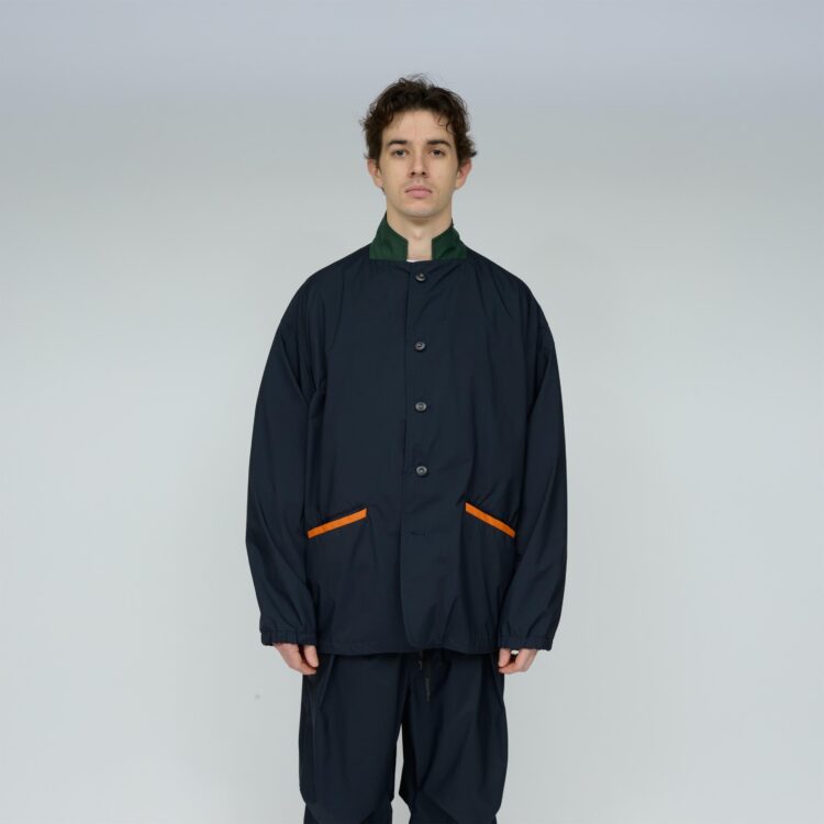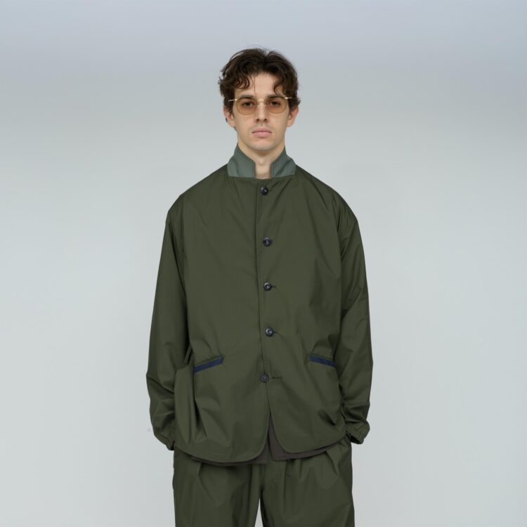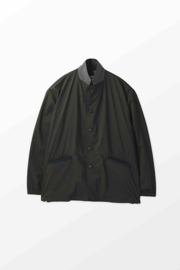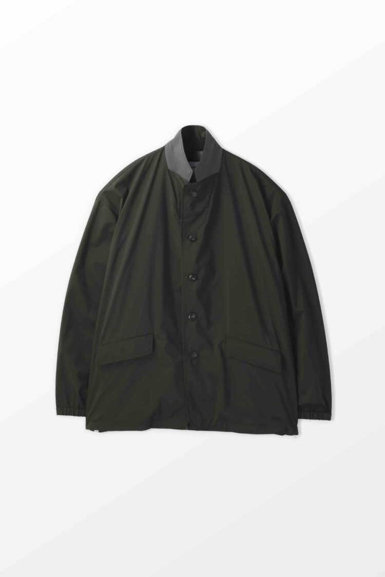 軽量リサイクルナイロン・マイクロリップをベースに特殊ウレタン透湿フィルムをラミネートした3レイヤー素材を使用したジャケット。