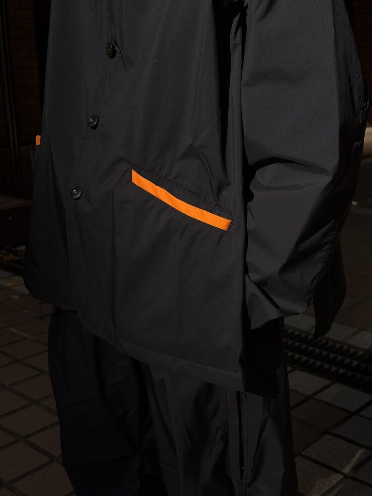 グラフィカルに表現。さらに各カラーに合わせて襟裏とフラップポケット部分に配色の生地をあしらい、見せ方によってアクセントを加えられる仕様です。
