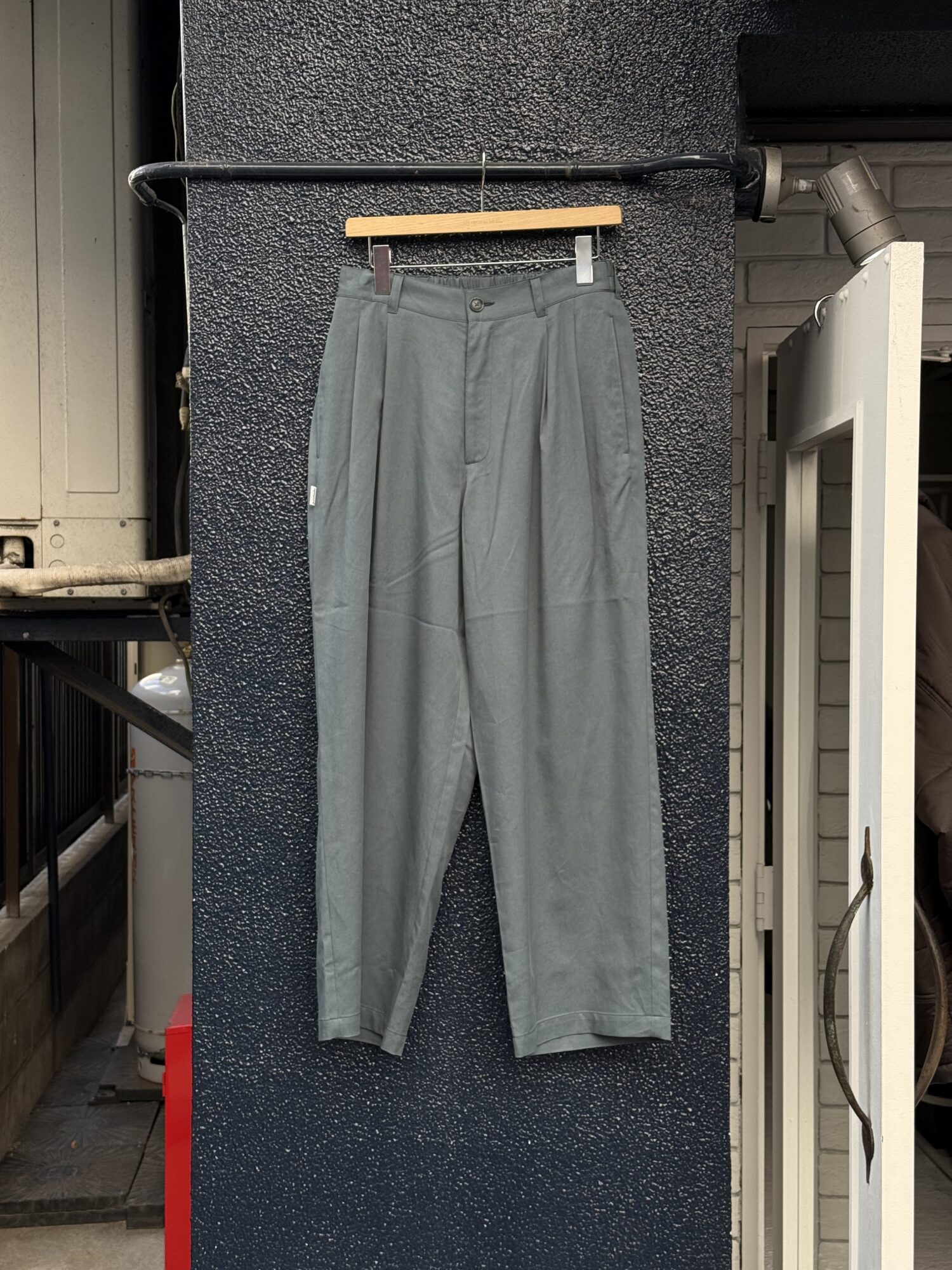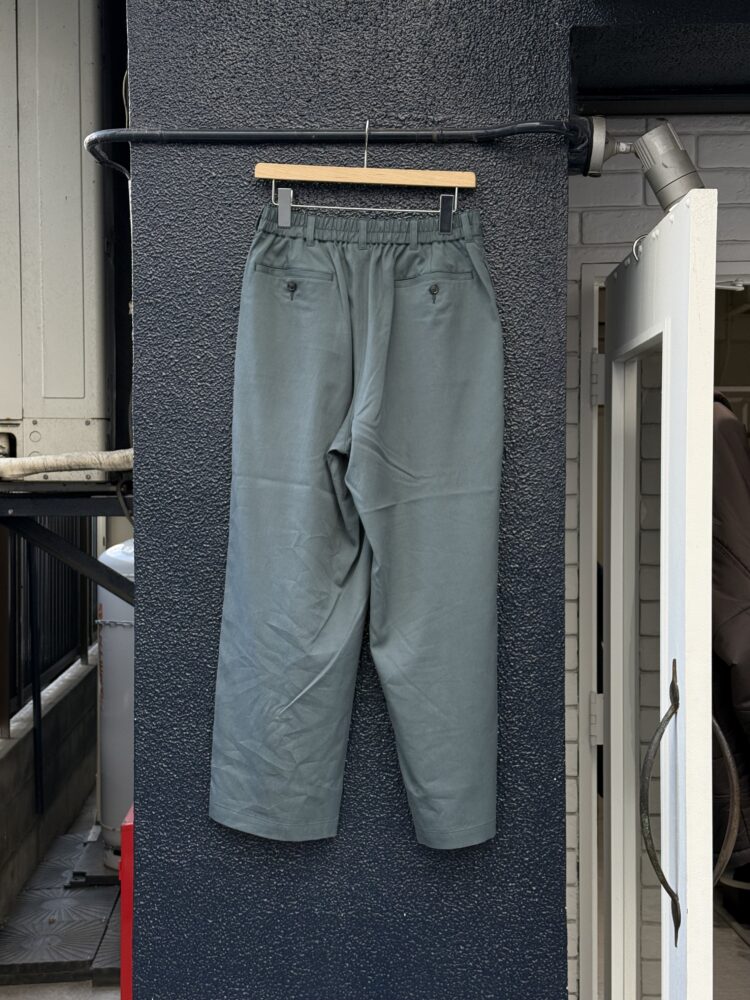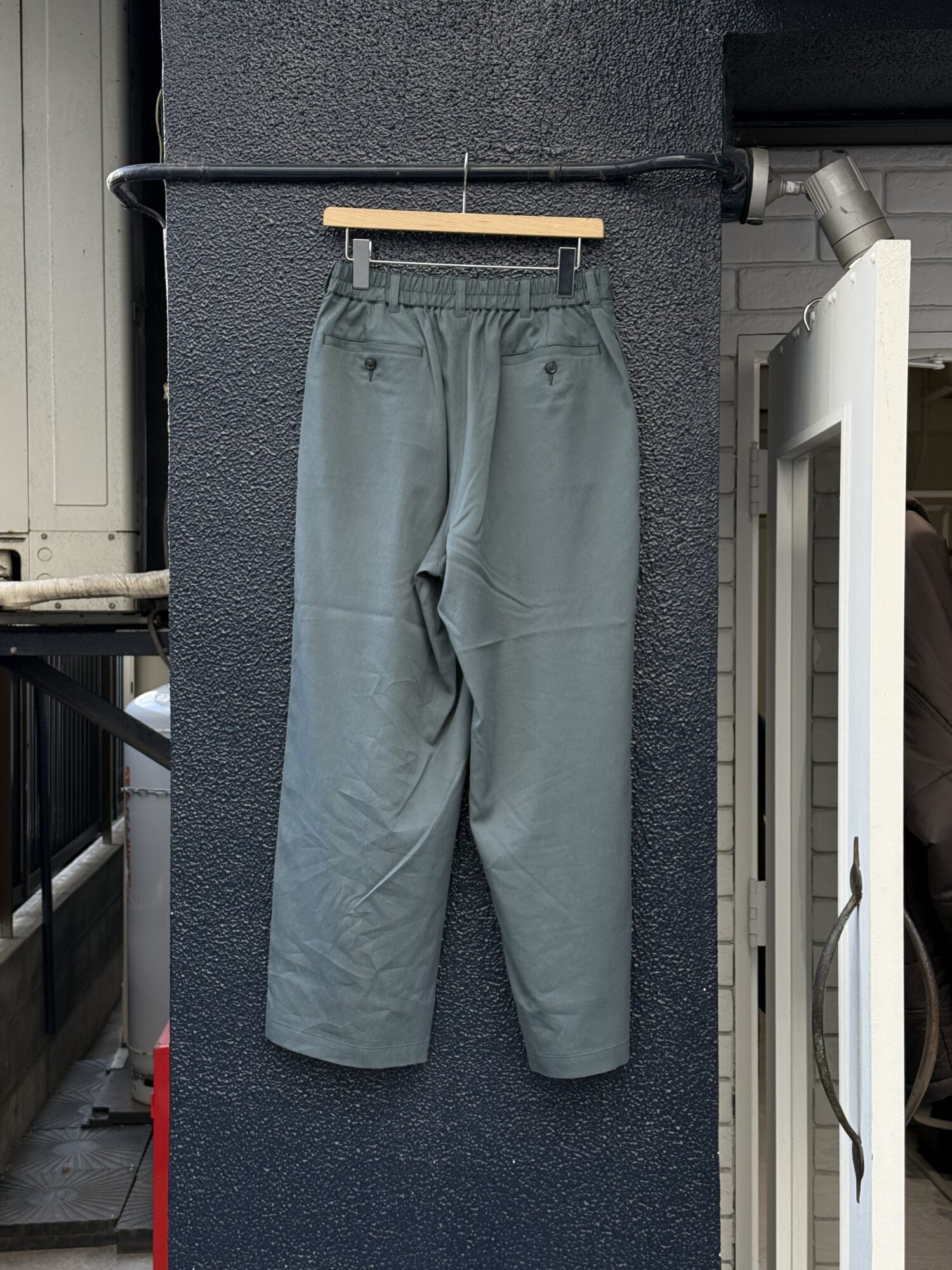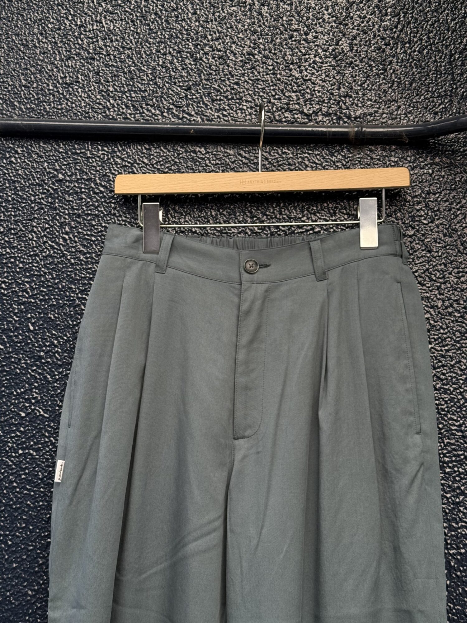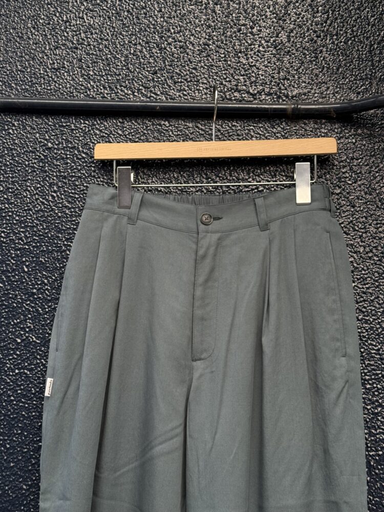 SQUEEZED DESIGN では定番となっている2タックのワイドパンツです。2タック入りの太めのシルエットとウエストの後ろ部分にゴム入りのためベルト無しでも履ける快適な仕様です。テンセル×コットンのレーヨンライクな生地で独特なドレープ感のある2TUCK RAYON PANTSです。テンセル×コットンですのでご自宅での水洗いも可能でお手入れも楽です。