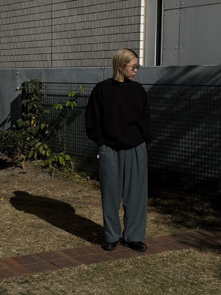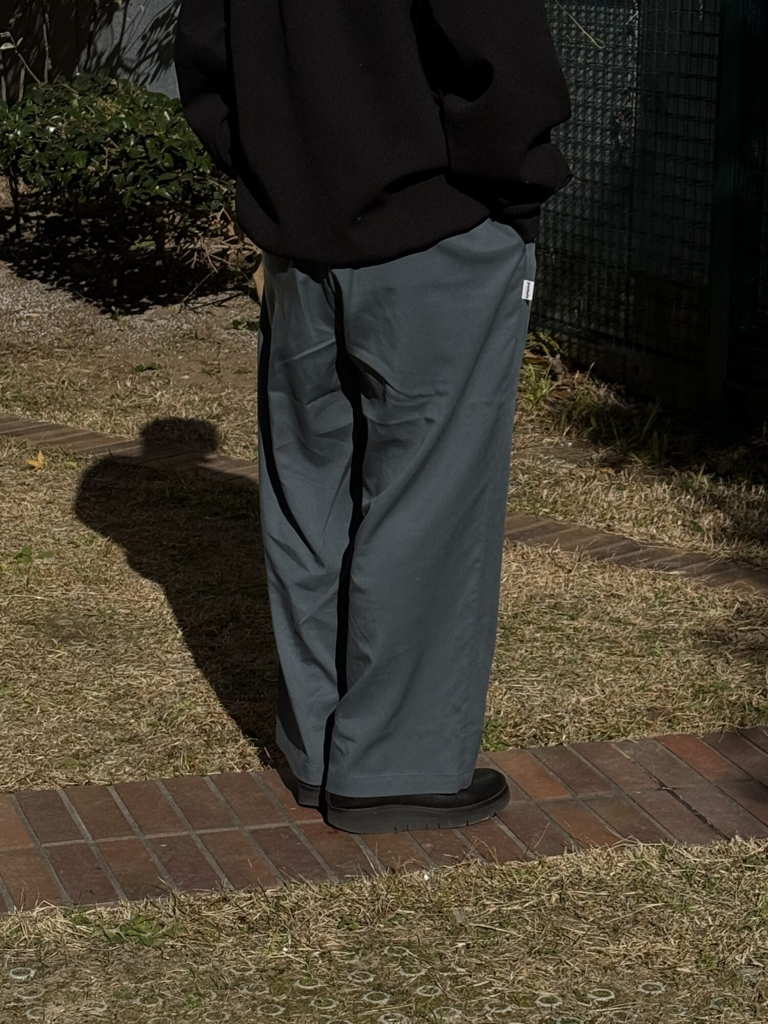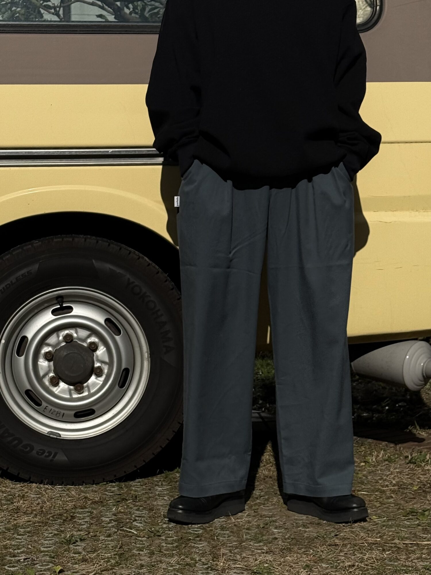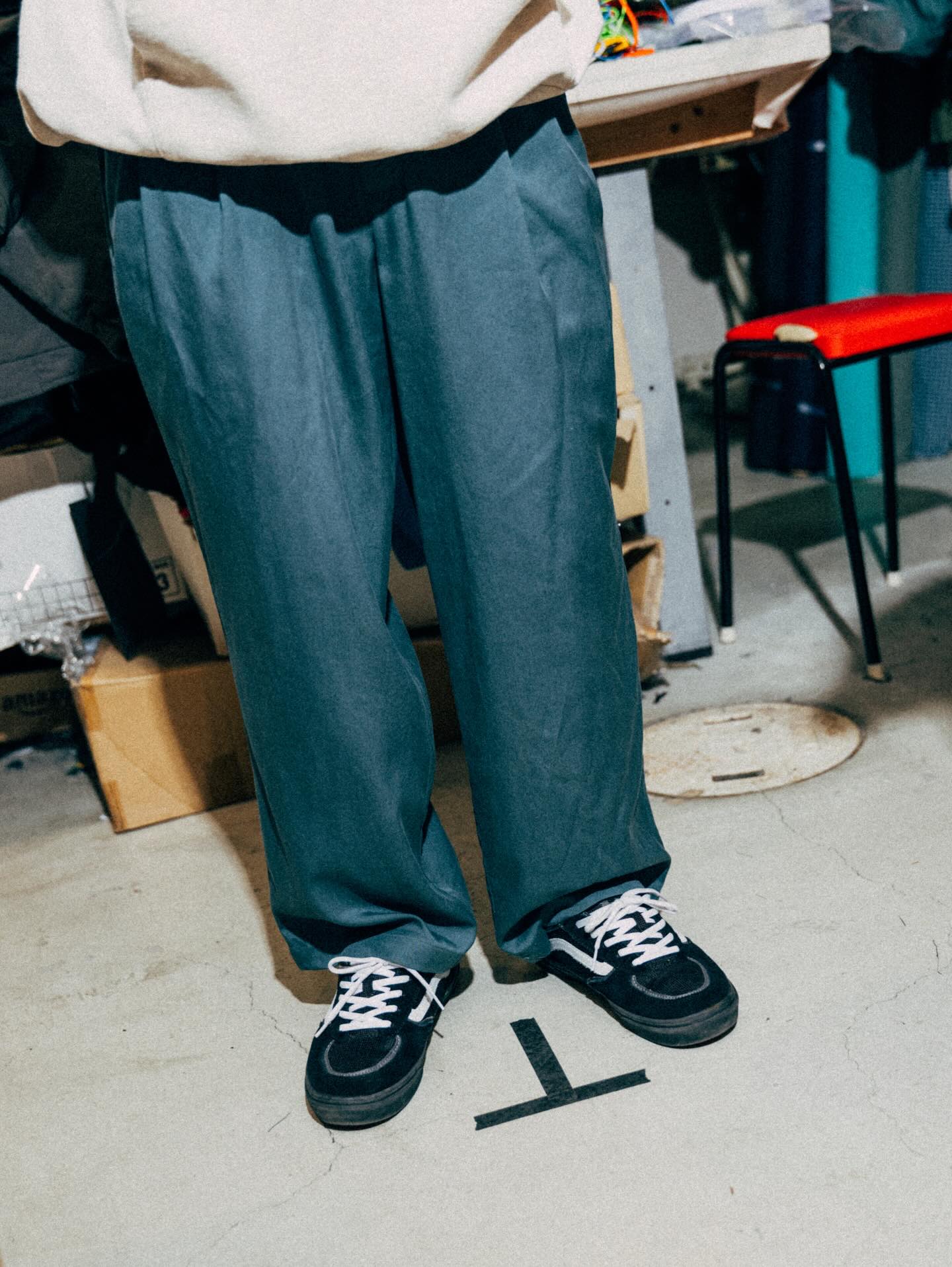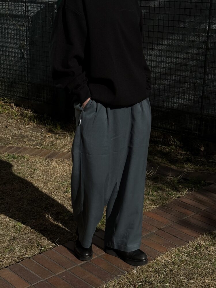 SQUEEZED DESIGN では定番となっている2タックのワイドパンツです。2タック入りの太めのシルエットとウエストの後ろ部分にゴム入りのためベルト無しでも履ける快適な仕様です。テンセル×コットンのレーヨンライクな生地で独特なドレープ感のある2TUCK RAYON PANTSです。テンセル×コットンですのでご自宅での水洗いも可能でお手入れも楽です。