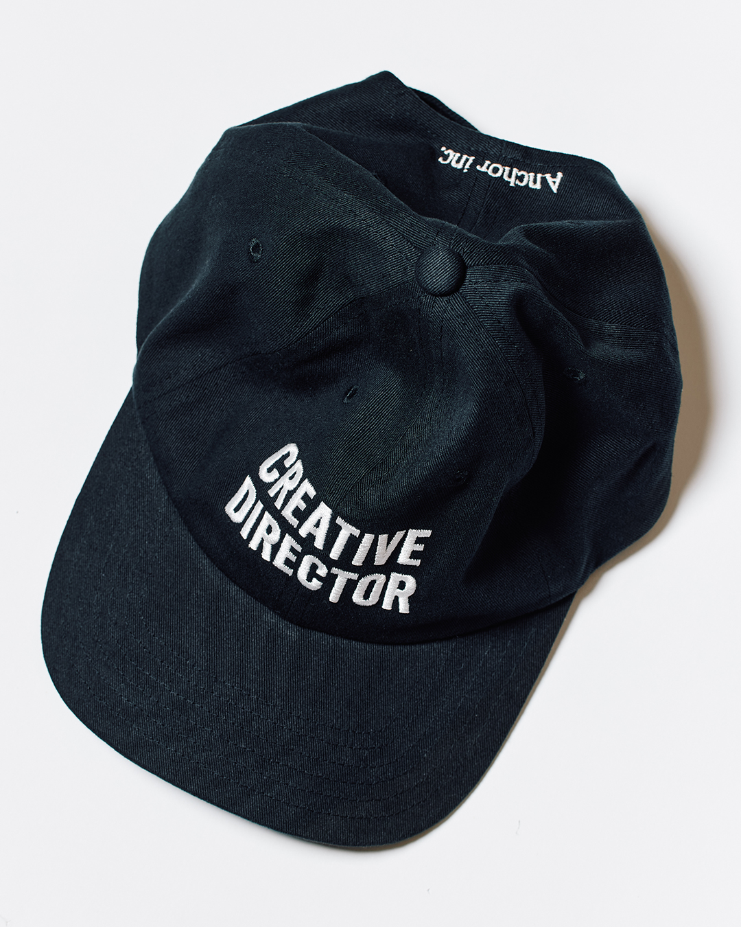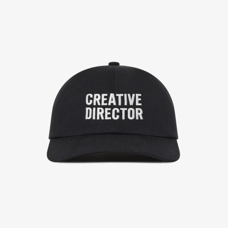 ”CREATIVE DIRECTOR®️”が刺繍されたオリジナル6パ ネルキャップ。 素材にはコットンを使用。