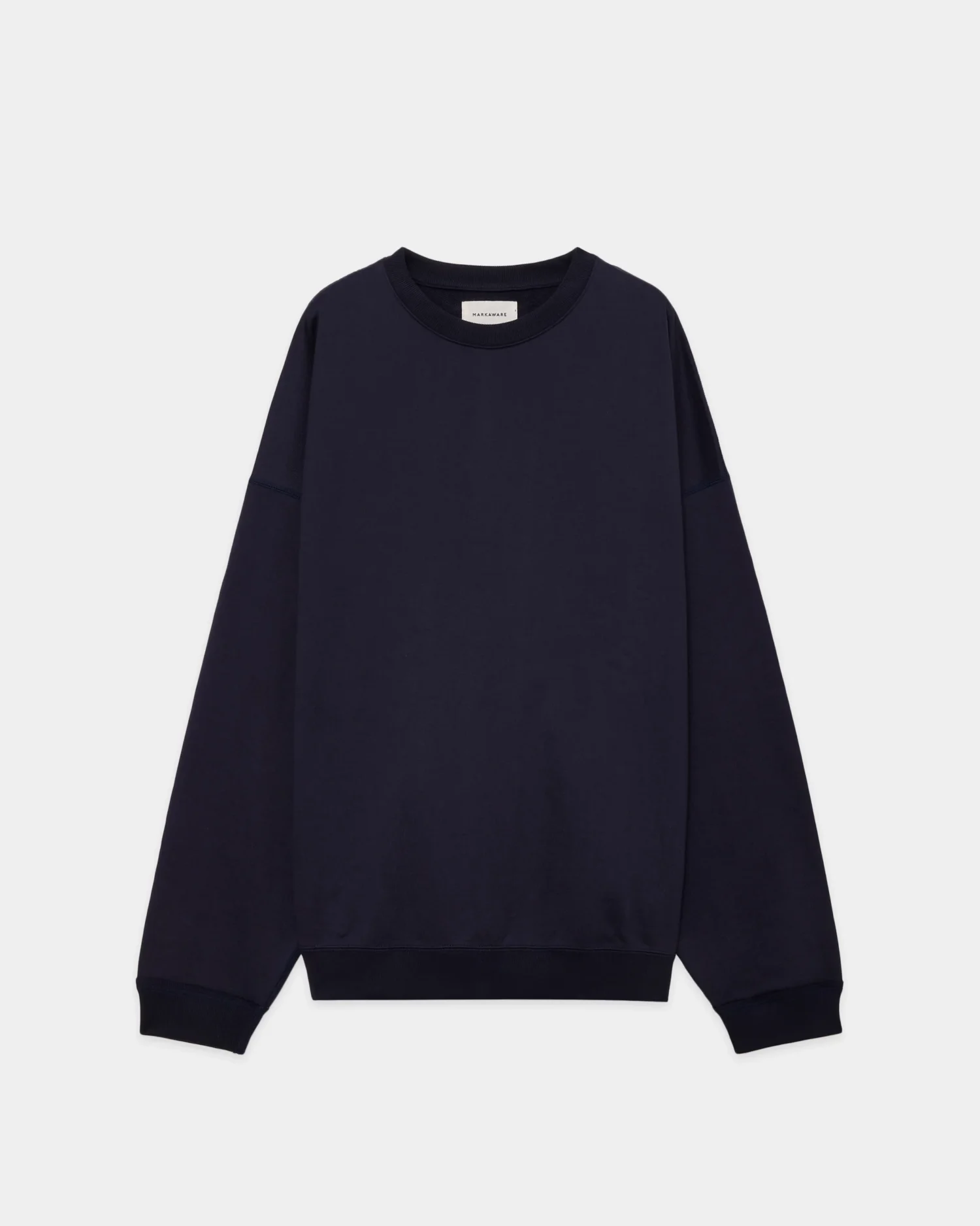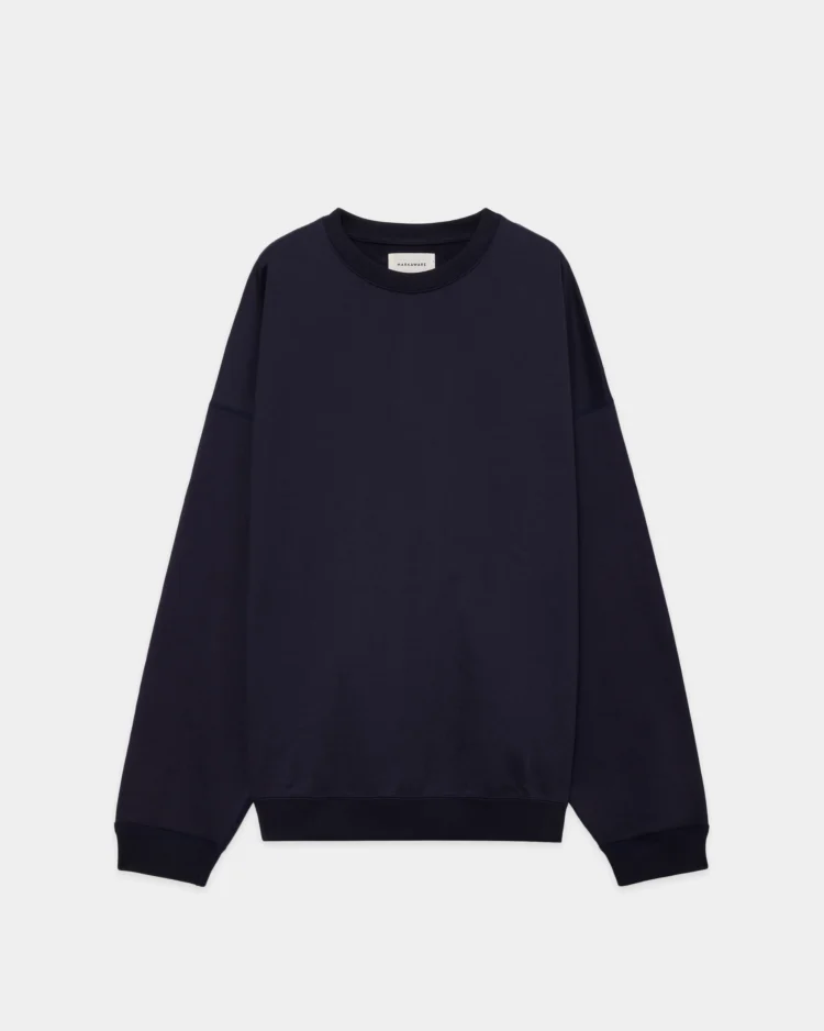 ベーシックなクルーネックスウェットを、自然に肩が落ちるシルエットかつ、360度どこから見ても美しいフォルムに再構築。