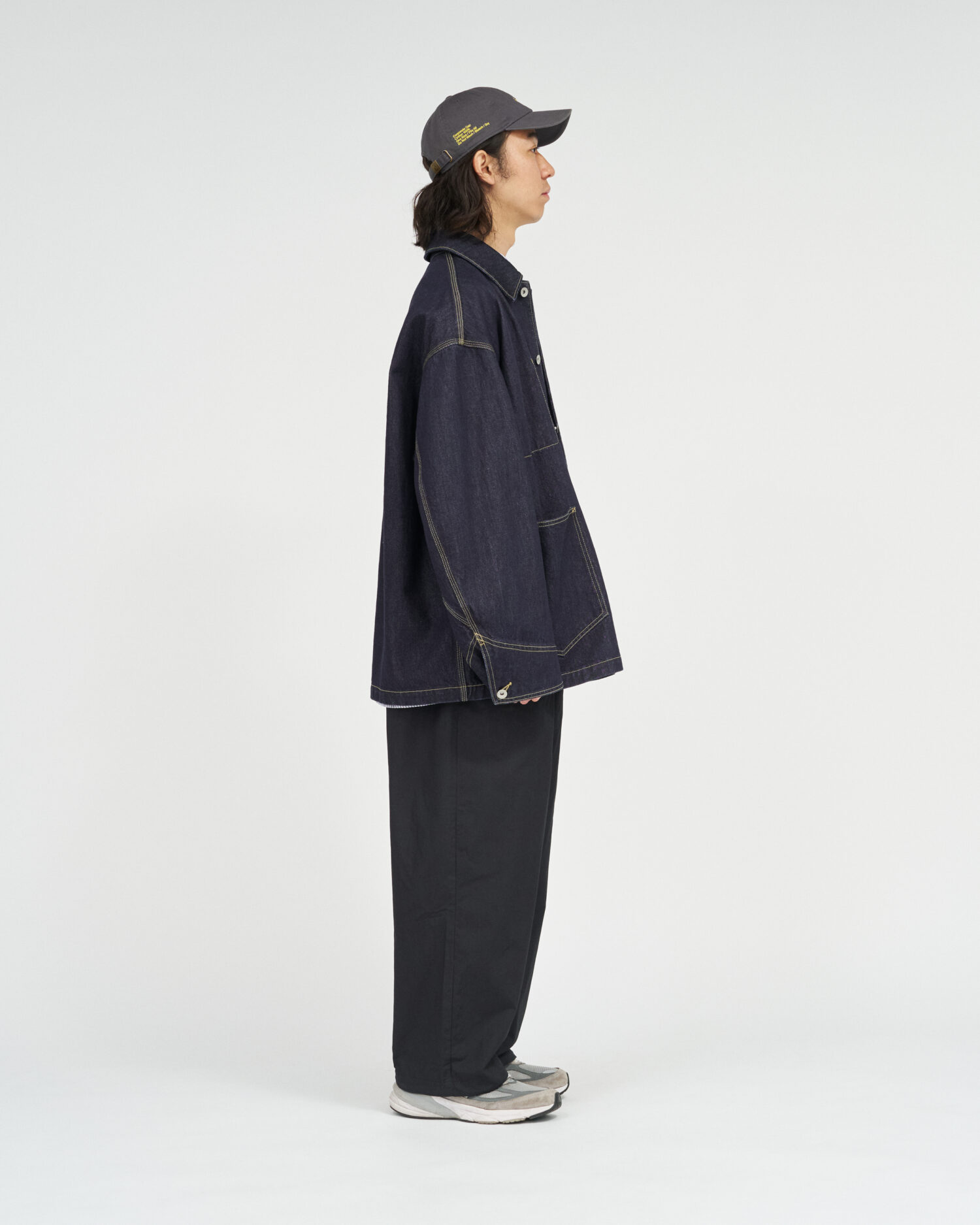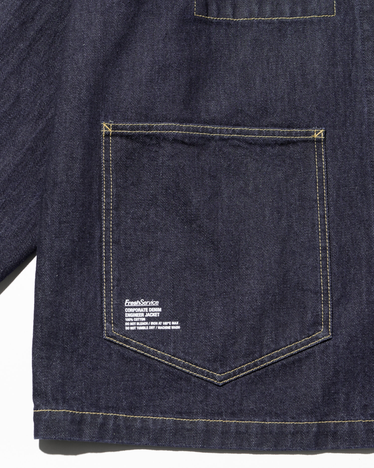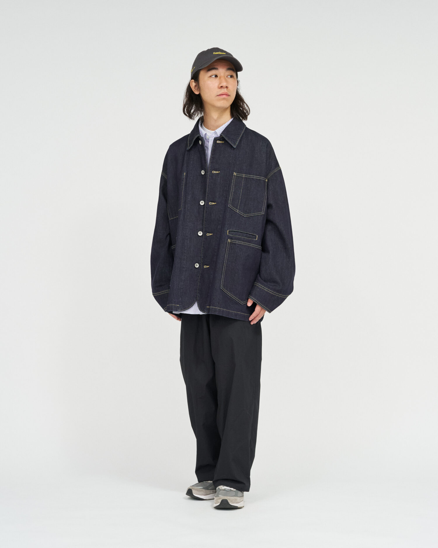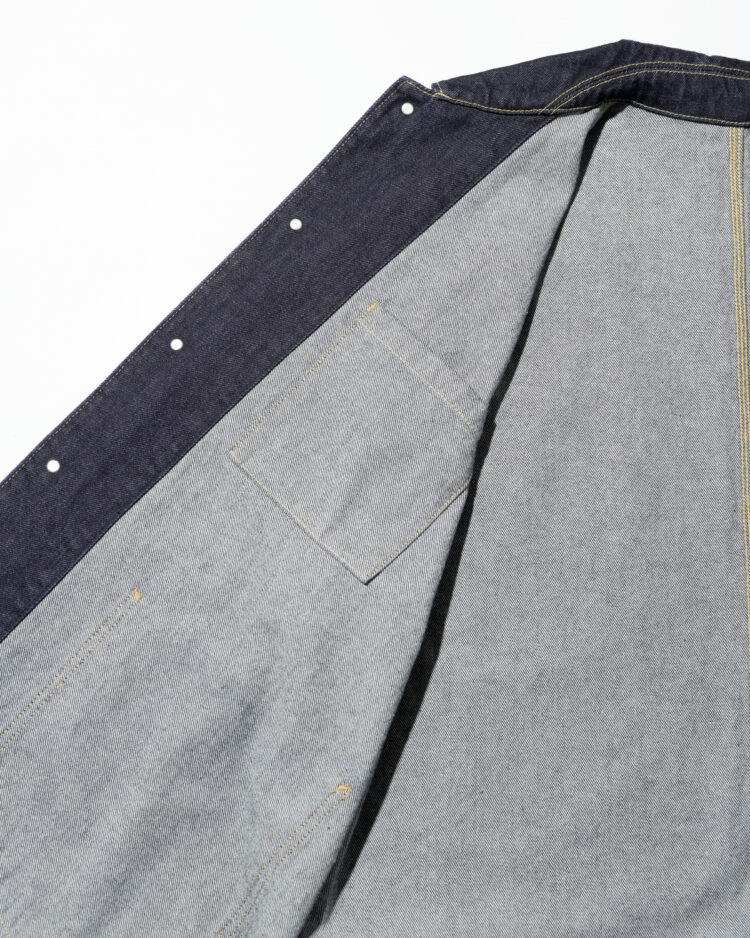生地には穿き込むほどに表情を深める13.5ozのヘビーオンスデニムを採用。新作のエンジニアジャケットは、FreshServieらしいゆったりとしたドロップショルダーのシルエットで、往年のワークジャケットをベースに、スマートフォン用のポケットなど現代的なディテールをプラスしました。同素材で展開されるCORPORATE DENIM FIVE POCKET PANTSやCORPORATE DENIM とのセットアップもおすすめです。