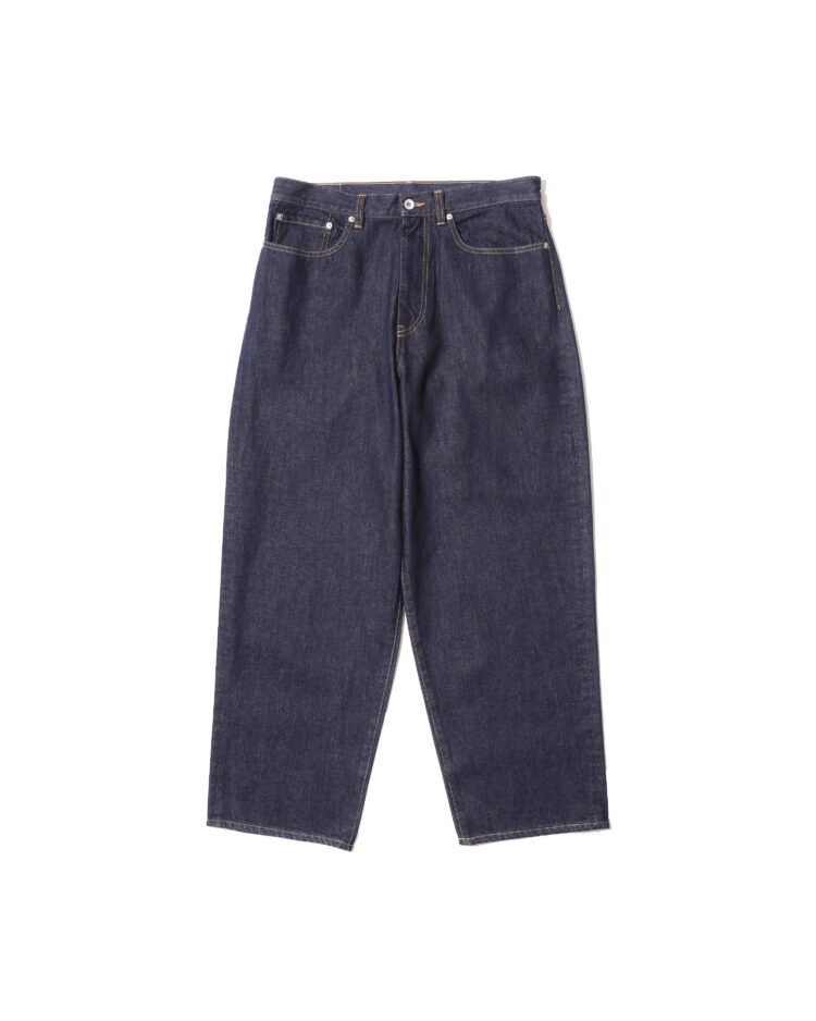 生地には穿き込むほどに表情を深める13.5ozのヘビーオンスデニムを採用。スタンダードなファイブポケットジーンズは、腰まわりにボリュームを持たせ、裾に向かって緩やかにテーパードしたワイドシルエットが特徴。同素材のCORPORATE DENIM ENGINEER JACKETとのセットアップもおすすめです。