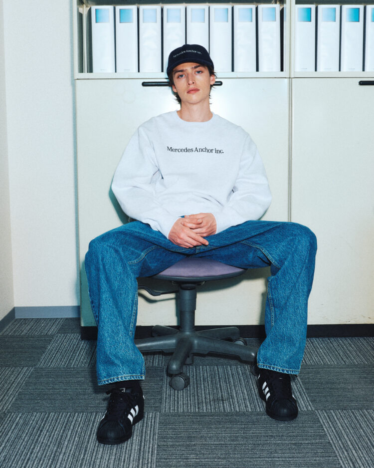 横組のロゴがフロントにプリントされた クルーネックスウェット。 ボディはオリジナルの12.5ozの起毛無しの生地を使用。 ※通販ご希望の方はメール、もしくはインスタグラムDMにてお問合せ下さい。