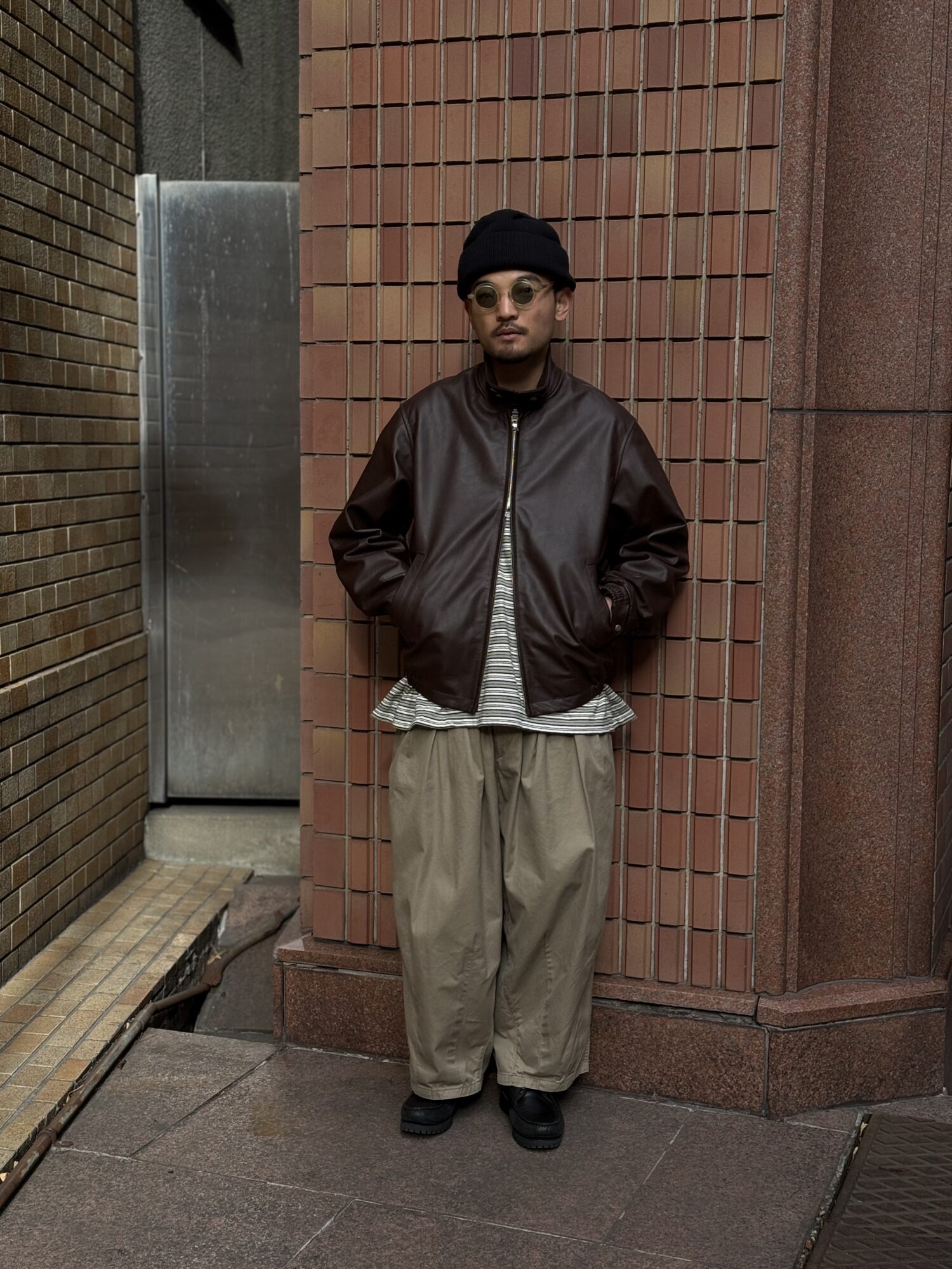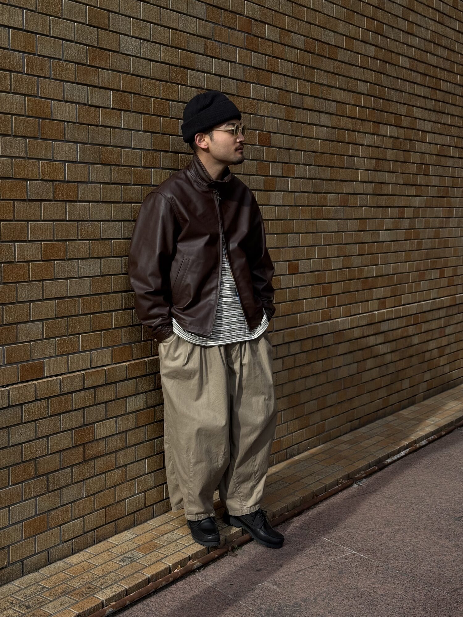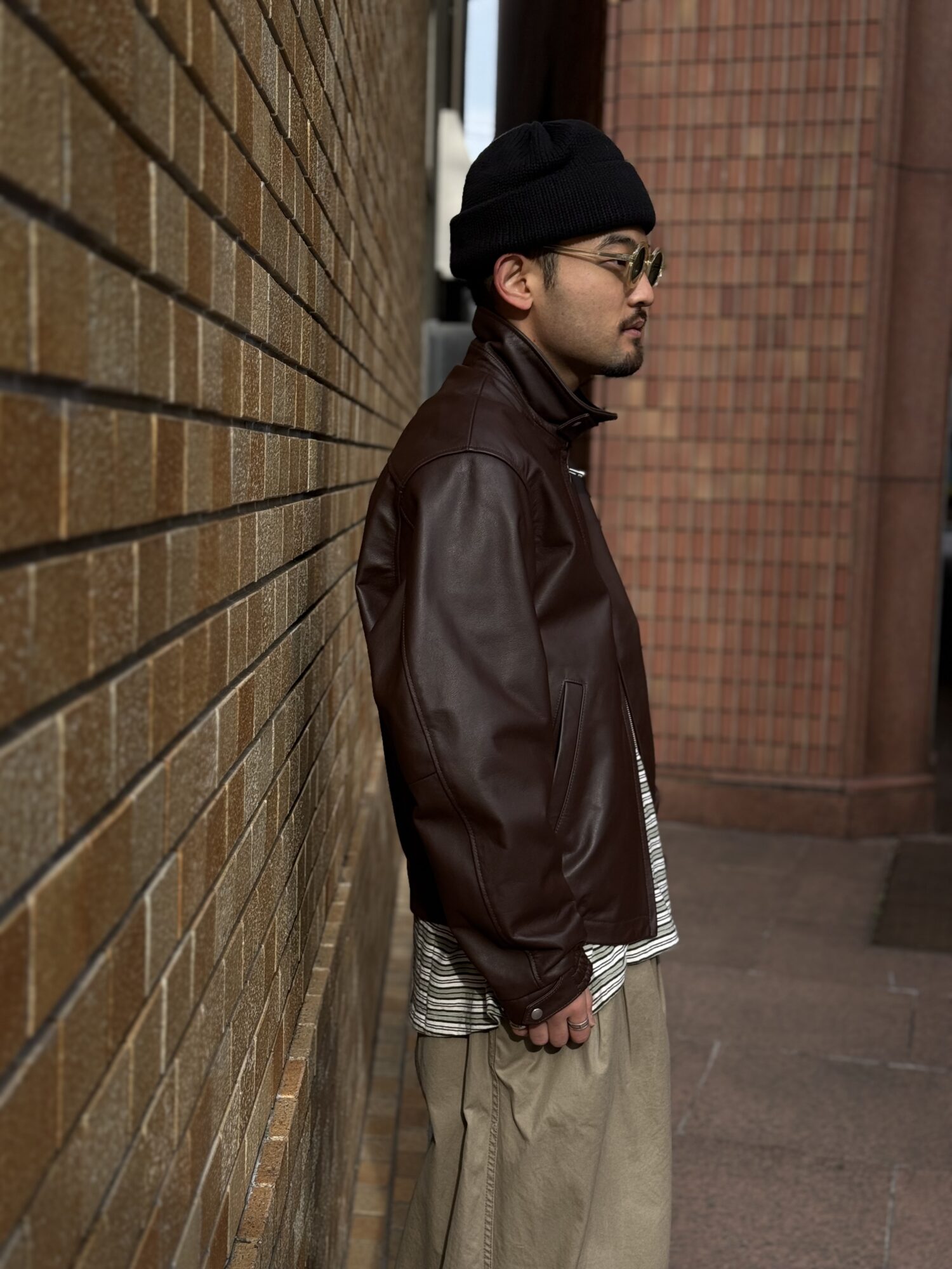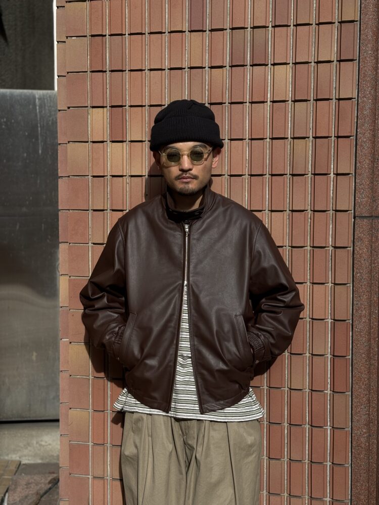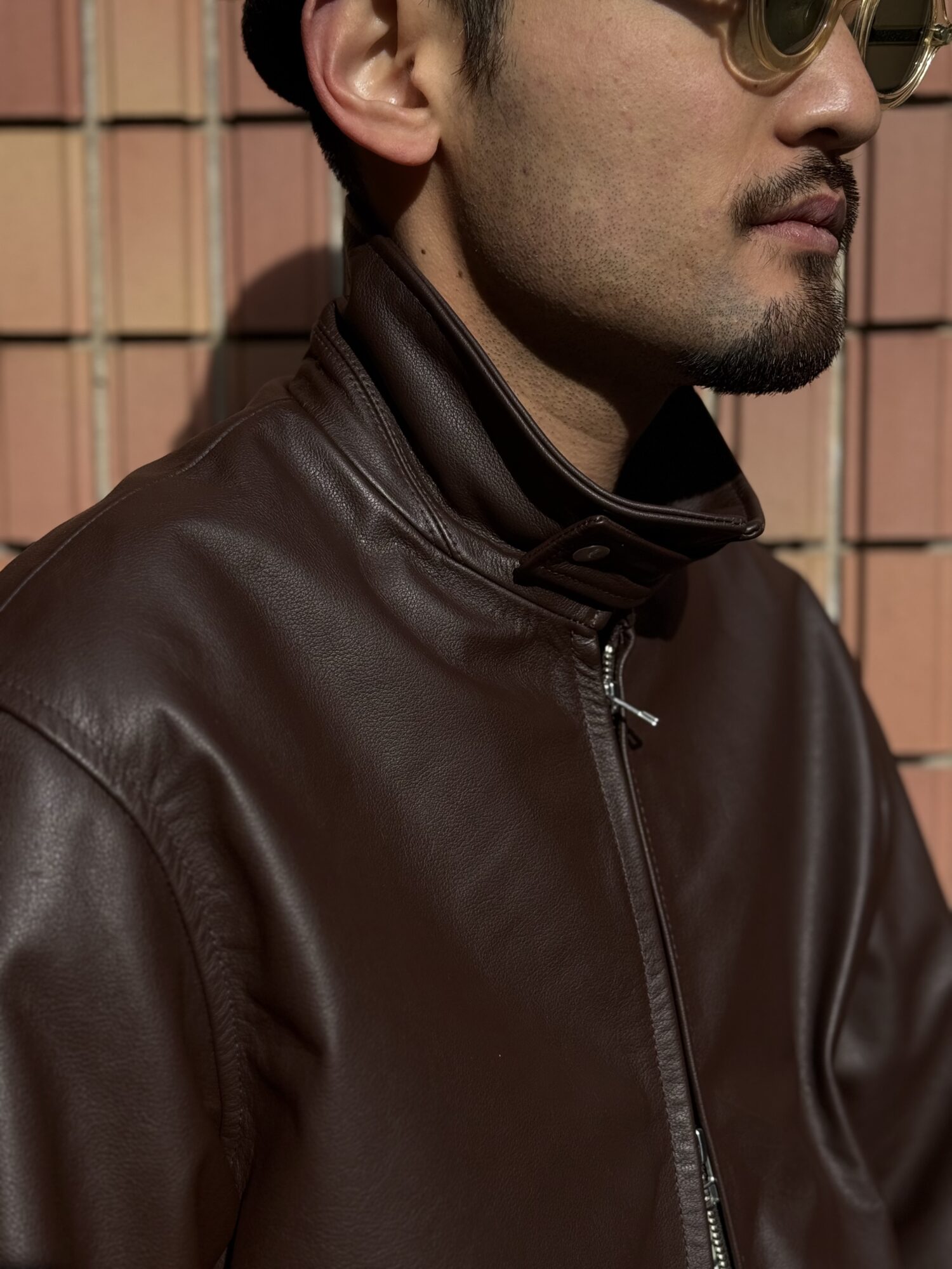 柔らかい牛革のナッパレザーを使用したドリズラーブルゾン。 デザインを一新し、よりドリズラーぽく仕上げました。 取り外し可能なチンストラップをつけており、チンストラップは内側に収納できるのでスタイリングの幅があります。