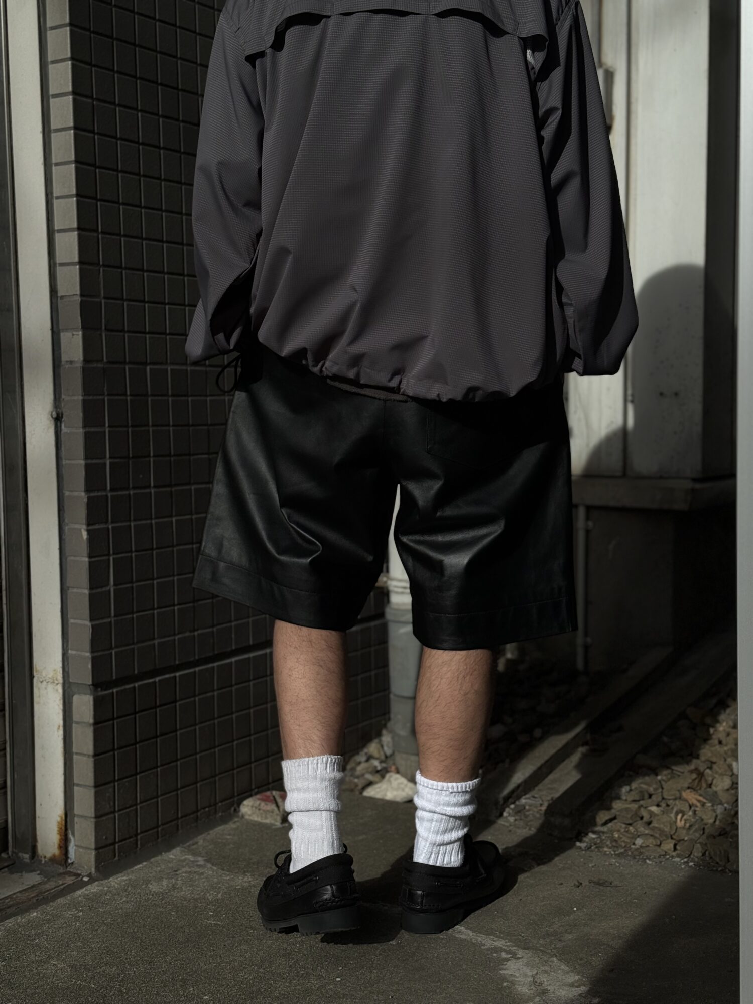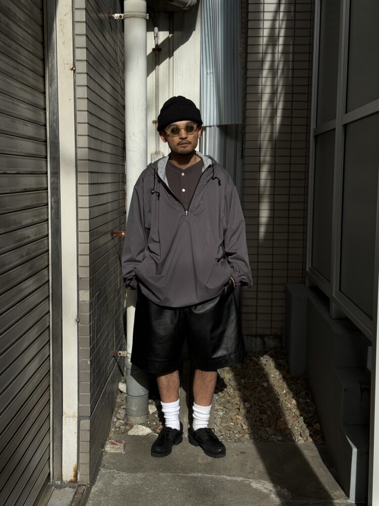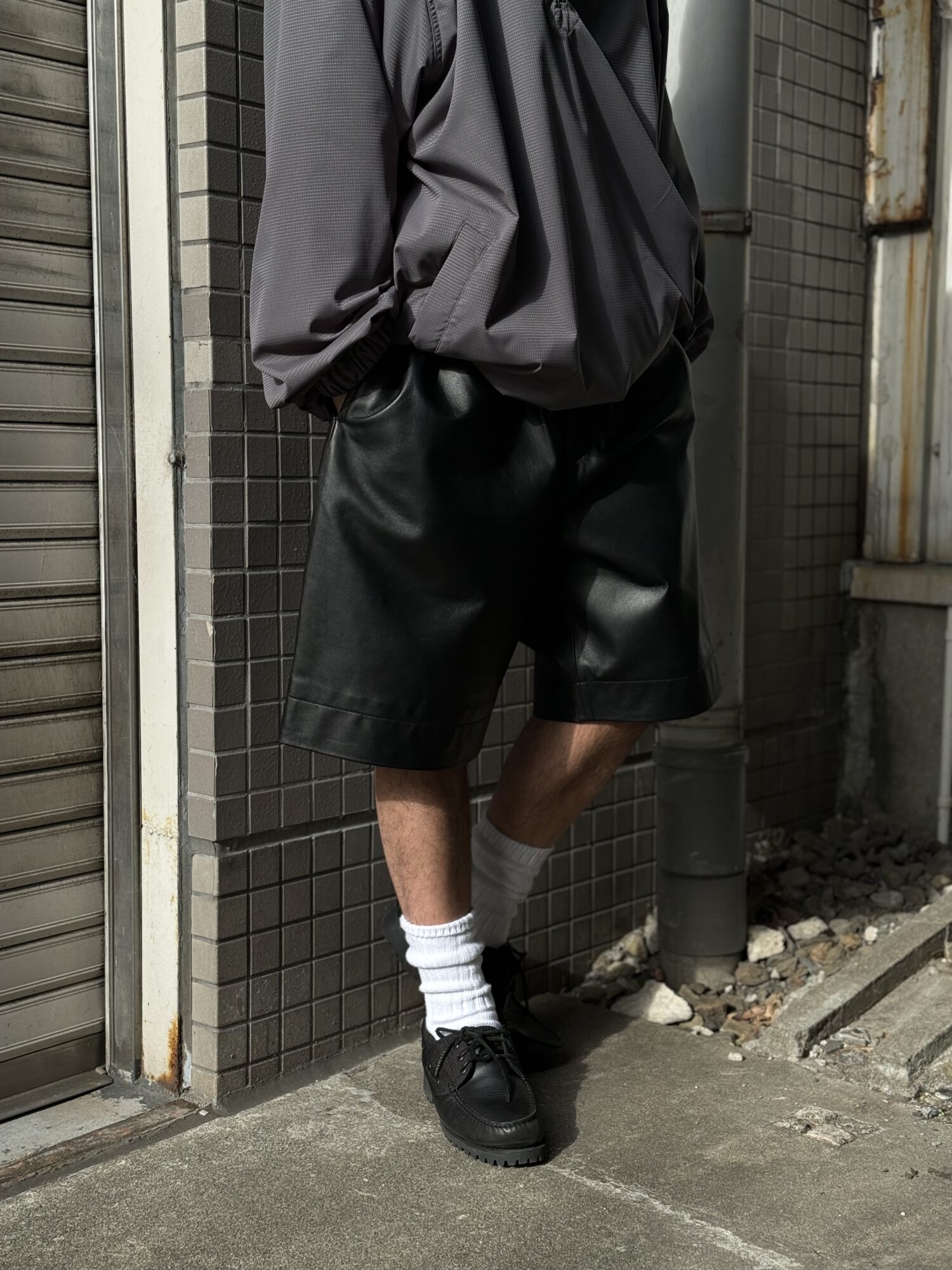 改良を加えたレザーショーツ。