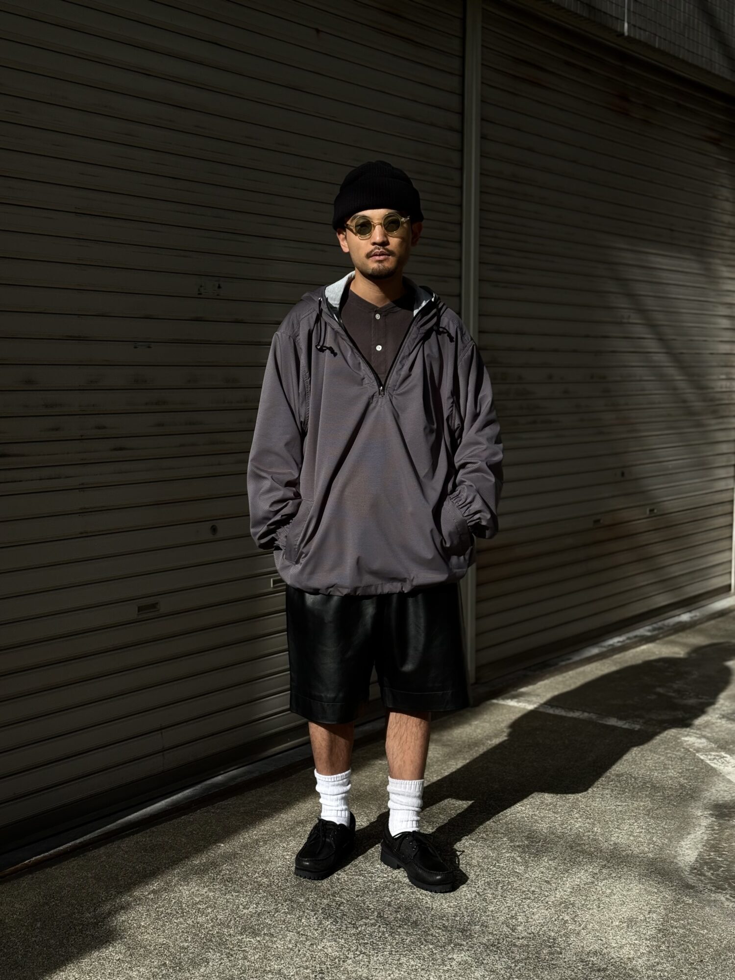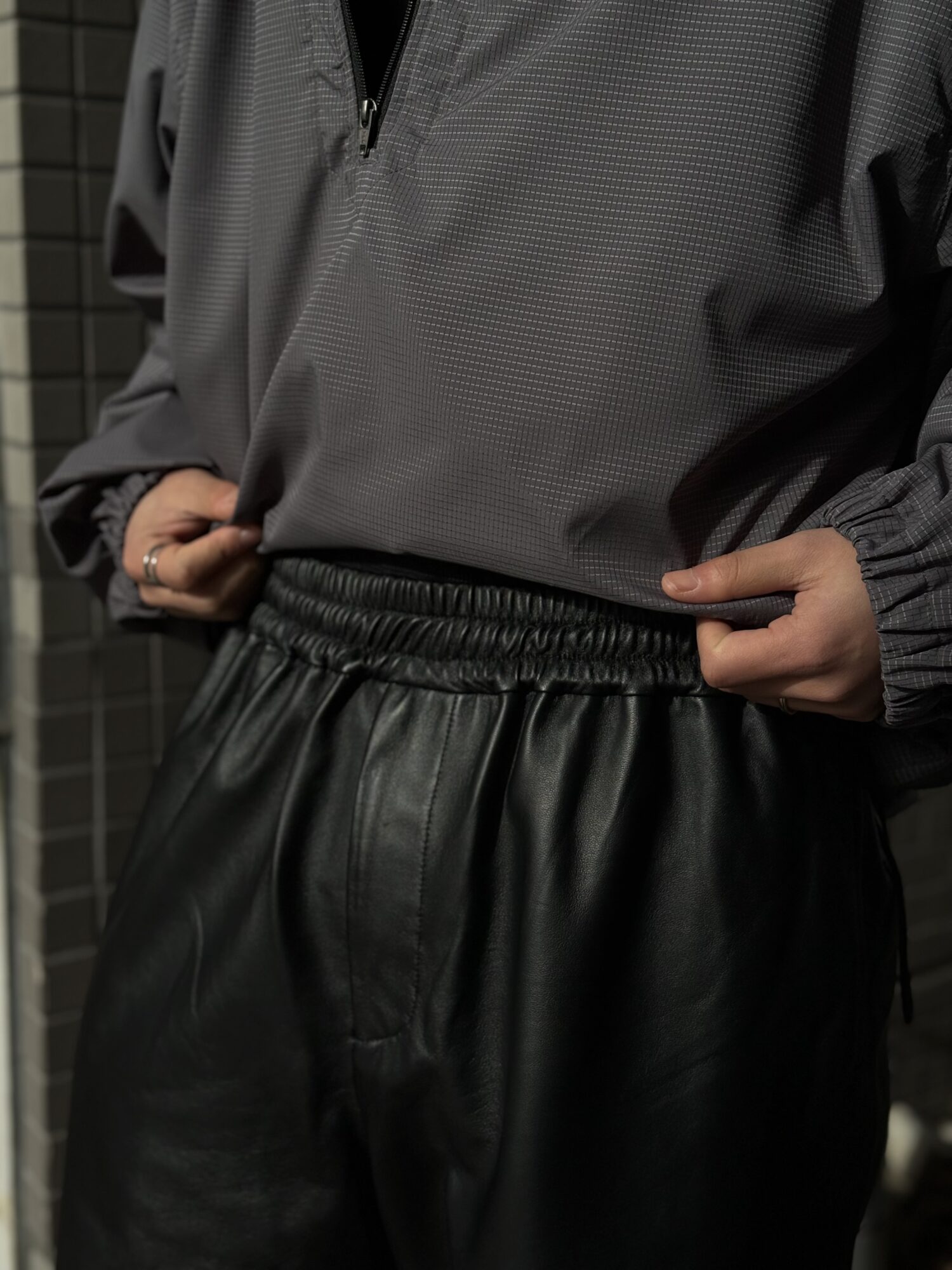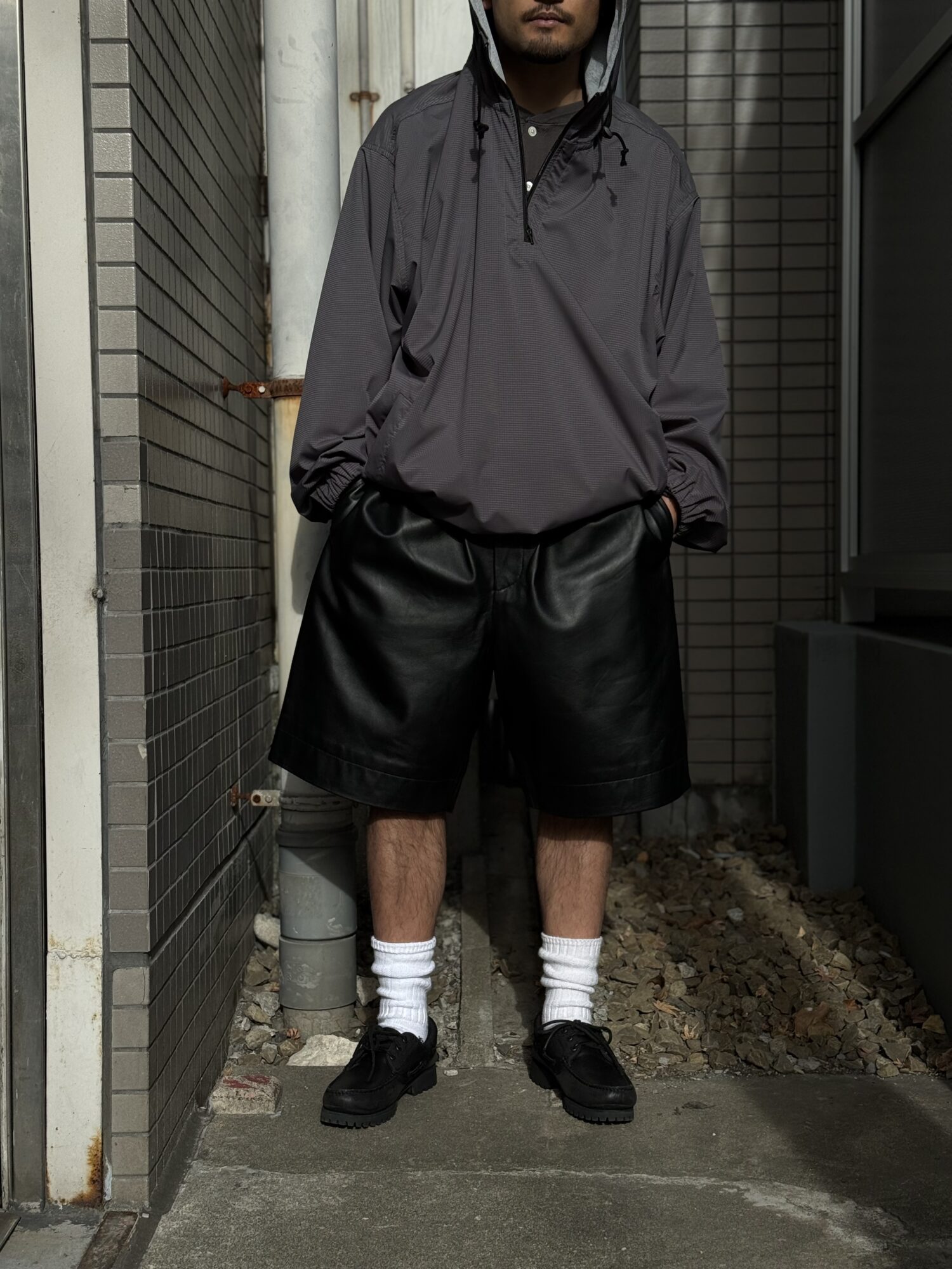 改良を加えたレザーショーツ。