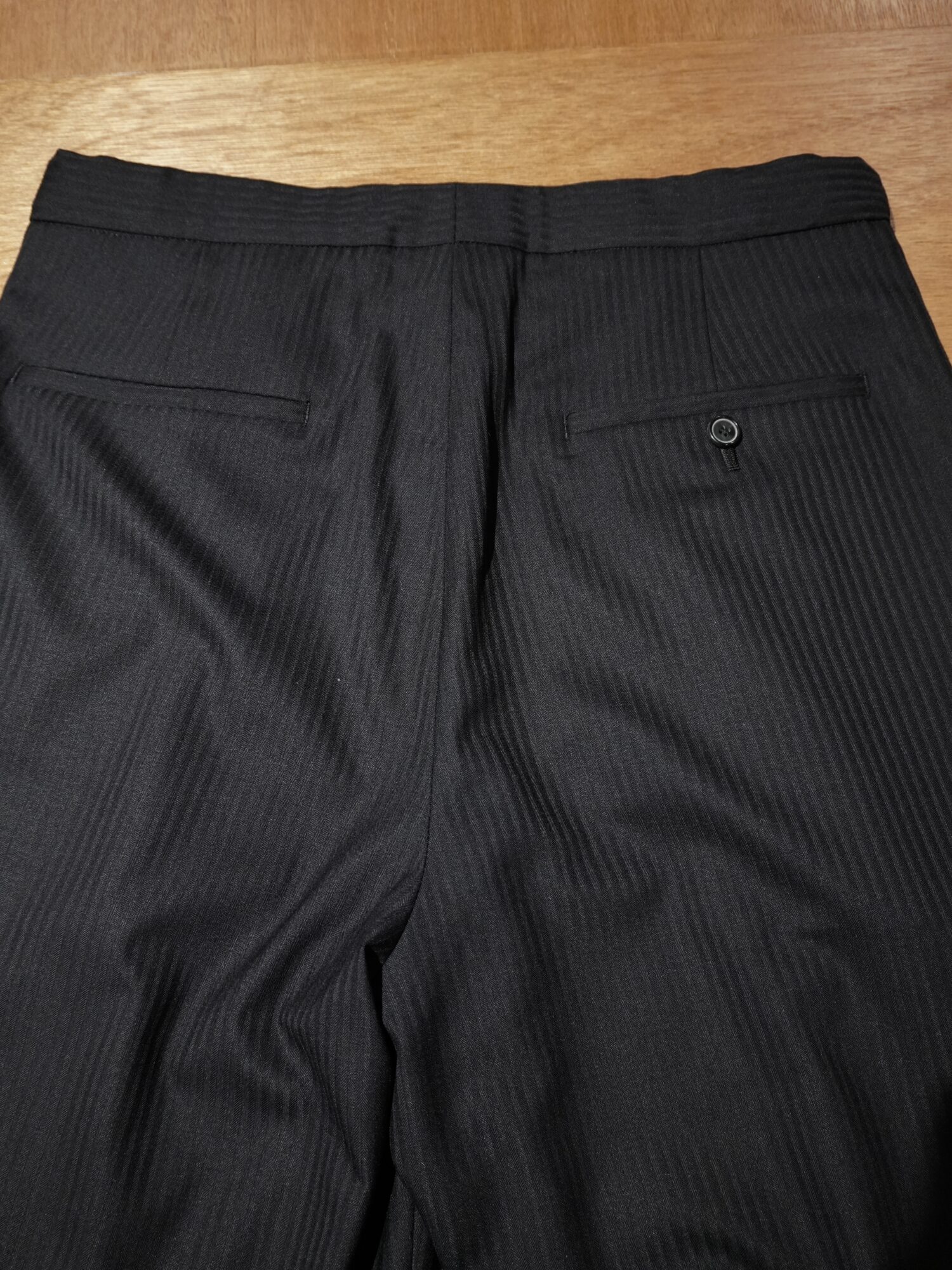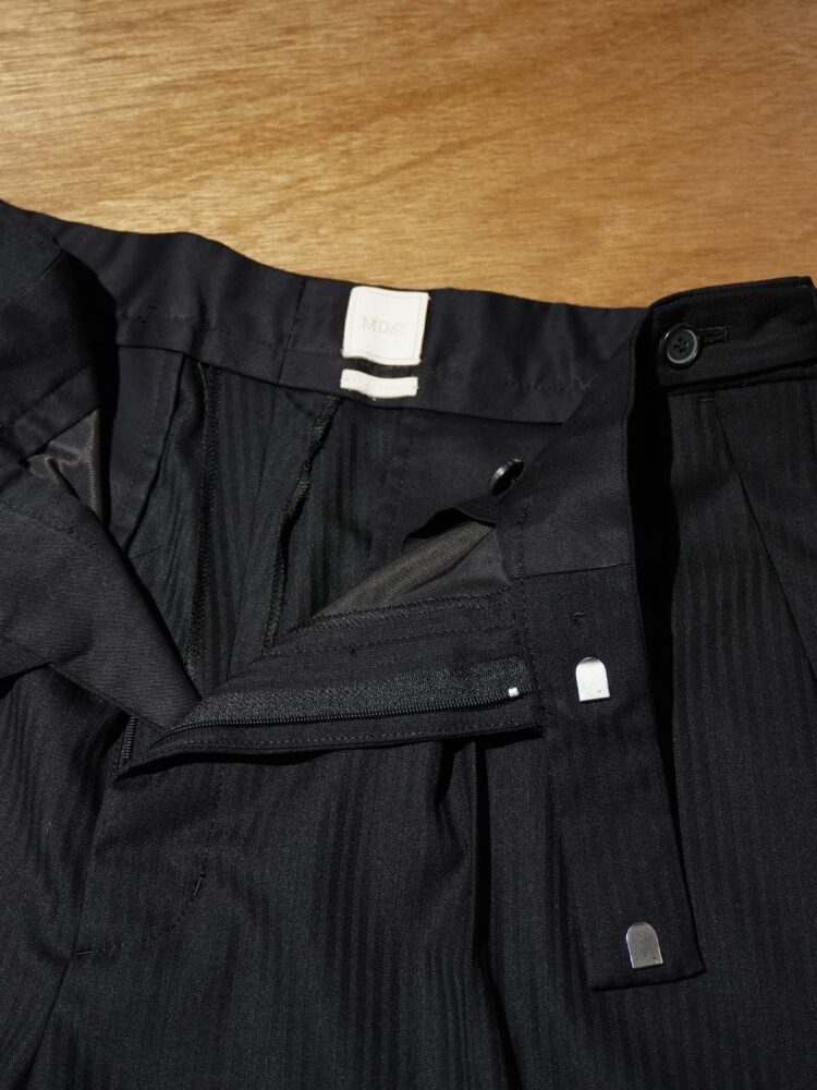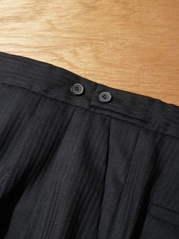 ウール・ポリエステル・シルク混のオリジナル生地を使用したスラックス。