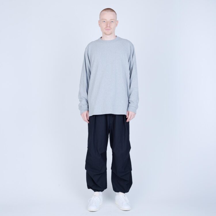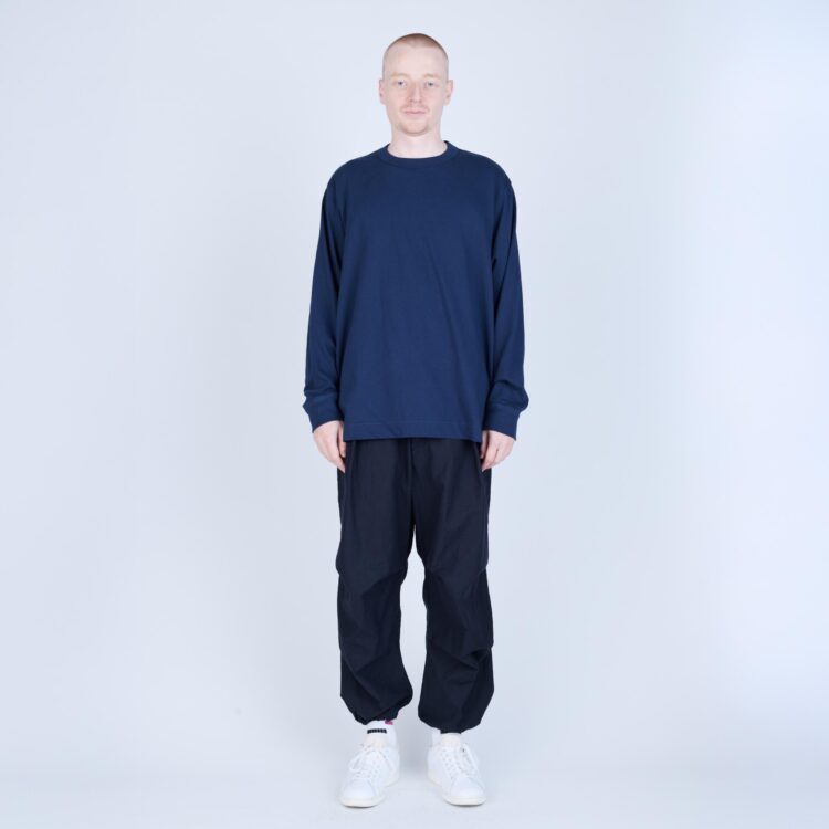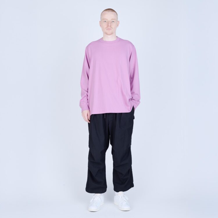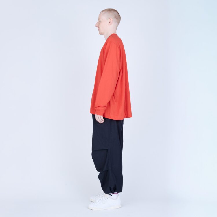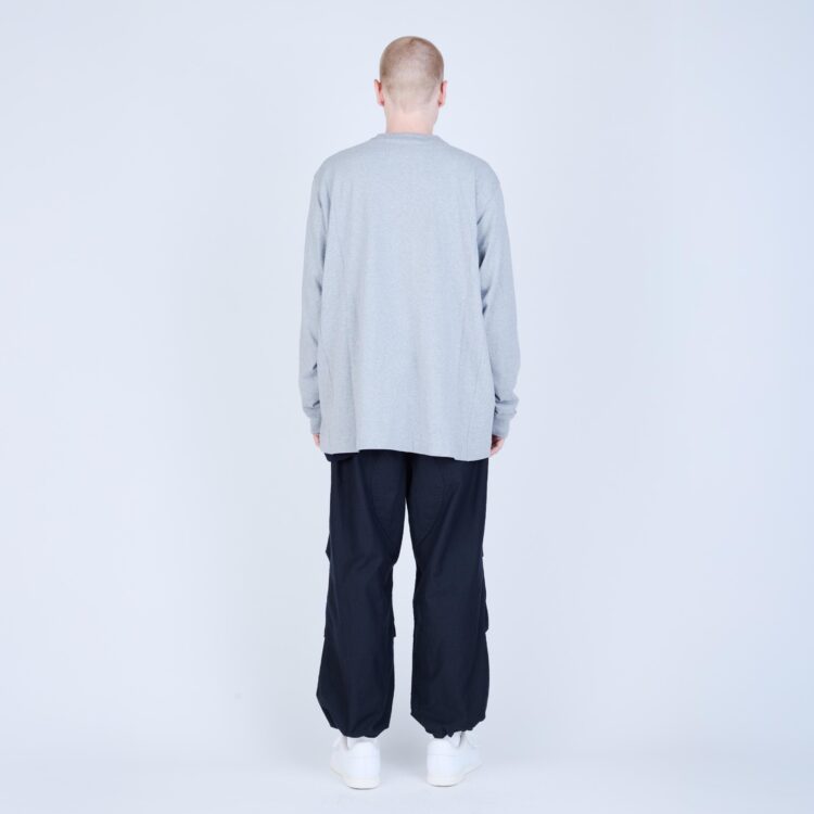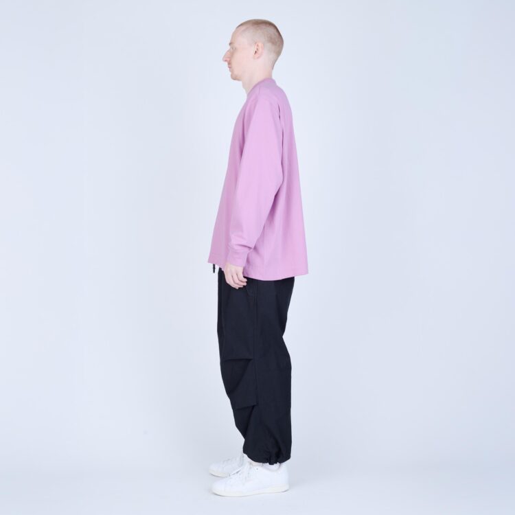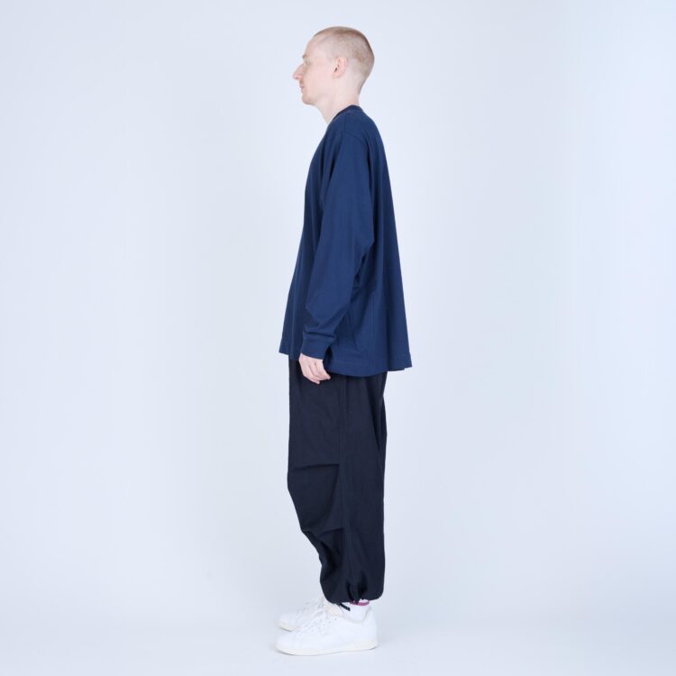 しなやかさと程よいコシを併せ持つ天竺素材で仕立てた、L/S Tシャツ。無駄を削ぎ落としたミニマルなデザインながら、袖を前振りで配するなど、立体的なパターン設計により身体に自然と馴染む着用感を追求しました。