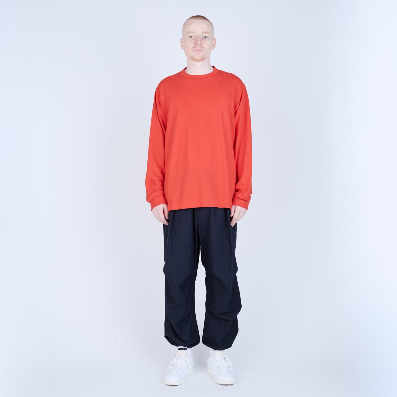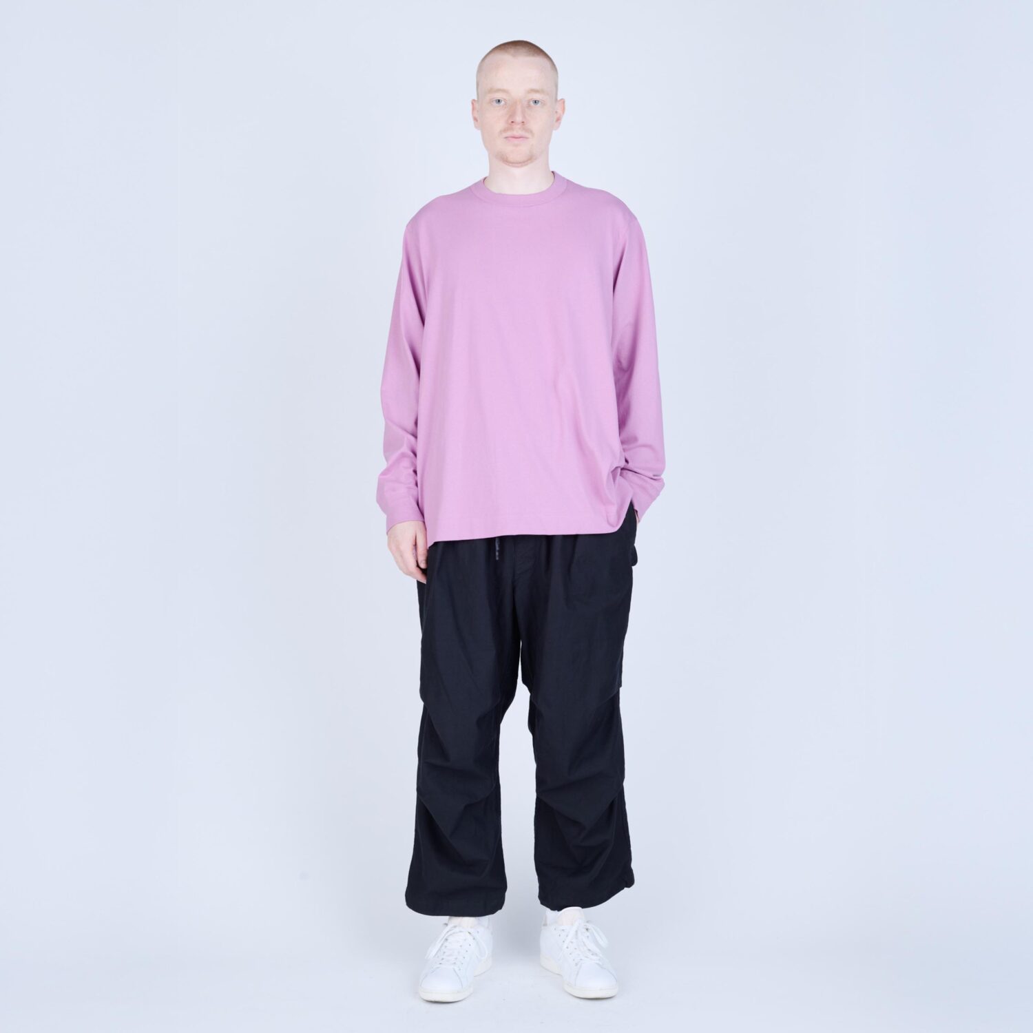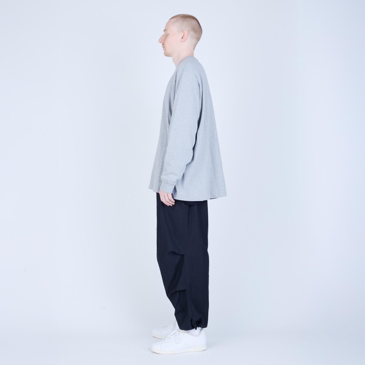 しなやかさと程よいコシを併せ持つ天竺素材で仕立てた、L/S Tシャツ。無駄を削ぎ落としたミニマルなデザインながら、袖を前振りで配するなど、立体的なパターン設計により身体に自然と馴染む着用感を追求しました。