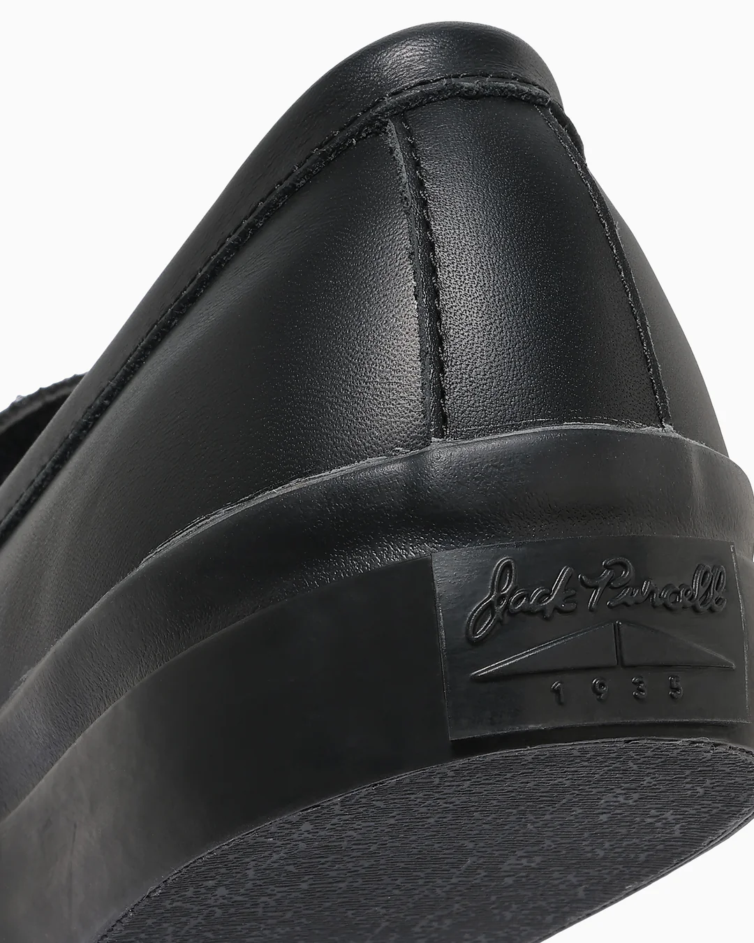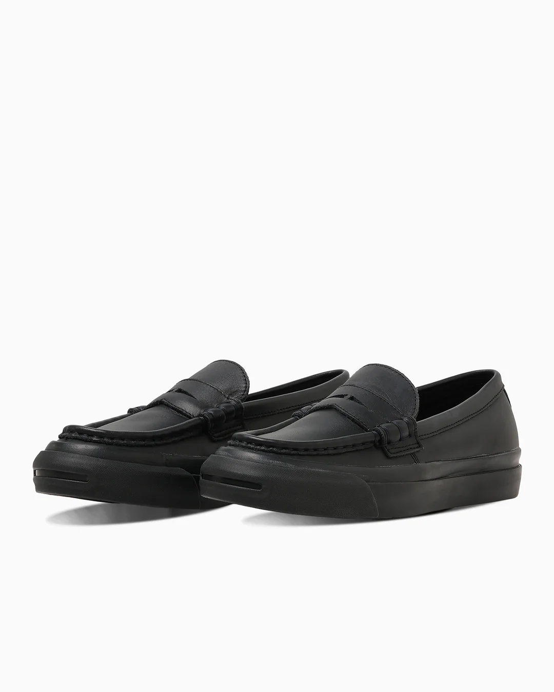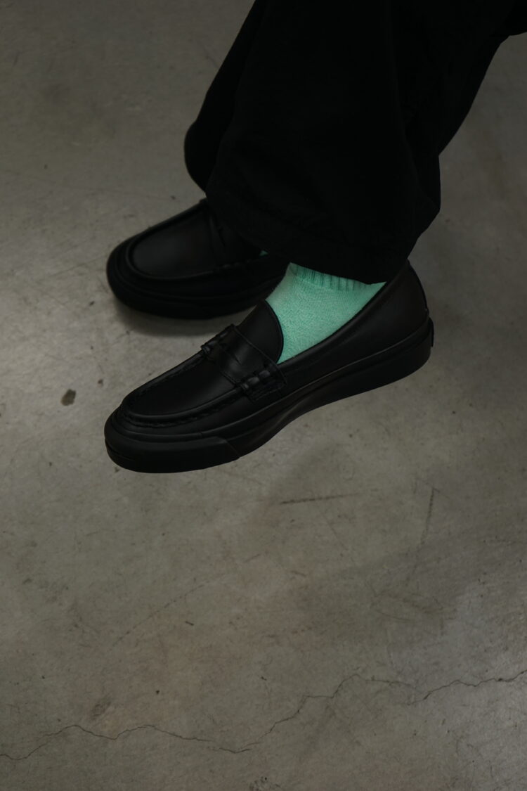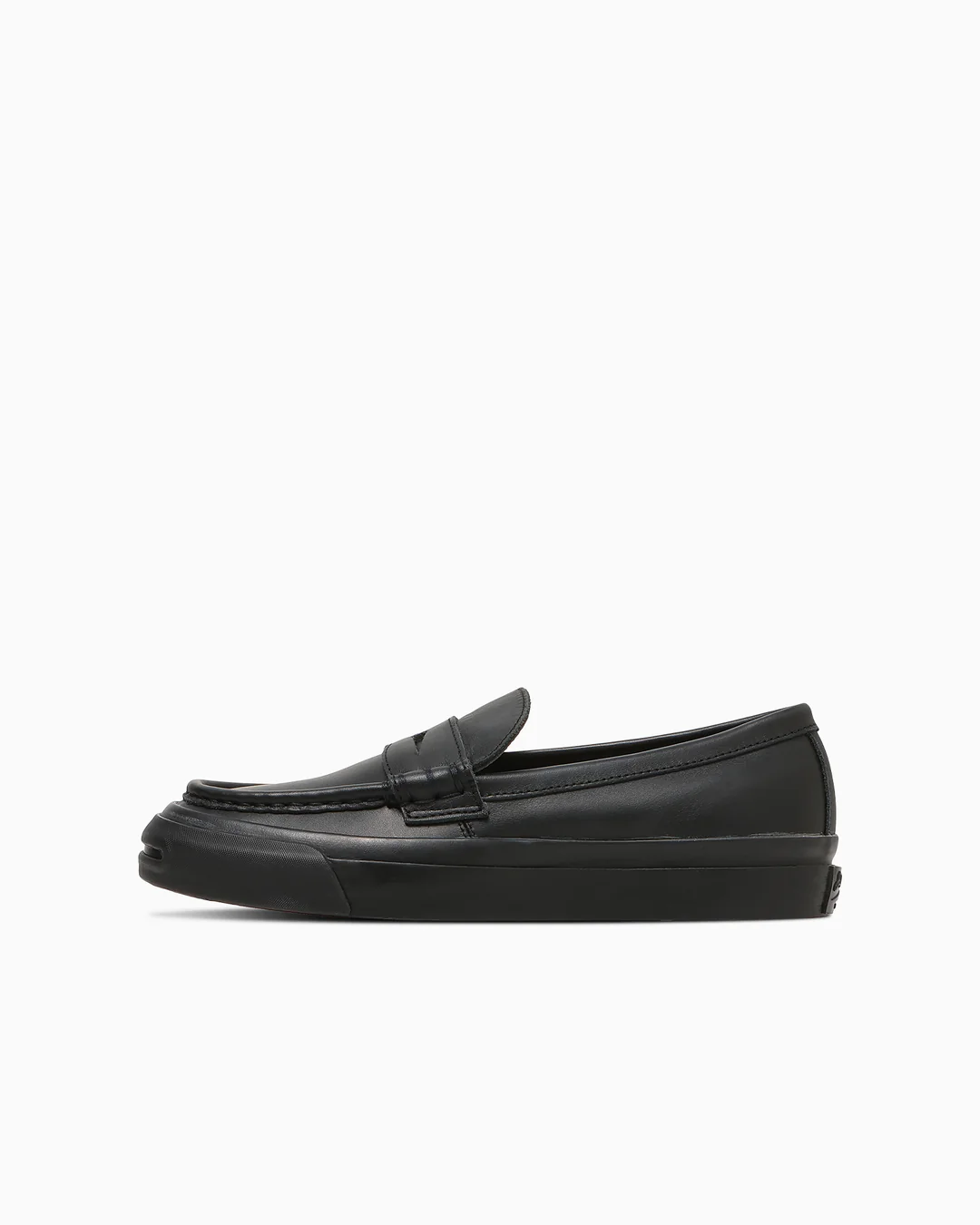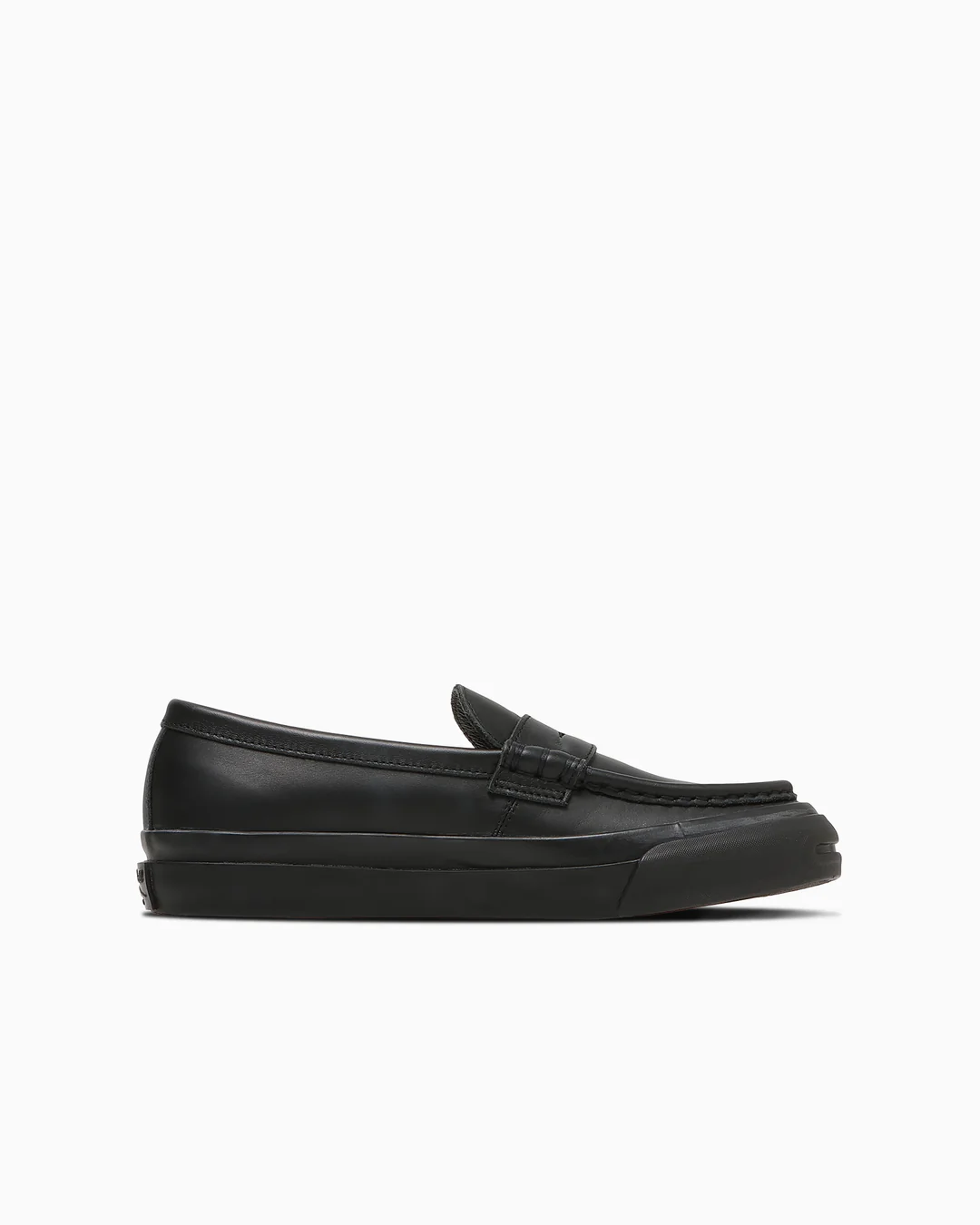 ローファーのデザインでありつつ、トウに「スマイル」、サドル部分に「ヒゲ」をあしらった、ジャックパーセルらしいアイコニックな一足。