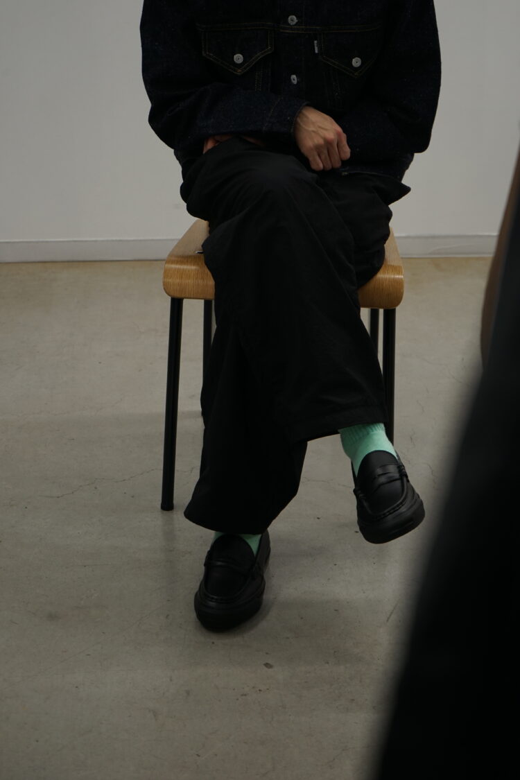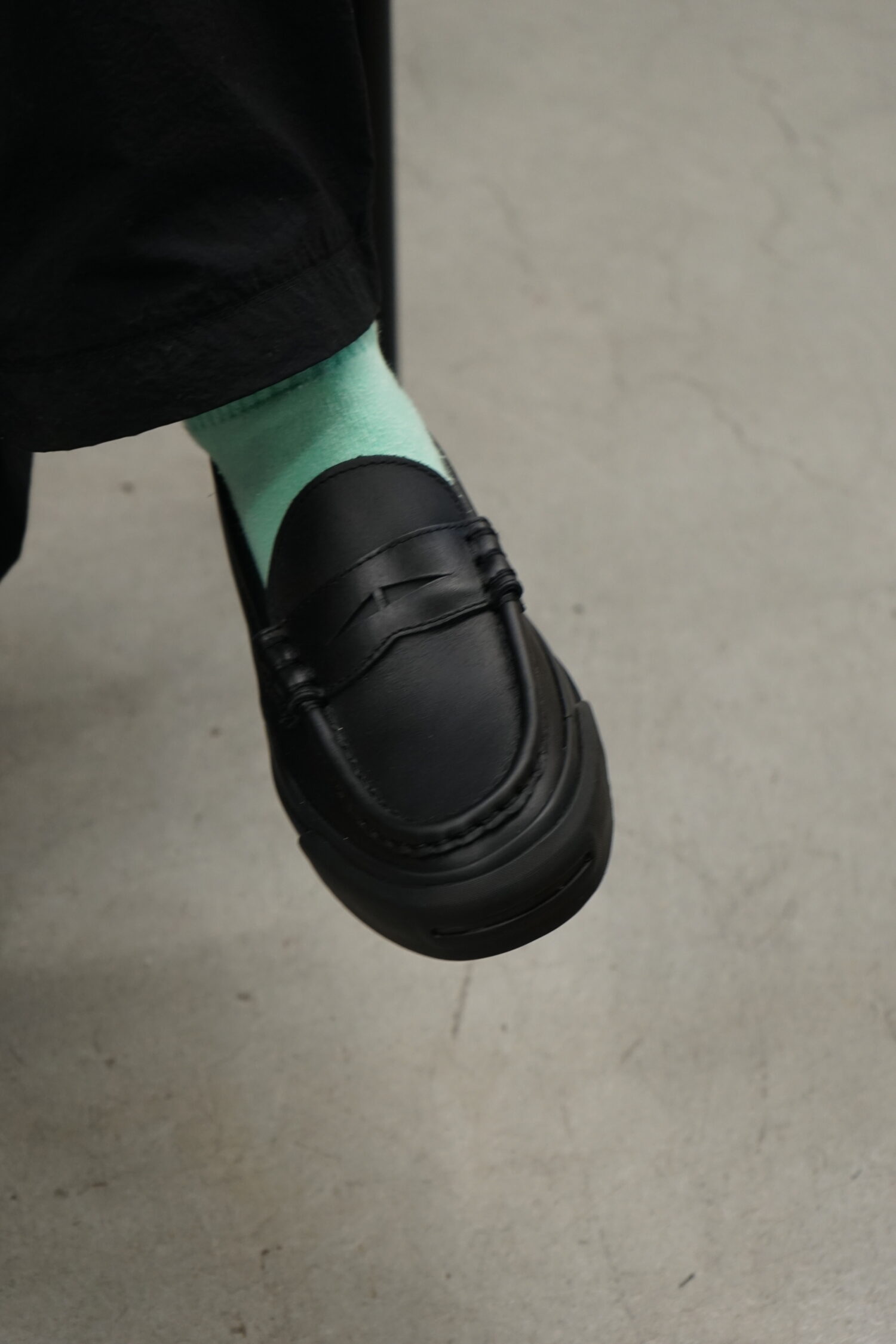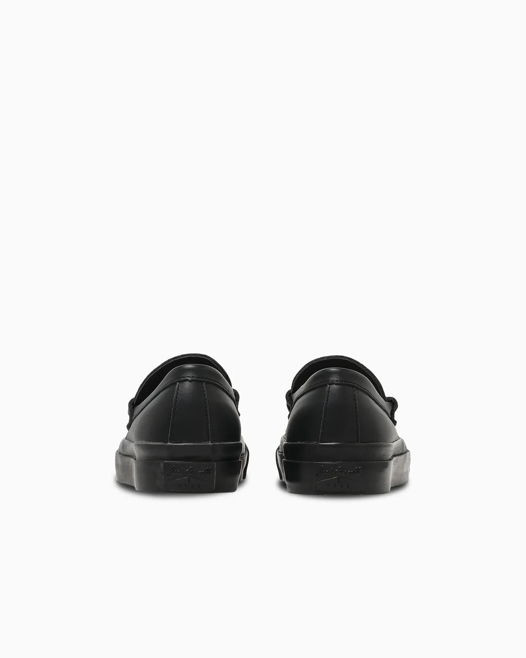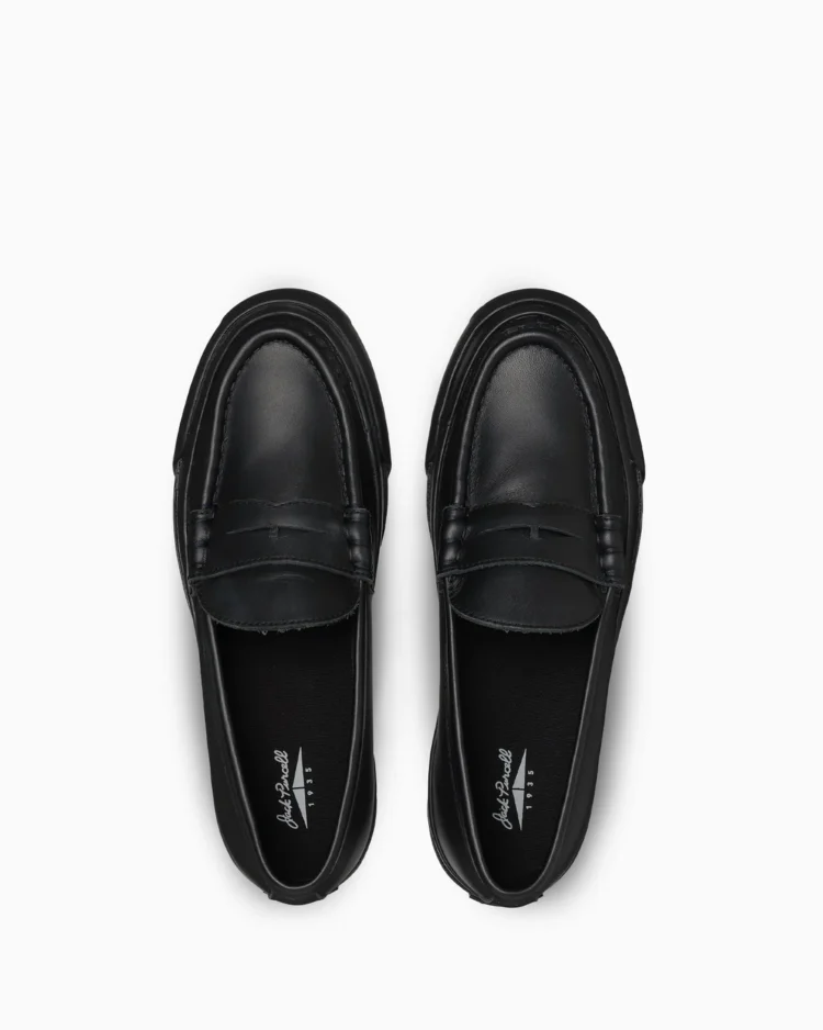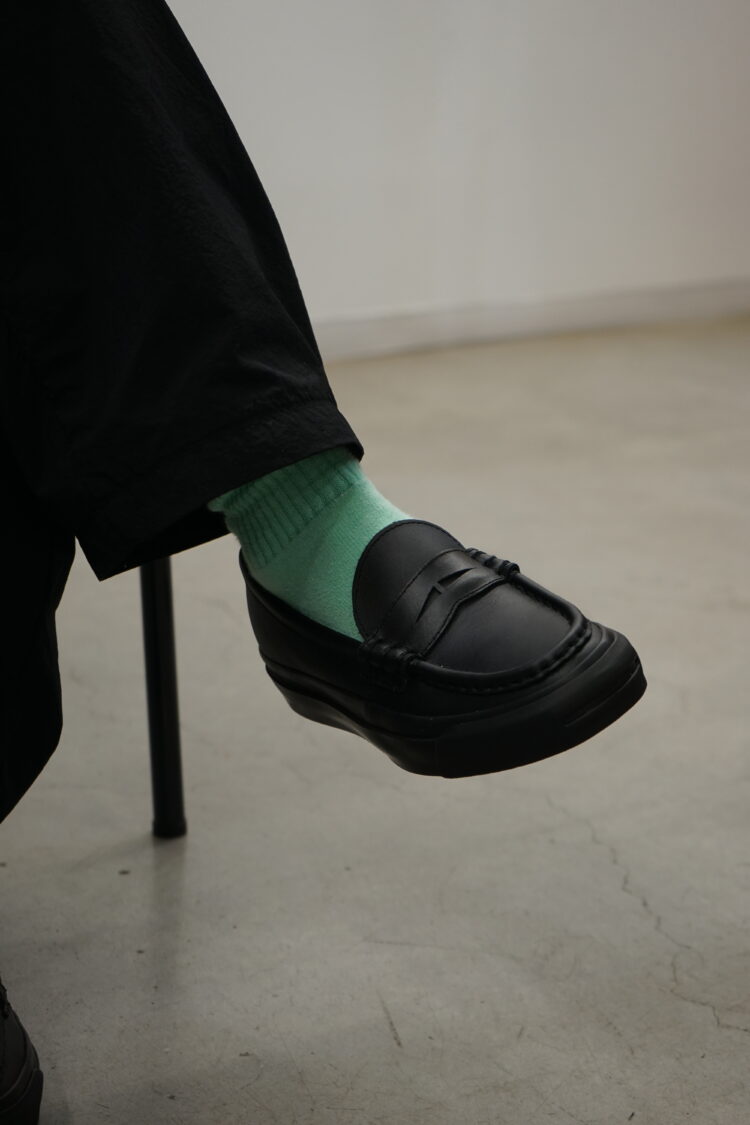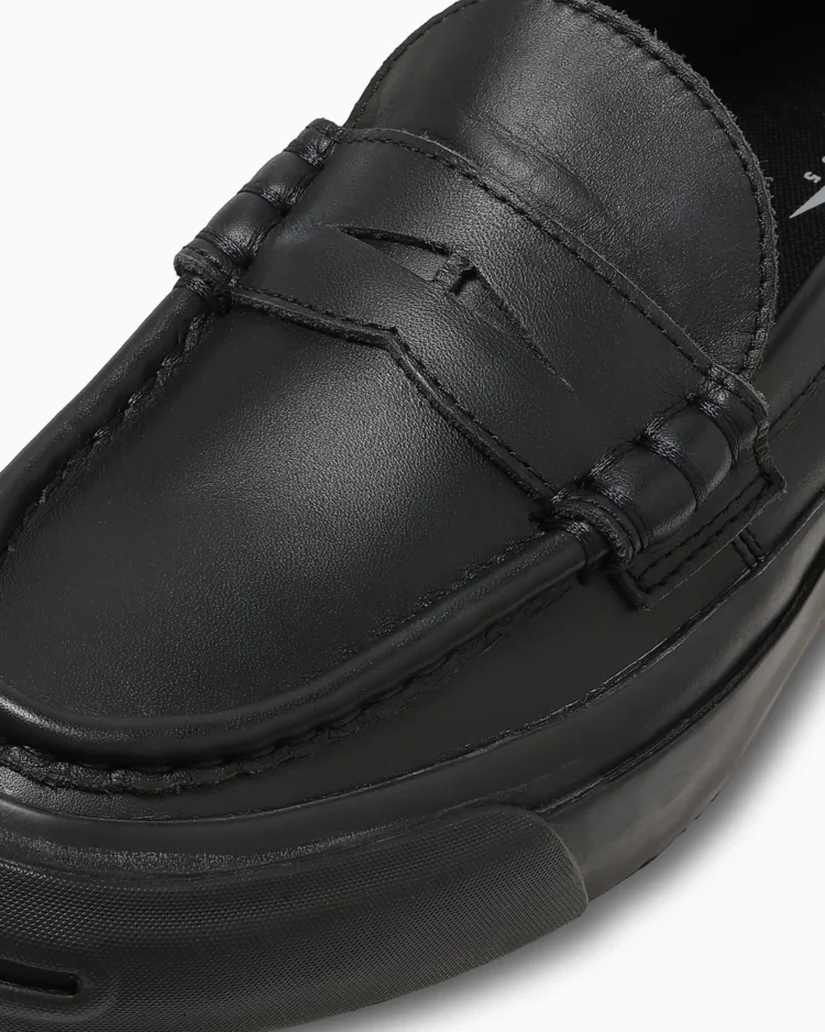 ローファーのデザインでありつつ、トウに「スマイル」、サドル部分に「ヒゲ」をあしらった、ジャックパーセルらしいアイコニックな一足。