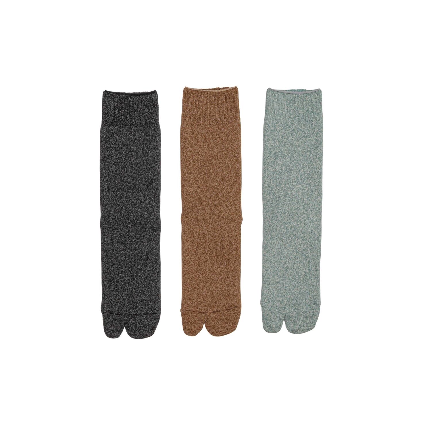 定番のGraphpaper TABI 3-Pack Socksに撚り杢のバリエーションが登場。シーズナルなスタイリングを楽しめる一足、。コットンをベースに高い吸汗性を発揮するドイツ生まれの特殊ファイバーをブレンドする事で弾力性のある風合いに仕上げている。裏側は心地良い全面パイル仕様、履き口には特殊な編機でつくられたシングルリブを採用。フィット感を残しつつも締め付けが少なく、薄く通気性にも優れた拘りの仕様。抗菌防臭加工が付与されており、いつまでも清潔に保つことが出来る。
