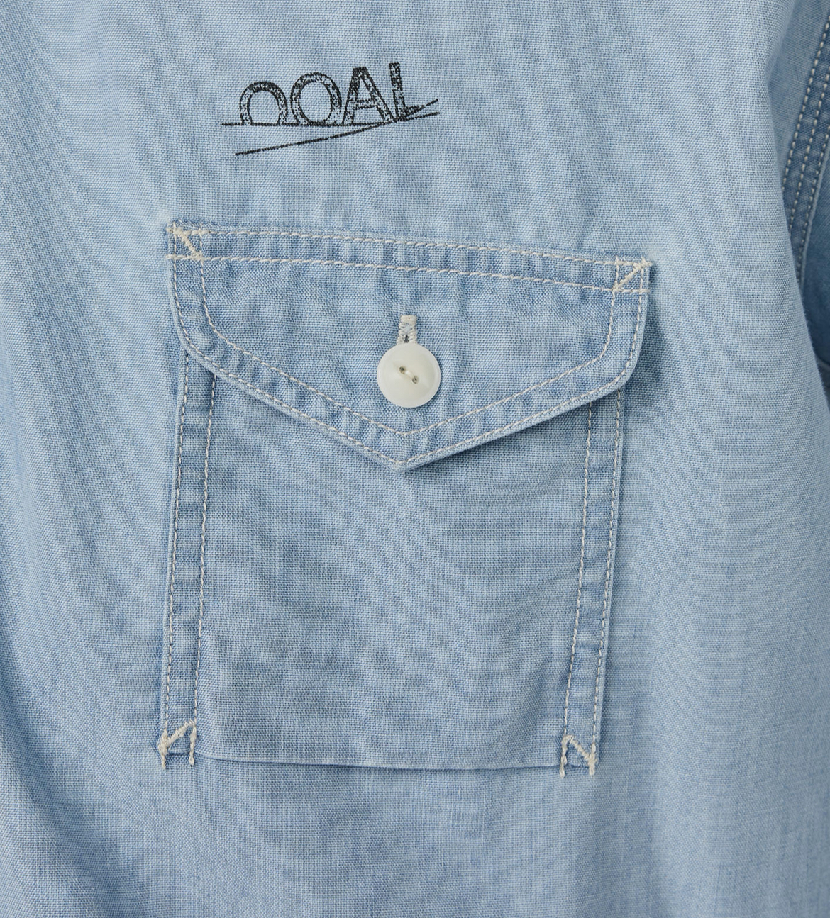 ・ポリエステルの外側をコットンで覆った2層構造のカバーリングコアヤーンをロープ染色し、シャンブレー素材を製作。