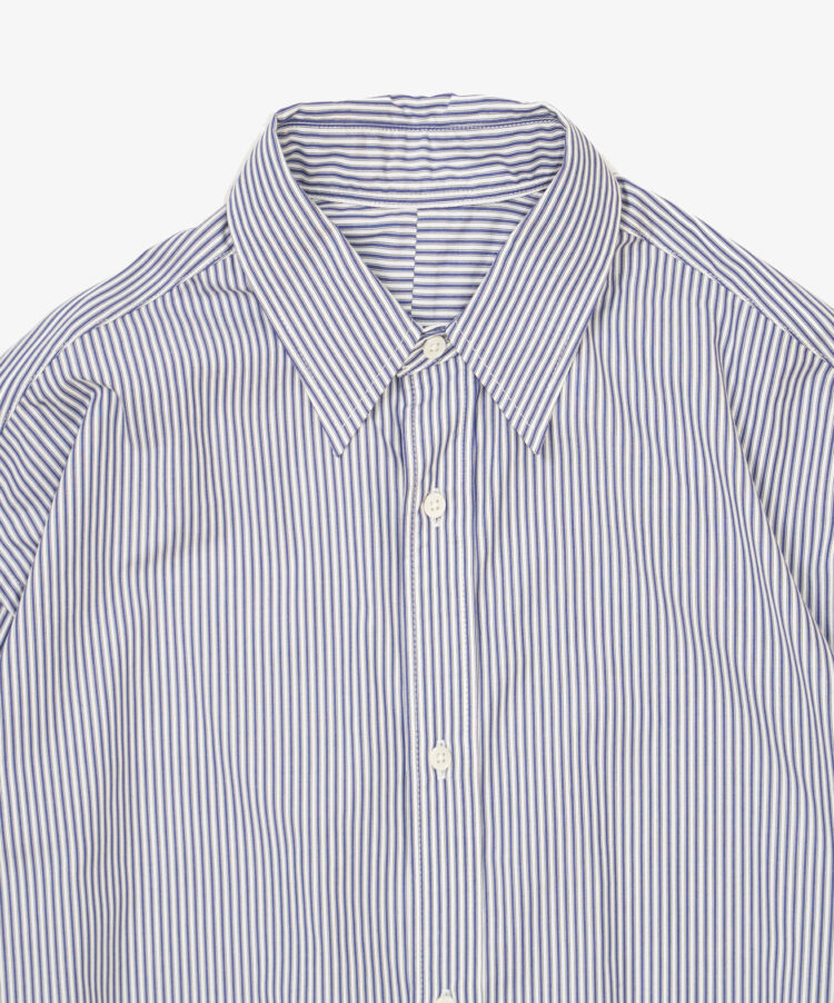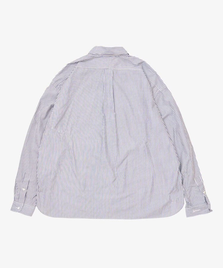 ワイドなシルエットをそのままにより定番らしい着丈感と裾の仕様に変更したシャツ。ハイカウントの上質なストライプ生地。よりエレガントに トロピカルウールのセットアップとの相性は抜群です。 こちらもシーズンレスでオールシーズン着ていただける生地です。