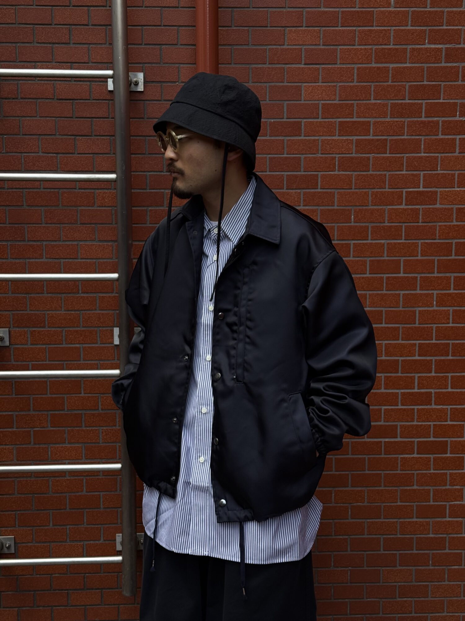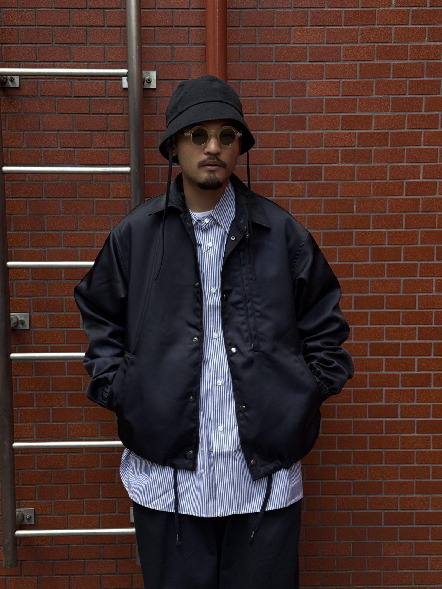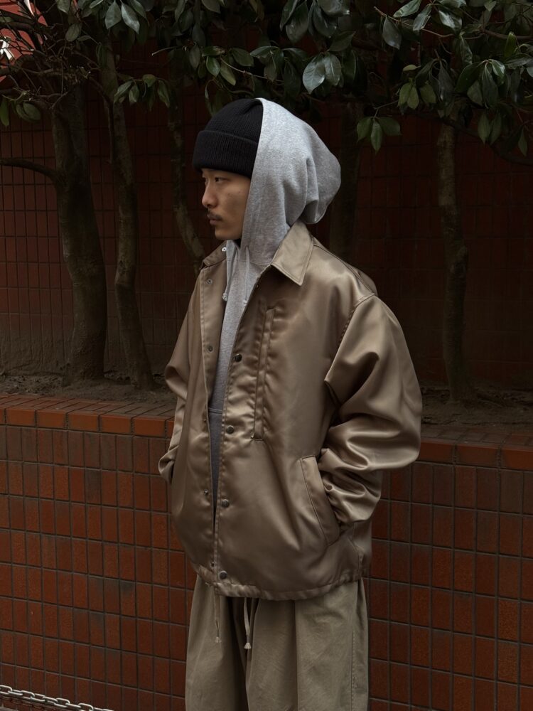 ナイロン100%のツイル素材を使⽤したコーチジャケット。丈夫でしなやかな素材感と、洗練されたシンプルなデザインが魅⼒です。襟にはチンストを備え、左胸には⼤きなファスナーポケットを配置。実⽤性とアクセントを兼ね備えています。中⾁で耐久性に優れ、快適な着⼼地を実現。カジュアルからスポーティーまで幅広いスタイルに対