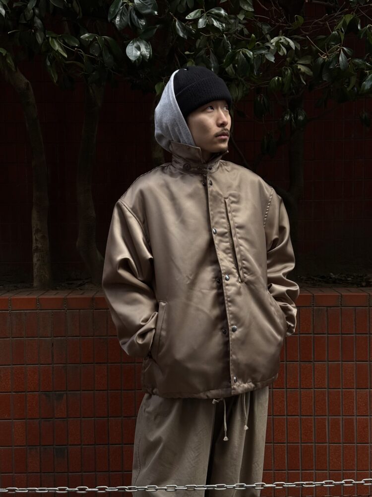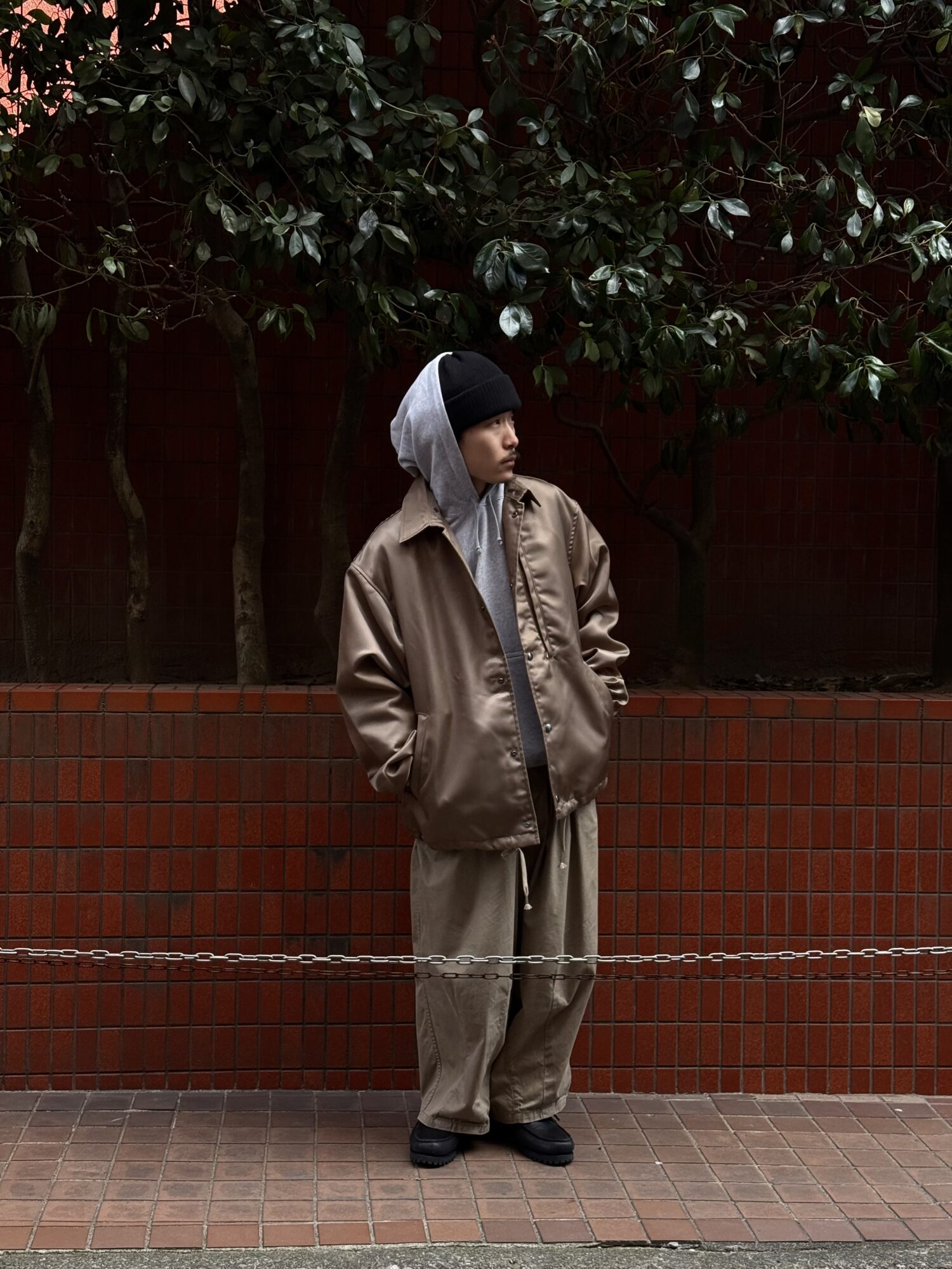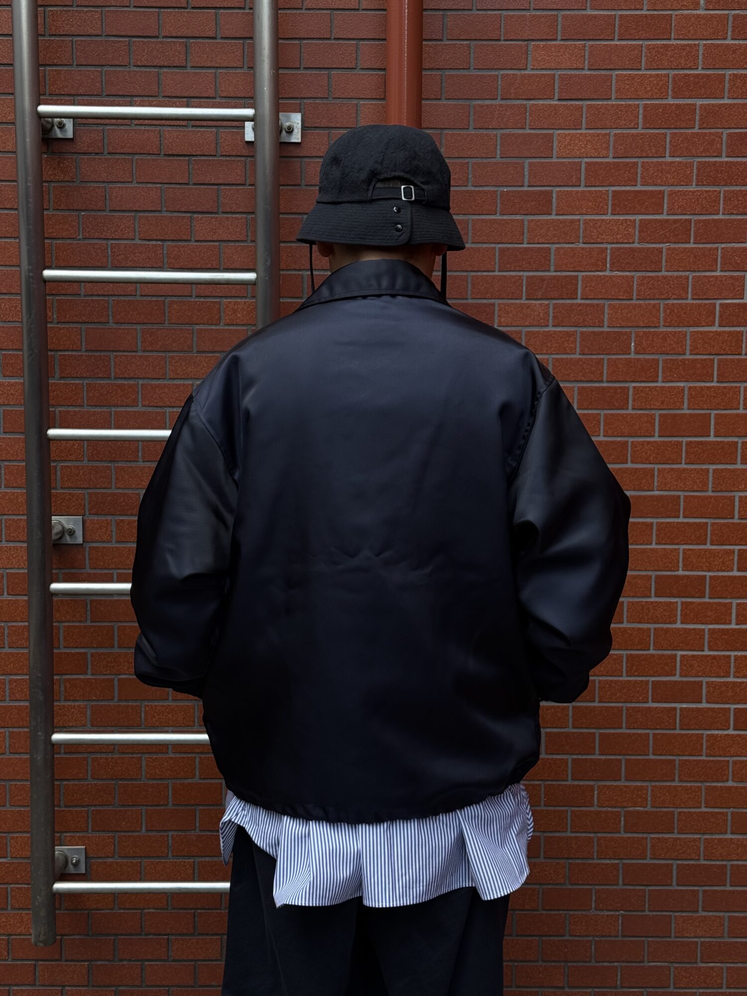 ナイロン100%のツイル素材を使⽤したコーチジャケット。丈夫でしなやかな素材感と、洗練されたシンプルなデザインが魅⼒です。襟にはチンストを備え、左胸には⼤きなファスナーポケットを配置。実⽤性とアクセントを兼ね備えています。中⾁で耐久性に優れ、快適な着⼼地を実現。カジュアルからスポーティーまで幅広いスタイルに対