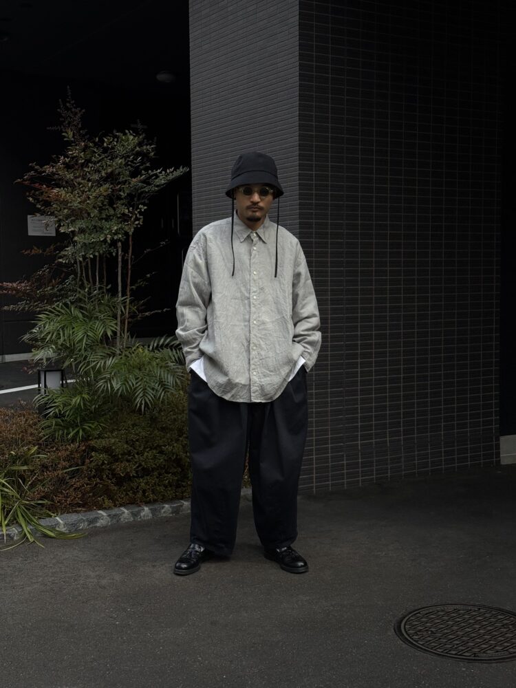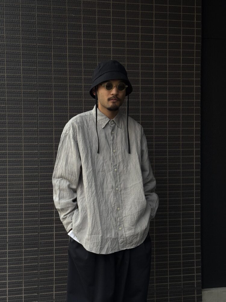 ラミー100%(苧⿇)を 使⽤したロングスリーブシャツ。⻑く太い繊維が⽣み出すシャリ感とハリ、シルクのような光沢が洗練された印象を演出します。吸湿性‧通気性‧速乾性に優れ、涼やかな着⼼地を実現。シンプルながらもエレガントなデザインで、どんなスタイルにも⾃然に溶け込む⼀着です