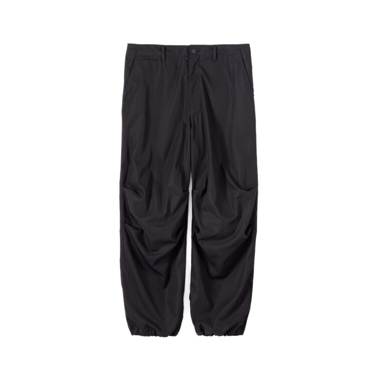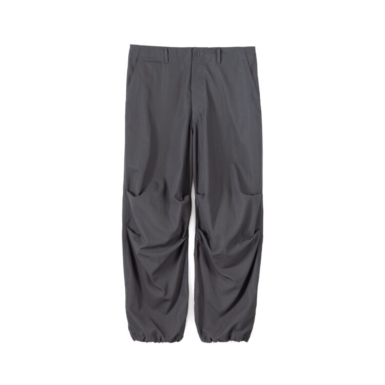 繊細な素材に相反する武骨なディテールが魅力のミリタリーパンツ。コットンの強撚糸をガス焼きして、毛羽立ちを押さえ合繊のようなクリアな質感を表現した高密度ギャバジンは、まるで梳毛のような品のある光沢とシャリ味のあるタッチと、シワになりにくい反撥感のある風合いが特徴の素材です。