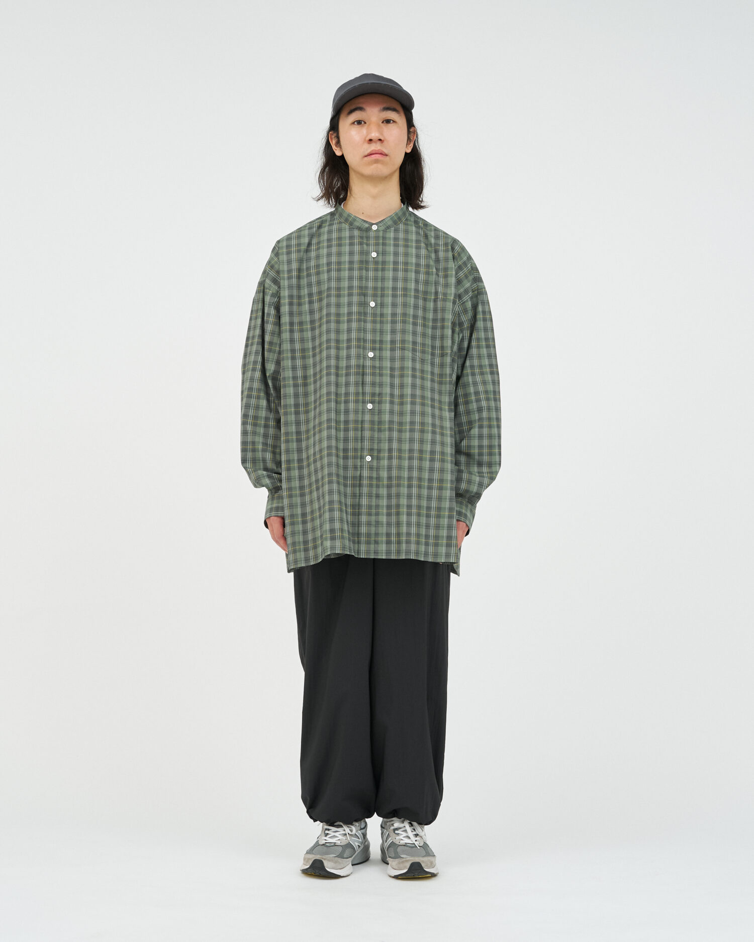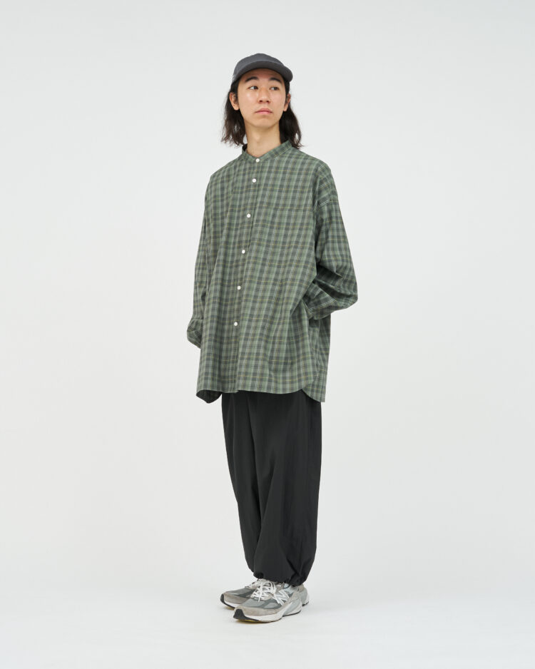 ドロップショルダーのゆったりとしたシルエットが魅力のバンドカラーシャツ。特殊な断面構造を持つポリエステル糸によって織り上げることで、ドライな肌触りと優れた速乾性を実現しながらも、コットンのような自然な風合いを表現。ビビッドなラインを効かせたオリジナルマドラスチェック柄は、クラシックでありながらも都会的な印象に。毎日着たくなる快適な着用感を提供する一着。