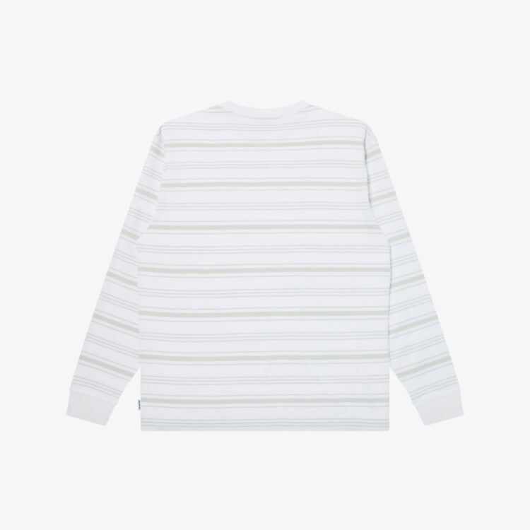 ストライプ柄をを先染めで表現したL/Sシャツ。 胸元にはロゴの刺繍。