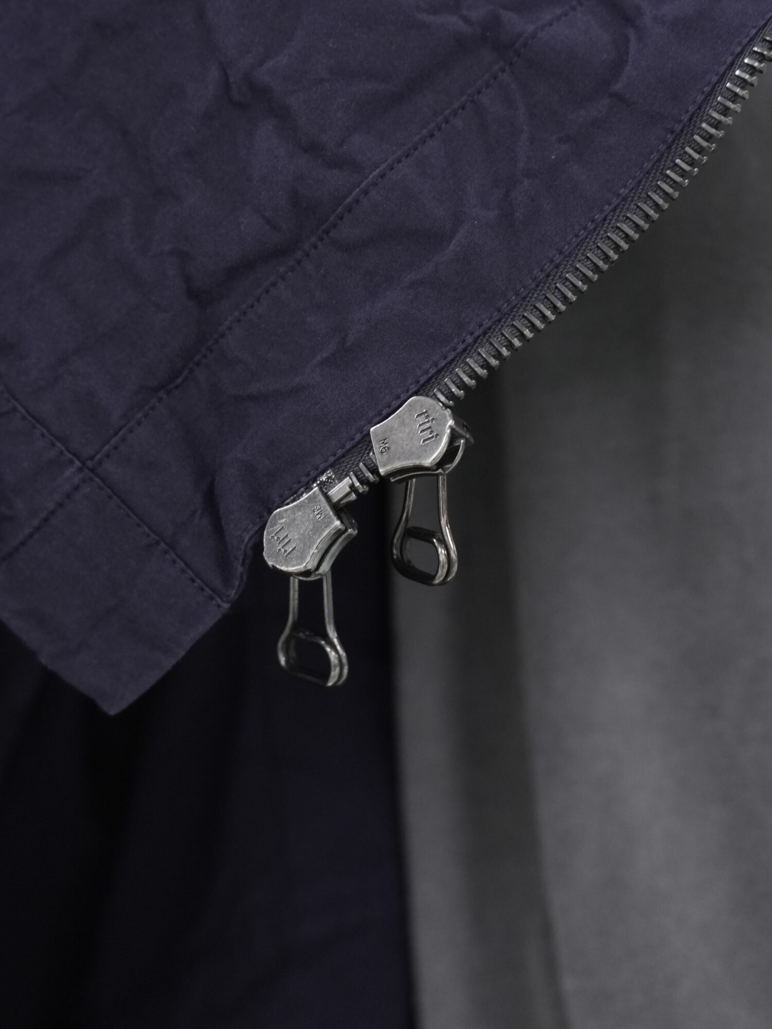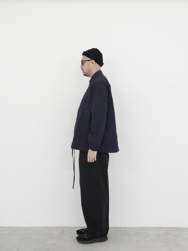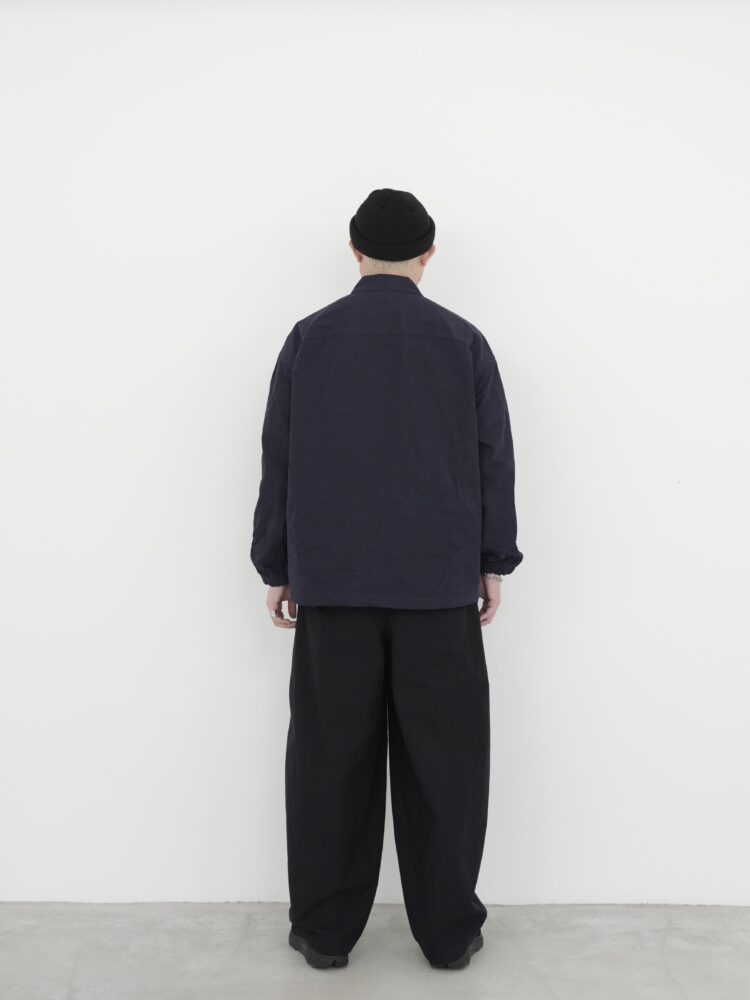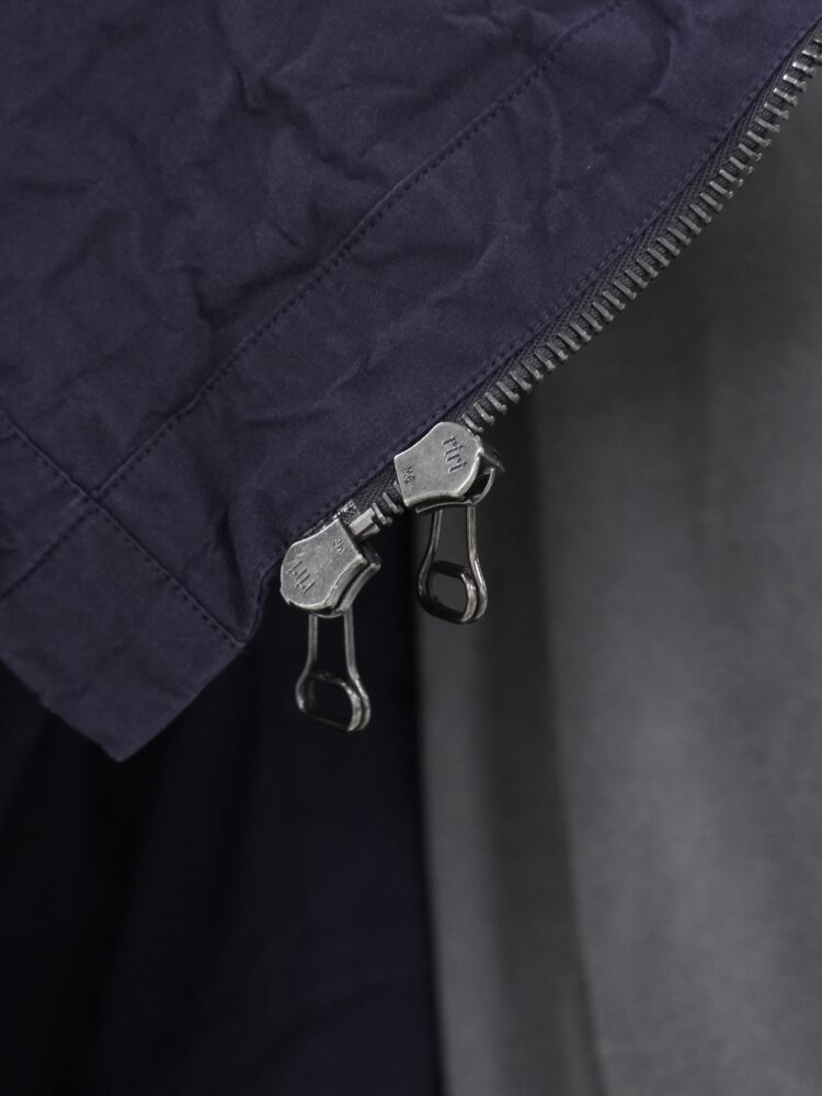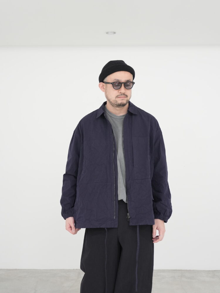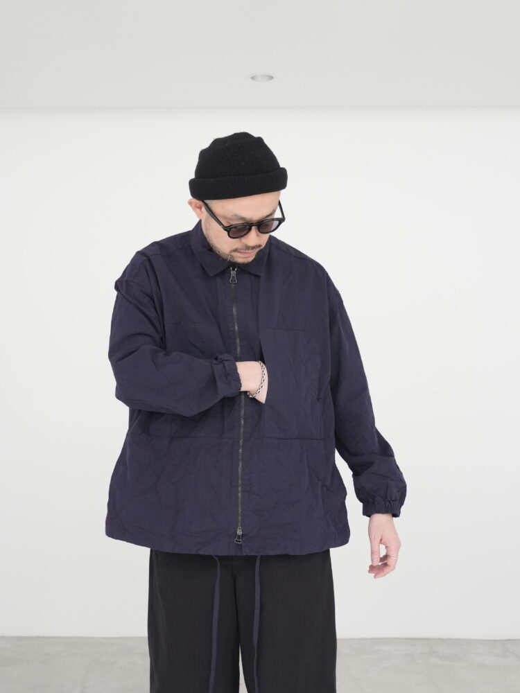 スプレッドカラーに加え、着用の自由度を高める実用的な2ウェイジップを採用。胸にはパッチポケットがあり、控えめな外縫いで位置を示す内ポケットも備えています。