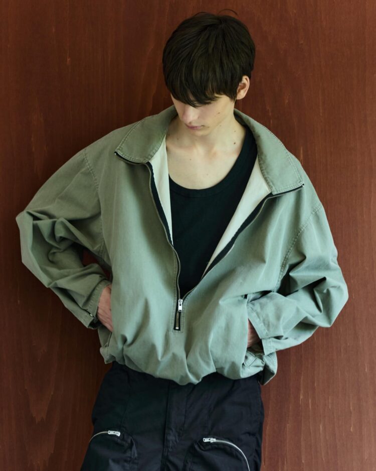 ハーフジップよりもさらに深いプルオーバーで、両サイドの裾にドローコードがついていますので着方が調整できます。