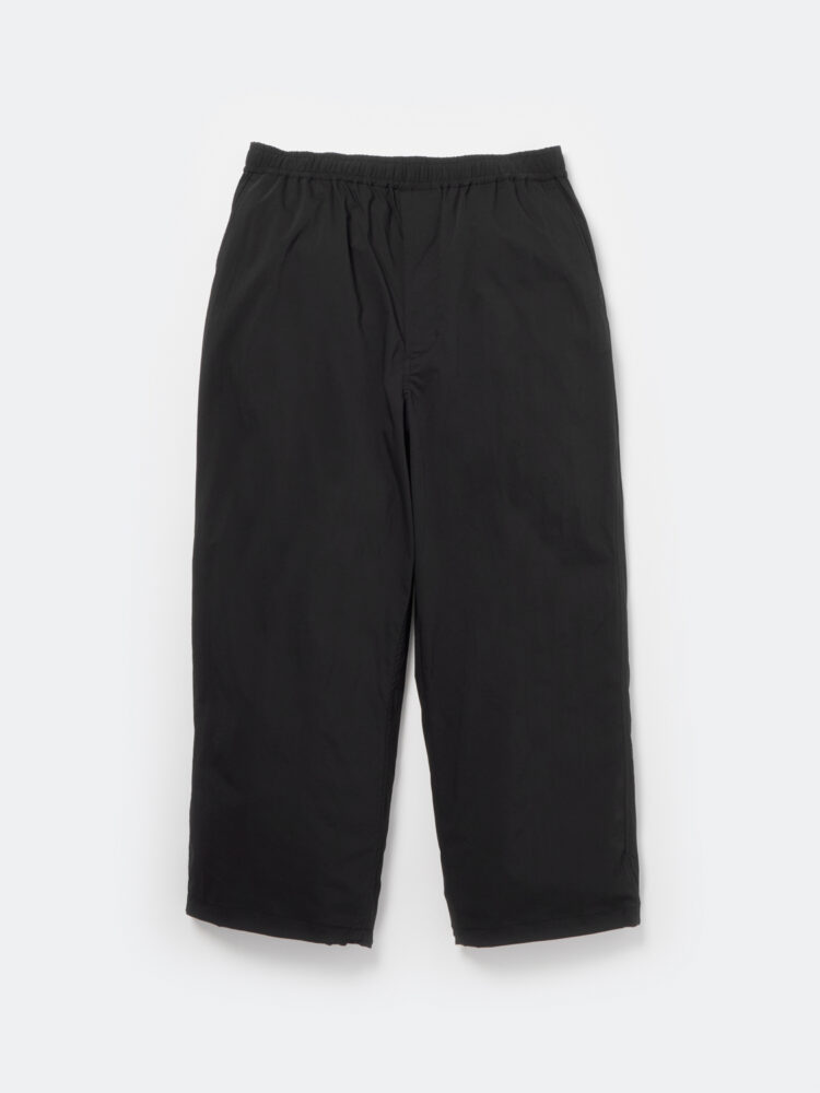 ベーシックなプレーンフロント型トラウザーズをスポーティーに仕上げた。チノパン、ウールトラウザーズのようにアメリカントラディショナルスタイルの定番であるプレーンフロントトラウザーズをアップデート。パンツの基本のアイテムを現代解釈で作成。素材の特徴に加え、ウエスト、裾にドローコードを配し動きやすい仕様。