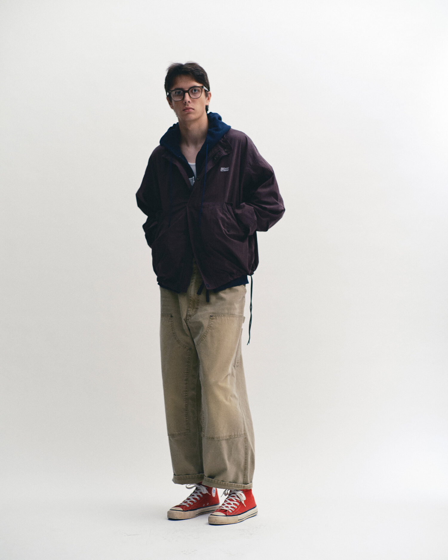 古くから様々なブランドでサンプリングされてきたミリタリーコートの名作をショートタイプのジャケットにしました。コットンナイロンの生地を巻き縫いしてミリタリーの雰囲気をビシビシと感じられるジャケットを作り、製品洗い加工を入れてパッカリングやアタリ感もあるものに仕上げました。また裾はドローコードで絞ってシルエットを変えることができます。左胸にはSEDANのロゴ刺繍入り。