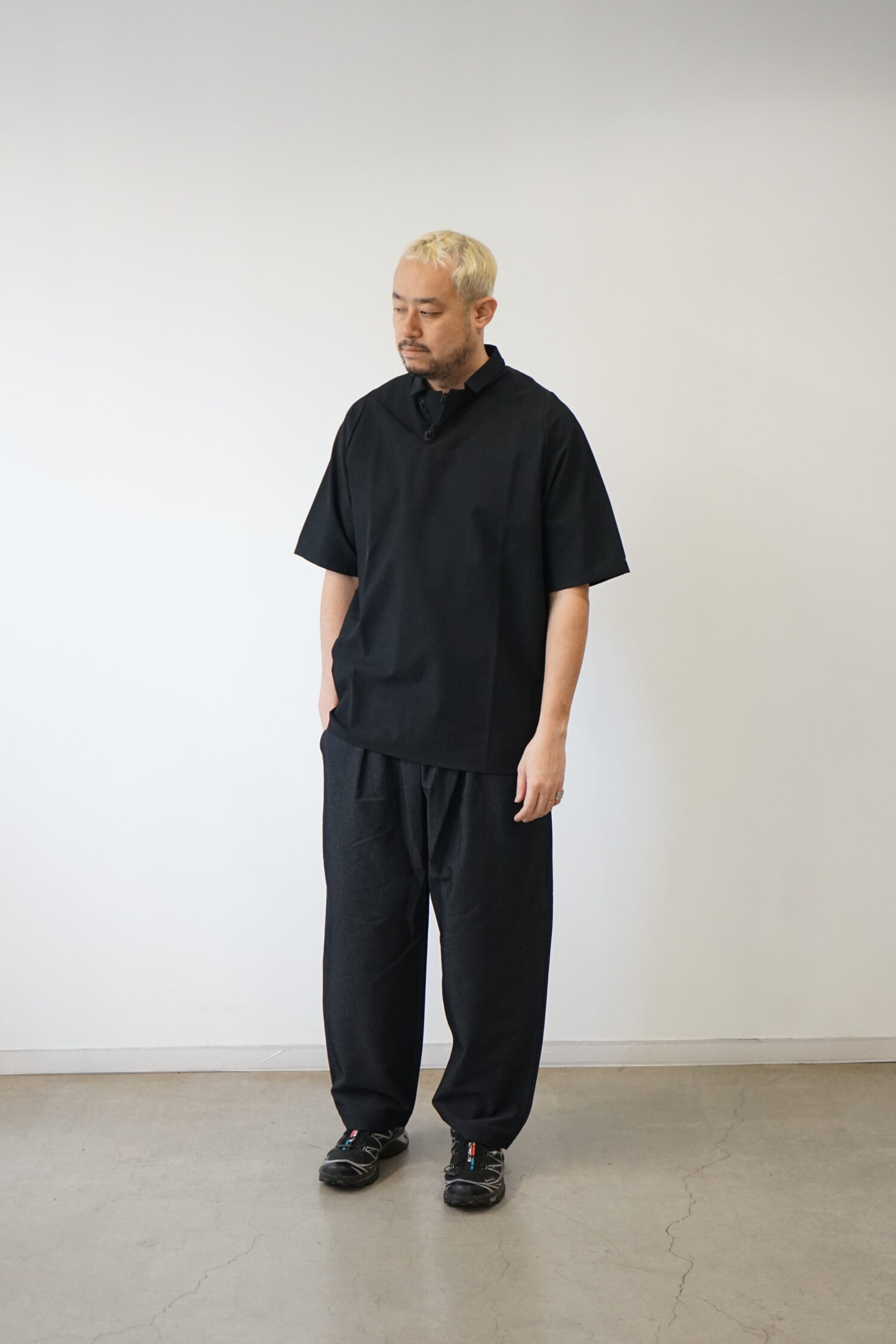 旅行者のために開発されたWallet Pantsは貴重品のセキュリティーにフォーカスしたシリーズ。また、長時間のフライトをより快適にするためのパターンワークが施されています。シャドーと名付けられたGHOST CODEのために開発された特殊なカラーはドレスコードを研究するTEATORAが導き出した黄金比。影を実体化したかのような色彩は品格の中に静けさを内包し、着用者の印象を品よく匿名化します。また、このGHOST CODE専用テキスタイルはクラシカルな佇まいからは想像できない、TEATORA史上最もダイナミックな可動域。人体の動きを一切拘束しないこのシリーズはその大胆な伸縮性と、強靭なキックバックによりあなたに快適な可動域を与えてくれます。