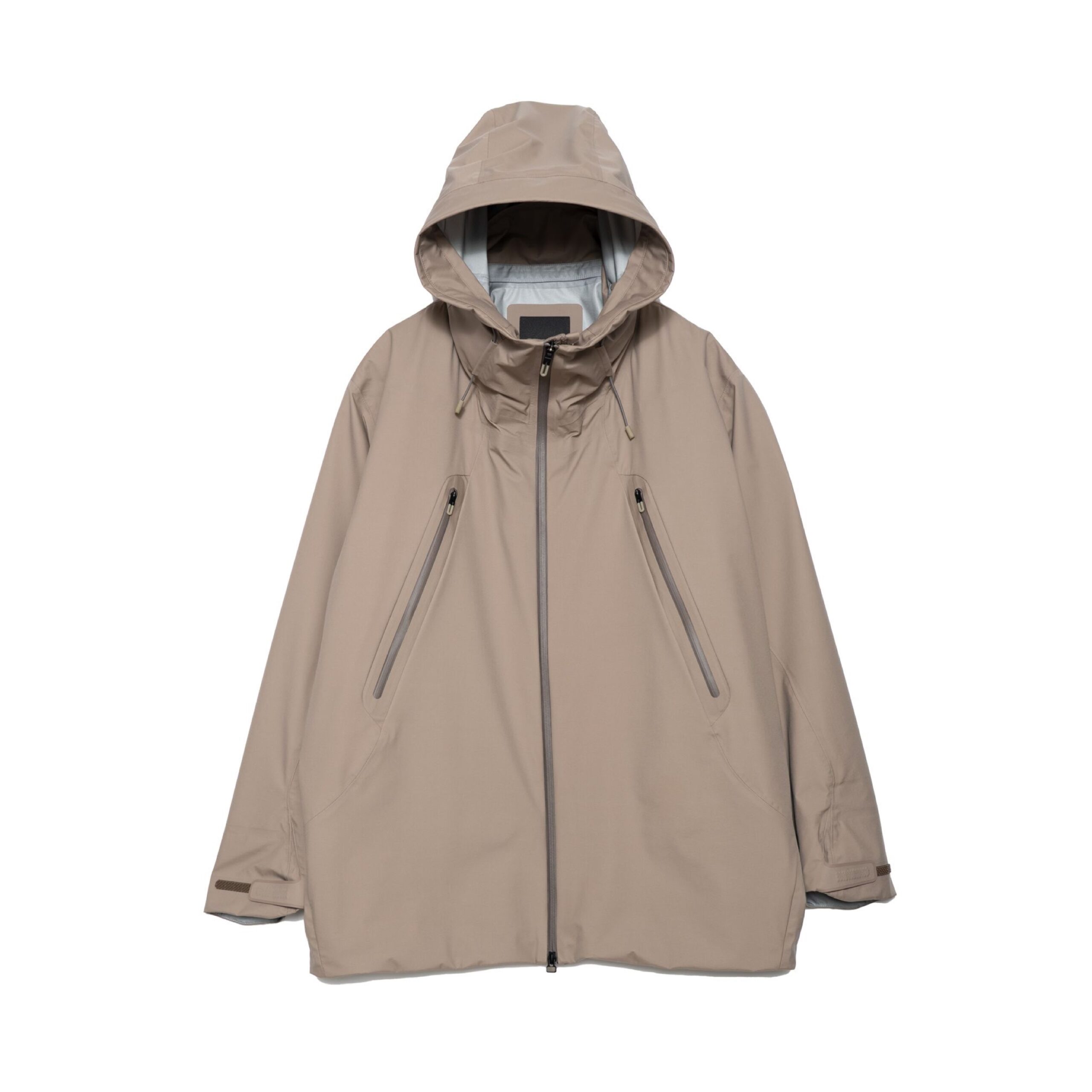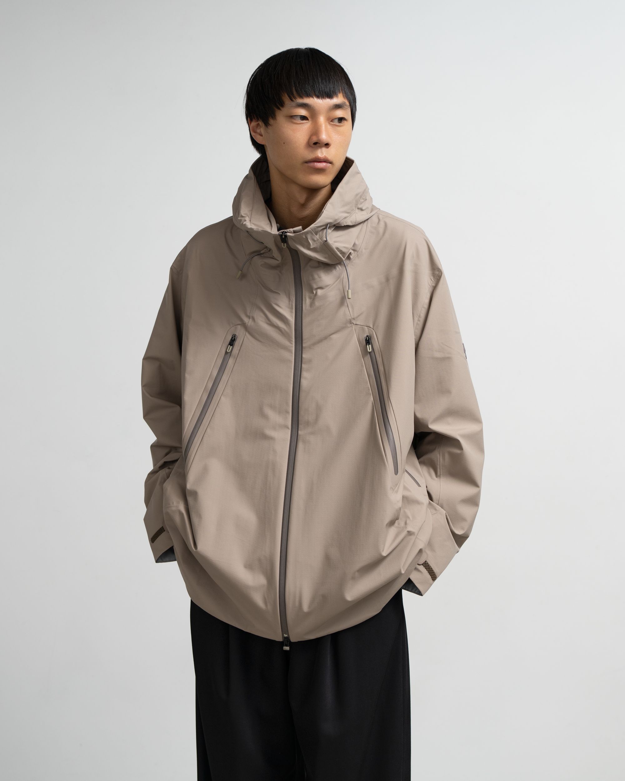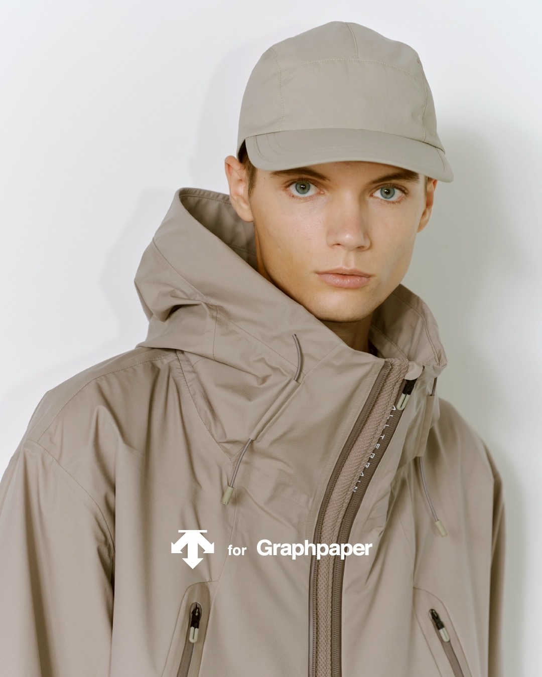 「Form follows function」(すべてに理由があり、機能性を伴ったデザインである)をコンセプトのもと、年齢・シーン・流行に左右されない”真のモノづくり”を追求するハイスペックテックウェア"DESCENTE ALLTERRAIN(デサント オルテライン)”とのコラボレーションが、10月11日(土)より発売開始いたします。*(WEB STOREは翌日10月12日(日) 12時発売開始)。前回同様コラボレーションのベースとなるのはDESCENTE ALLTERRAIN定番のハードシェルジャケット"CREAS(クレアス)"。CREASの持つ高性能なディテールやスペックはそのままに、Graphpaperのフィルターを通すことで大胆なサイズバランスへと再構築。ハードシェルらしいハリのある緊張感漂うファブリックに、余白が生みだすリラックスした表情を兼ね備えることで、タウンユースにも映える特別な一着に仕上げました。今シーズンは定番のブラックに、柔らかな表情を纏った25AWコレクションカラーであるグレー味を帯びた”BEIGE”を加え2色でリリース。素材には、高レベルの耐水性・透湿性・低結露性を実現する防水透湿素材「Dermizax」を採用。優れたストレッチ性・伸縮性を兼ね備え、あらゆる環境にも適応できる快適な着用感を実現。フロントジップにはDESCENTE ALLTERRAINを象徴する、デュアルベンチレーションシステムを搭載。