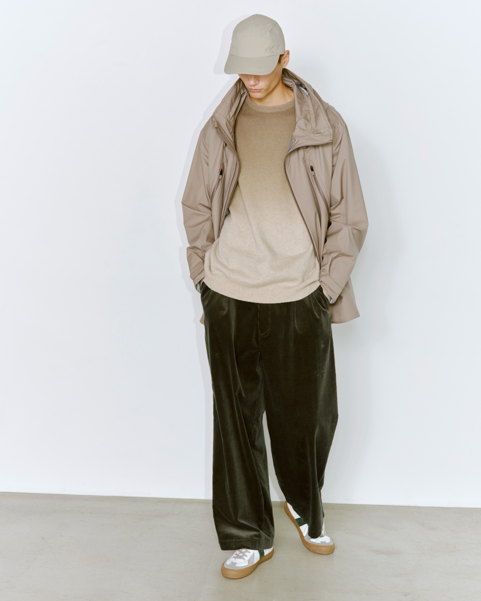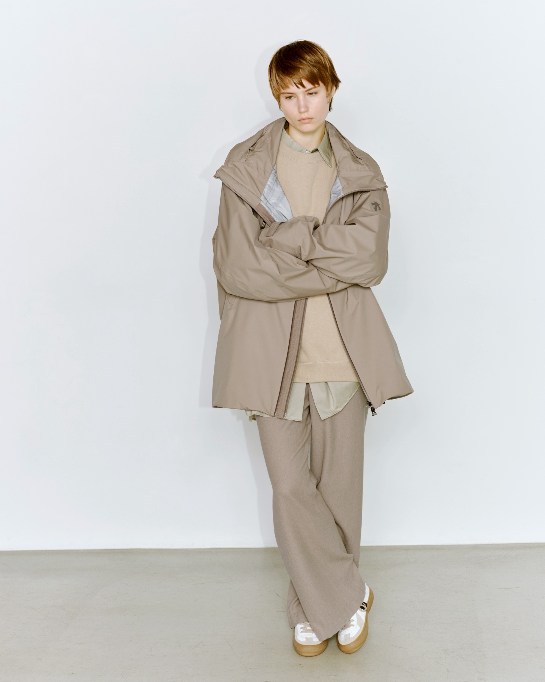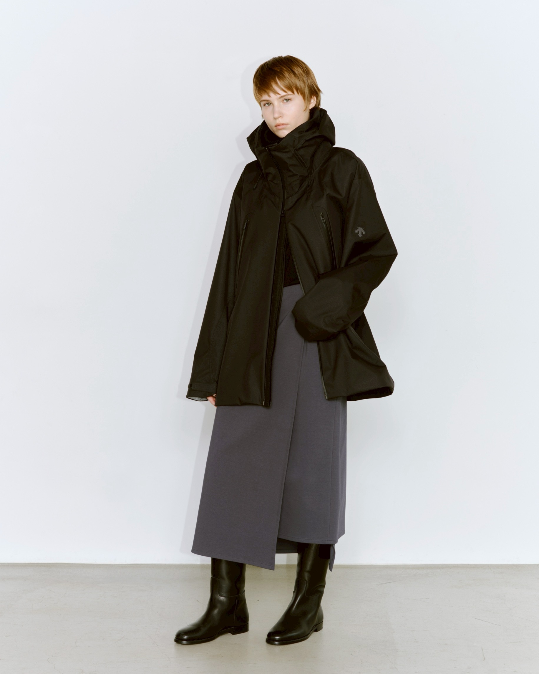 「Form follows function」(すべてに理由があり、機能性を伴ったデザインである)をコンセプトのもと、年齢・シーン・流行に左右されない”真のモノづくり”を追求するハイスペックテックウェア"DESCENTE ALLTERRAIN(デサント オルテライン)”とのコラボレーションが、10月11日(土)より発売開始いたします。*(WEB STOREは翌日10月12日(日) 12時発売開始)。前回同様コラボレーションのベースとなるのはDESCENTE ALLTERRAIN定番のハードシェルジャケット"CREAS(クレアス)"。CREASの持つ高性能なディテールやスペックはそのままに、Graphpaperのフィルターを通すことで大胆なサイズバランスへと再構築。ハードシェルらしいハリのある緊張感漂うファブリックに、余白が生みだすリラックスした表情を兼ね備えることで、タウンユースにも映える特別な一着に仕上げました。今シーズンは定番のブラックに、柔らかな表情を纏った25AWコレクションカラーであるグレー味を帯びた”BEIGE”を加え2色でリリース。素材には、高レベルの耐水性・透湿性・低結露性を実現する防水透湿素材「Dermizax」を採用。優れたストレッチ性・伸縮性を兼ね備え、あらゆる環境にも適応できる快適な着用感を実現。フロントジップにはDESCENTE ALLTERRAINを象徴する、デュアルベンチレーションシステムを搭載。
