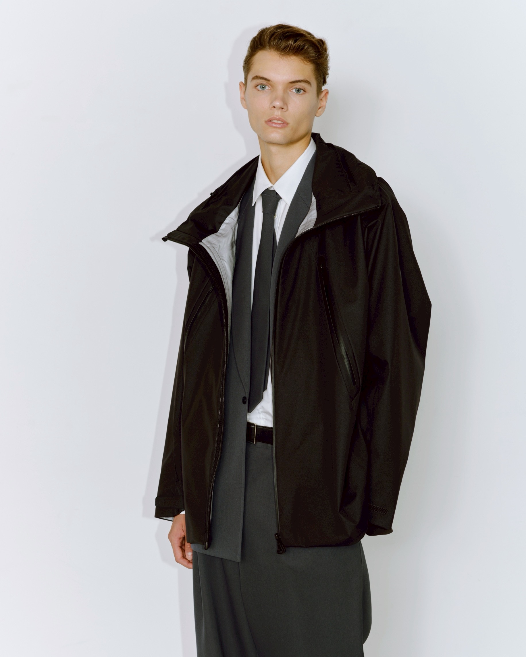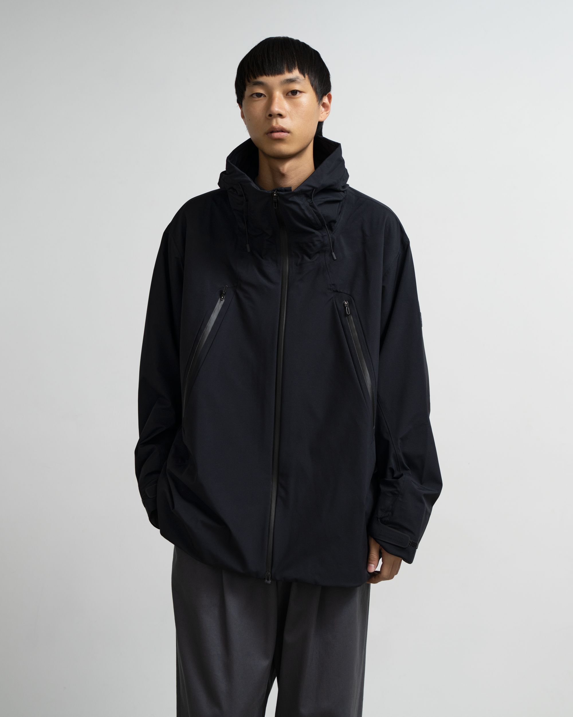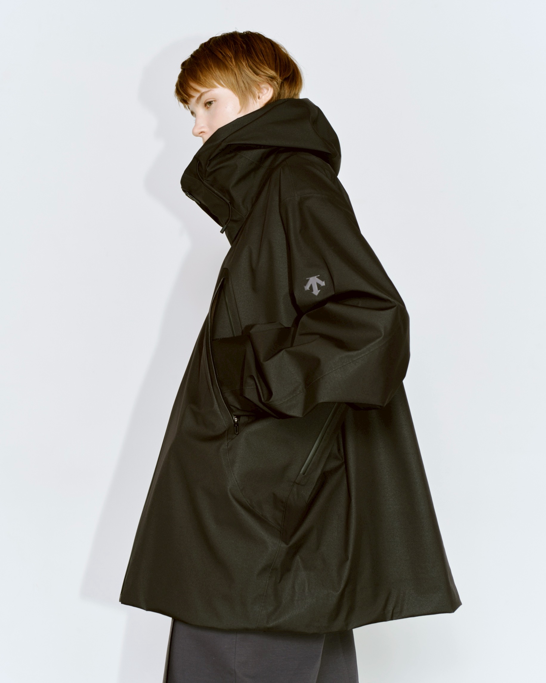 2列のジップ間にメッシュ素材を配すことで、外気を取り込み内側にこもった熱や湿気の排出を可能にするだけでなく、脇周りに走るベンチレーションがその効果を更に加速させます。天候やスタイリングに応じ簡単にフードを開閉できるだけでなく雨水の滞留をも防ぐパラフードシステムや、優れたホールド力とディテールの美しさが目を引く袖口のブロックフィットアジャスター、迅速かつ簡易にフィット感のコントロールを可能とする裾部のCohaesiveコードロックシステムなど、世界のトップアスリートとの共同開発を通じて培ったノウハウを搭載。様々なシーンや環境下に捉われない優れた機能性と、都会に溶け込むモダンなムードを併せ持った特別なプロダクト。