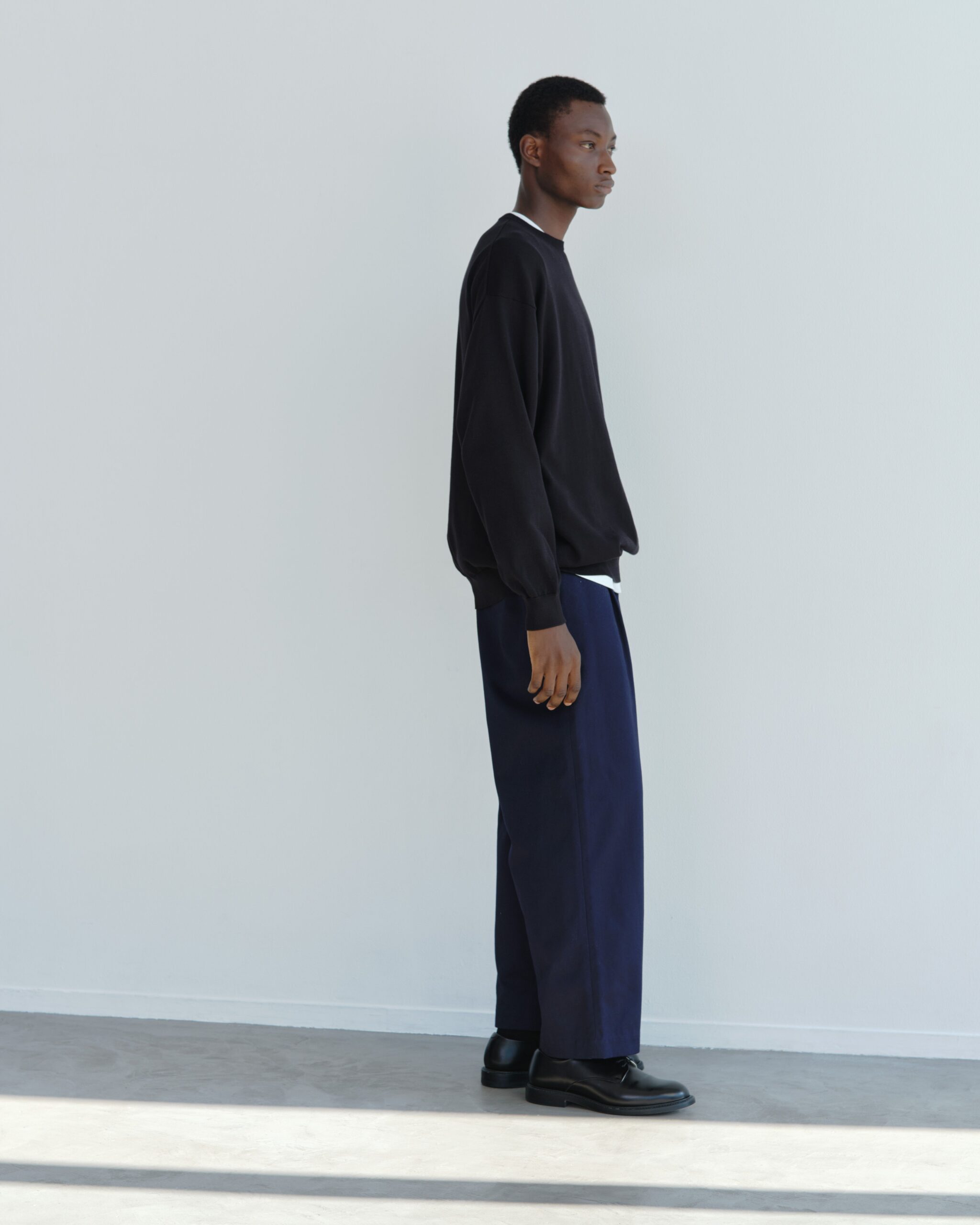 「定番として長く履き続けられる革靴」をコンセプトに企画された本作は、一見すると極めてベーシックな佇まいでありながら、〈Graphpaper〉らしいバランス感覚と、〈foot the coacher〉が持つ高度な技術が詰まっています。アッパーには、原皮の選定から行ったオリジナルレザーを採用。天然のテクスチャーを活かすことで生まれる均等なシボ感や履きジワの出方、ライニングのトーンに至るまで細やかに設計されています。ソールはレザーソールをベースに、ヒール部分のみにダイナイトソールを配した仕様。革靴らしい歩行感を保ちながら、耐久性と実用性を兼ね備え、日常的な着用を前提としたバランスに整えました。カジュアルからドレスまで幅広いスタイリングに馴染む〈Graphpaper〉の新たな定番となるレザーシューズが完成しました。