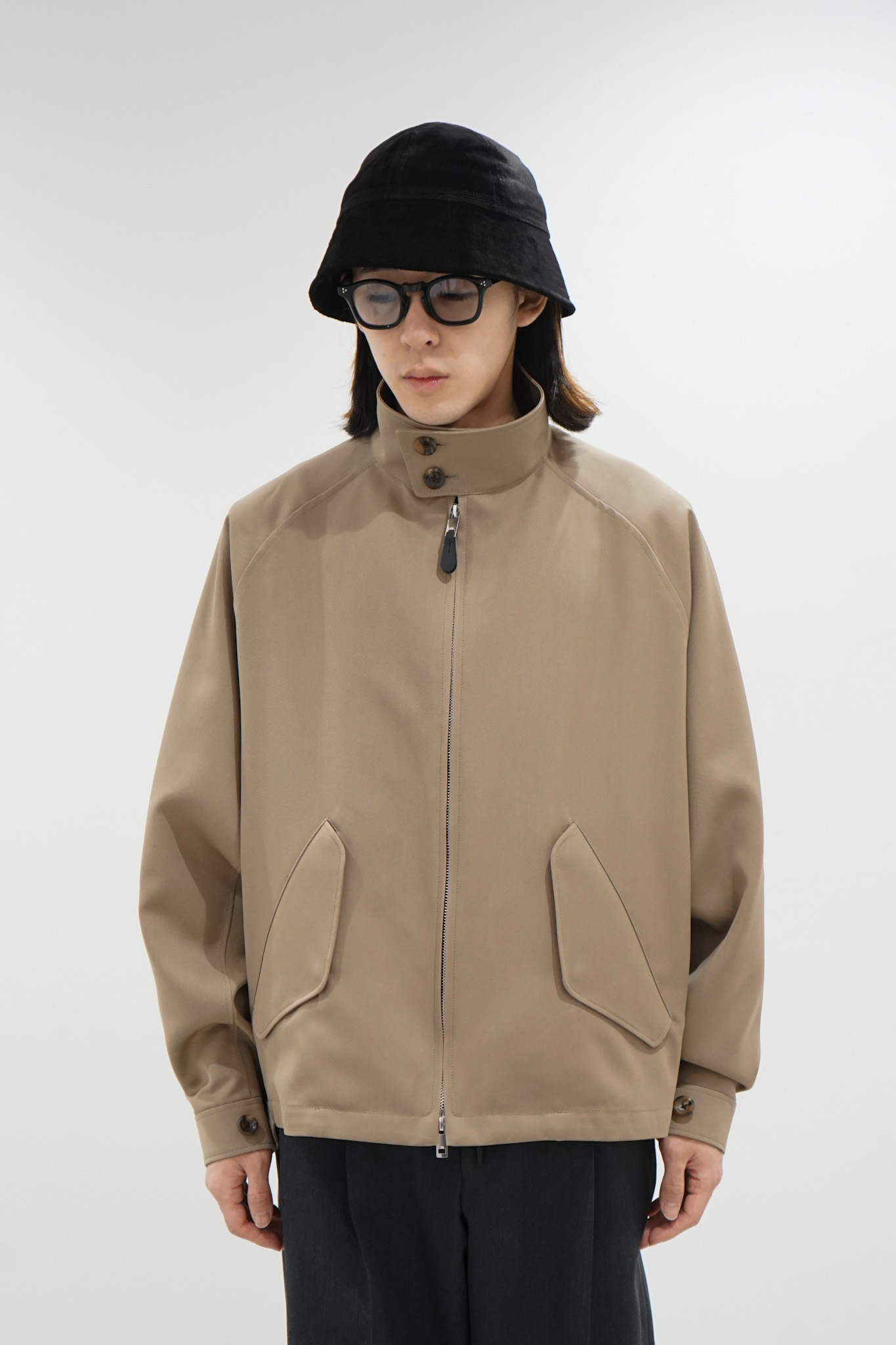 ウール素材を使用したハリントンジャケット。カジュアルな印象を持つハリントンのディティールを、ギャバジン特有の光沢感と滑らかな質感を合わせることで、トラディショナルとは一線を画したデザインへと昇華しております。